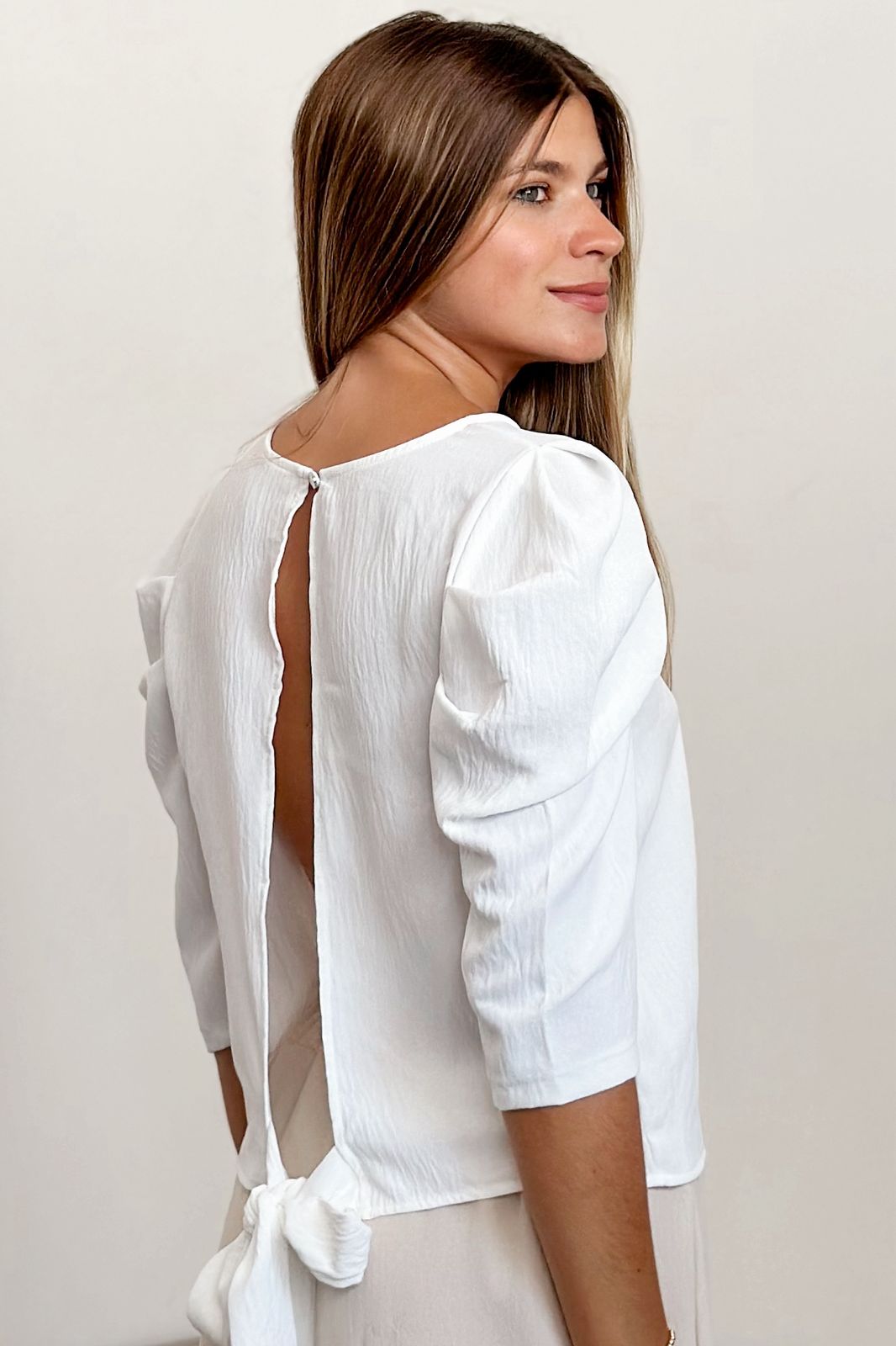 #Blusa #manga 3/4 #crep lino # manga princesa #espalda partida #con lazo para atar #TALLE UNICO