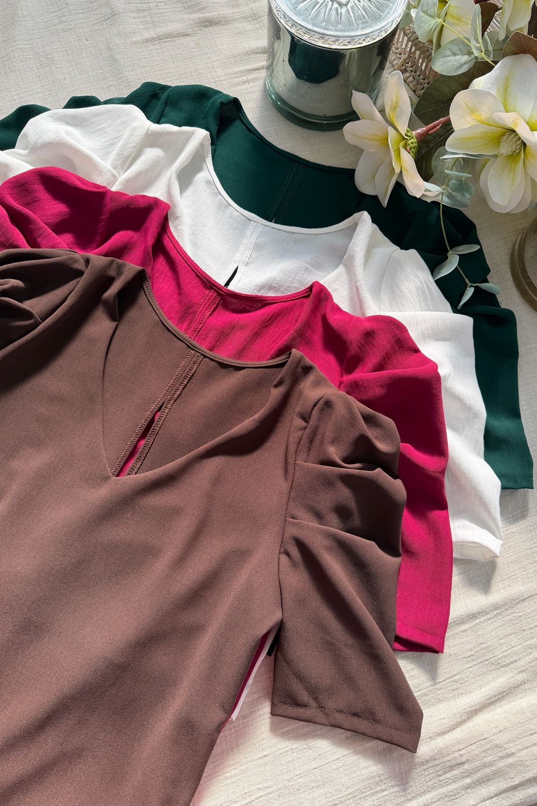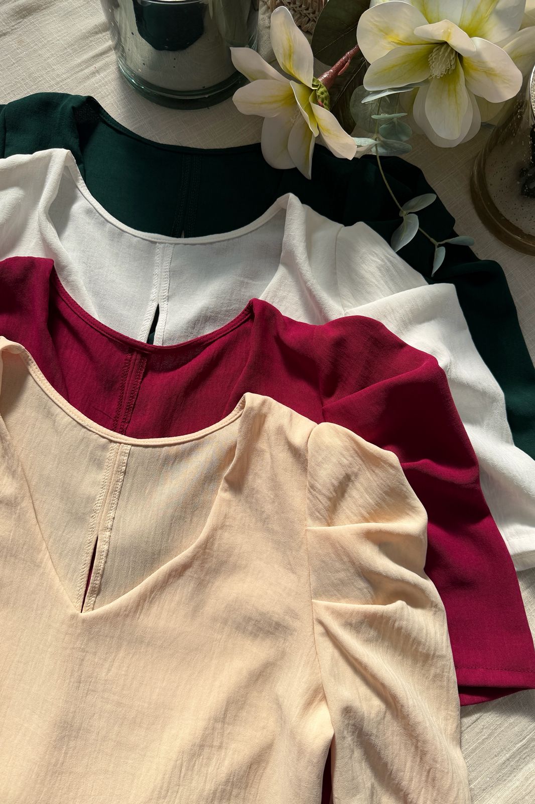 #Blusa #simil lino #manguita globo # manguita en encaje al tono #TALLE UNICO