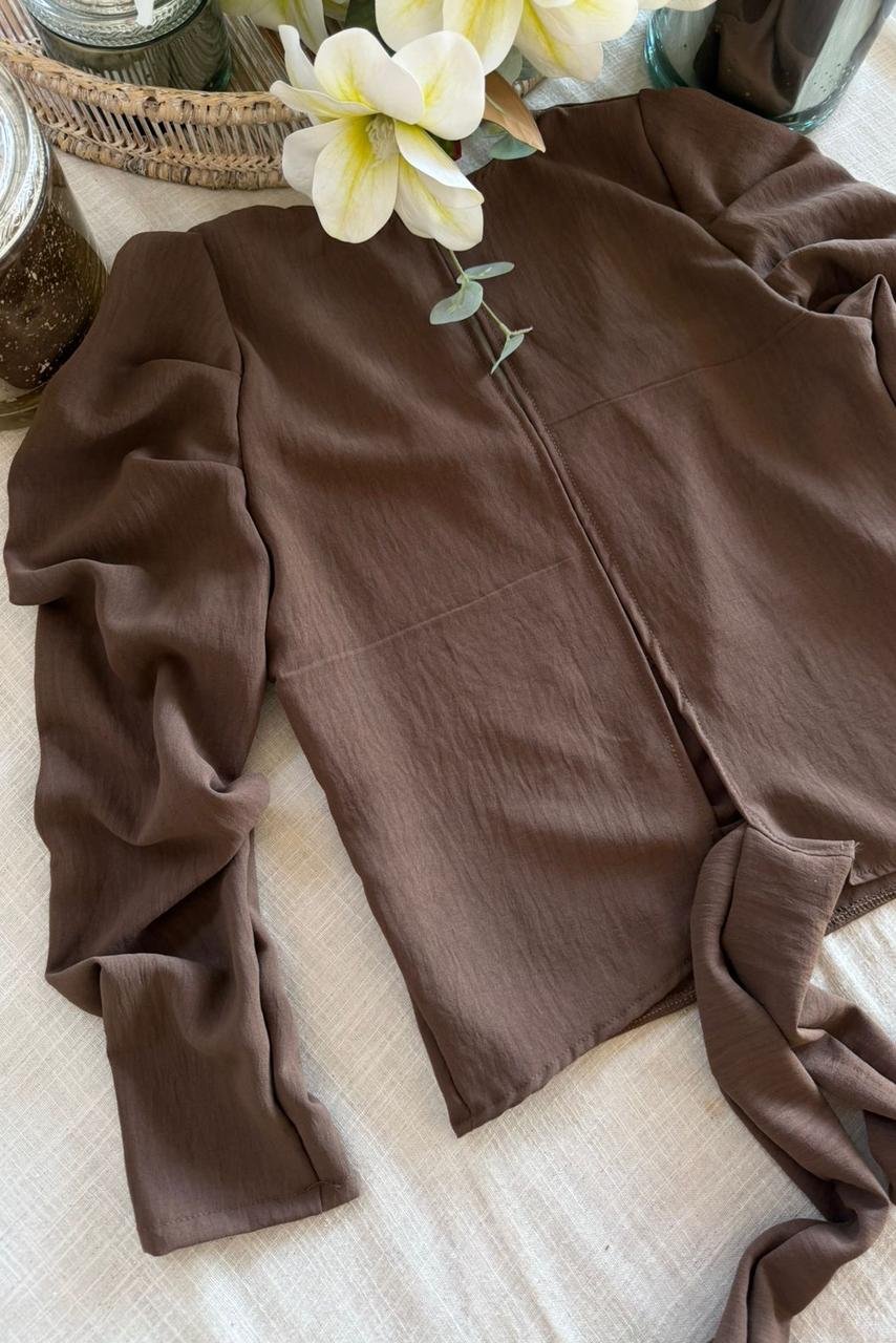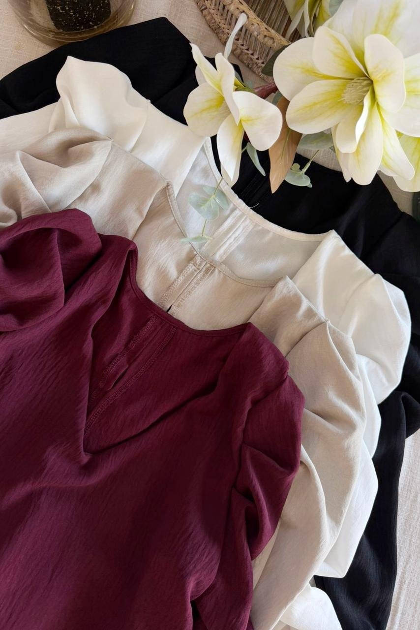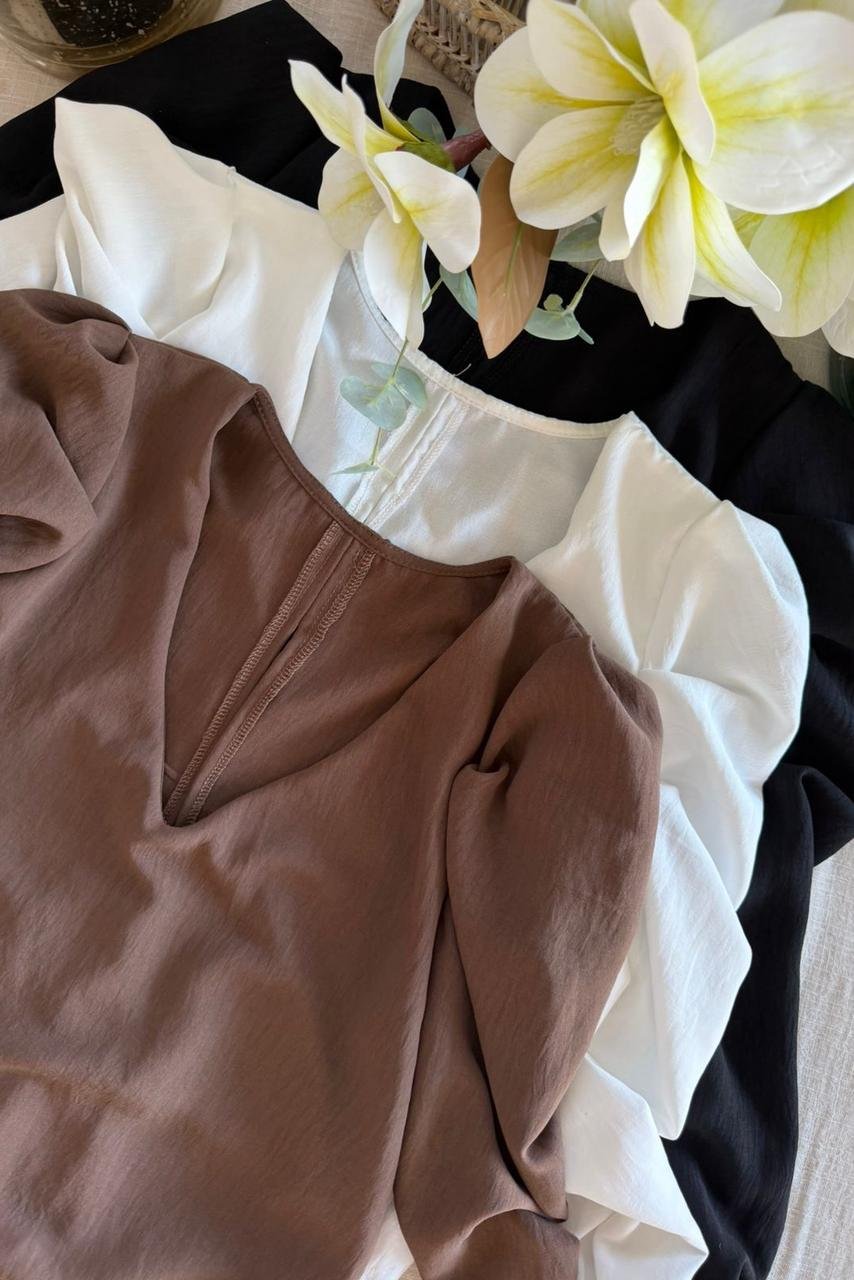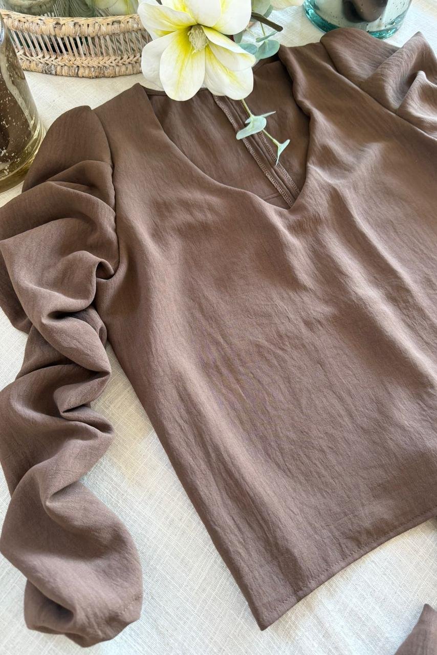 #Blusa #crep lino #manga 3/4 #manga globo #escote V delantero y espalda #tiras para atar #TALLE UNICO