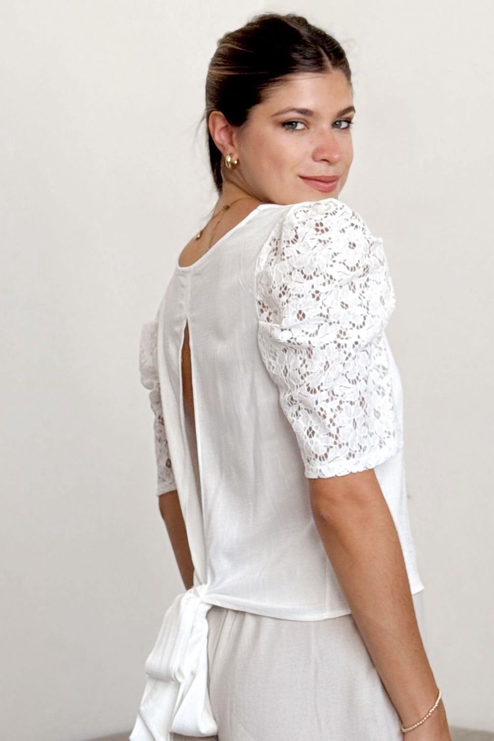 #Blusa #manga princesa #cuello redondo #manga encaje #crep lino #espalda partida #lazo para atar #TALLE UNICO