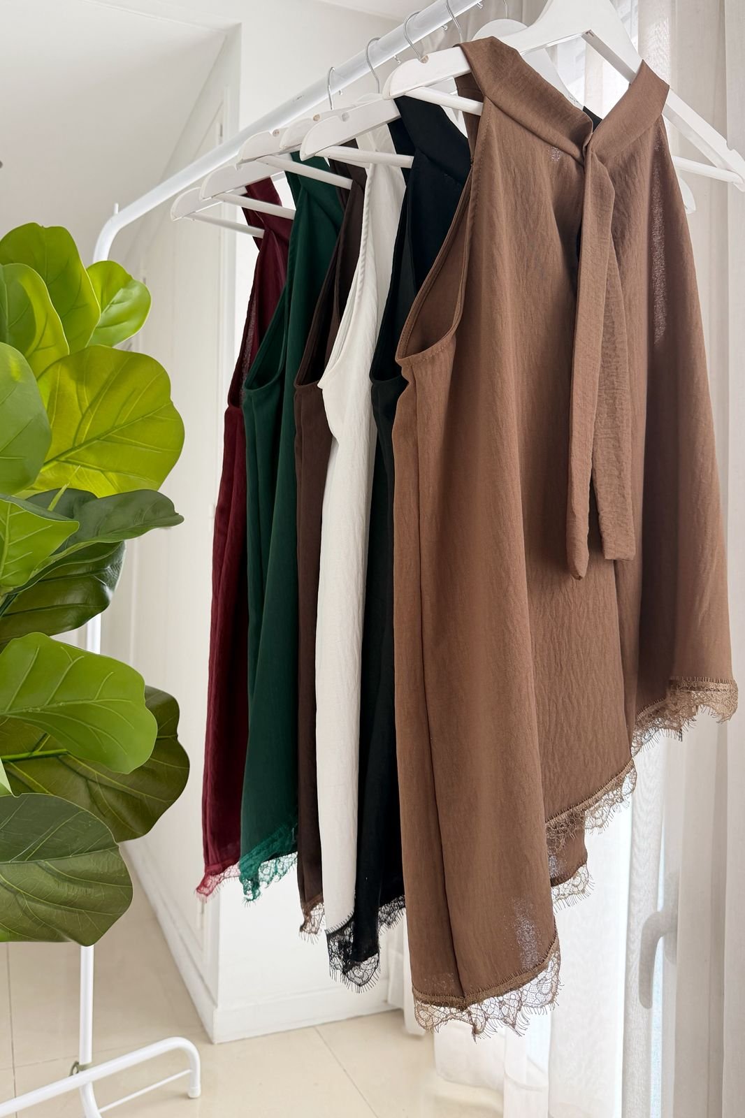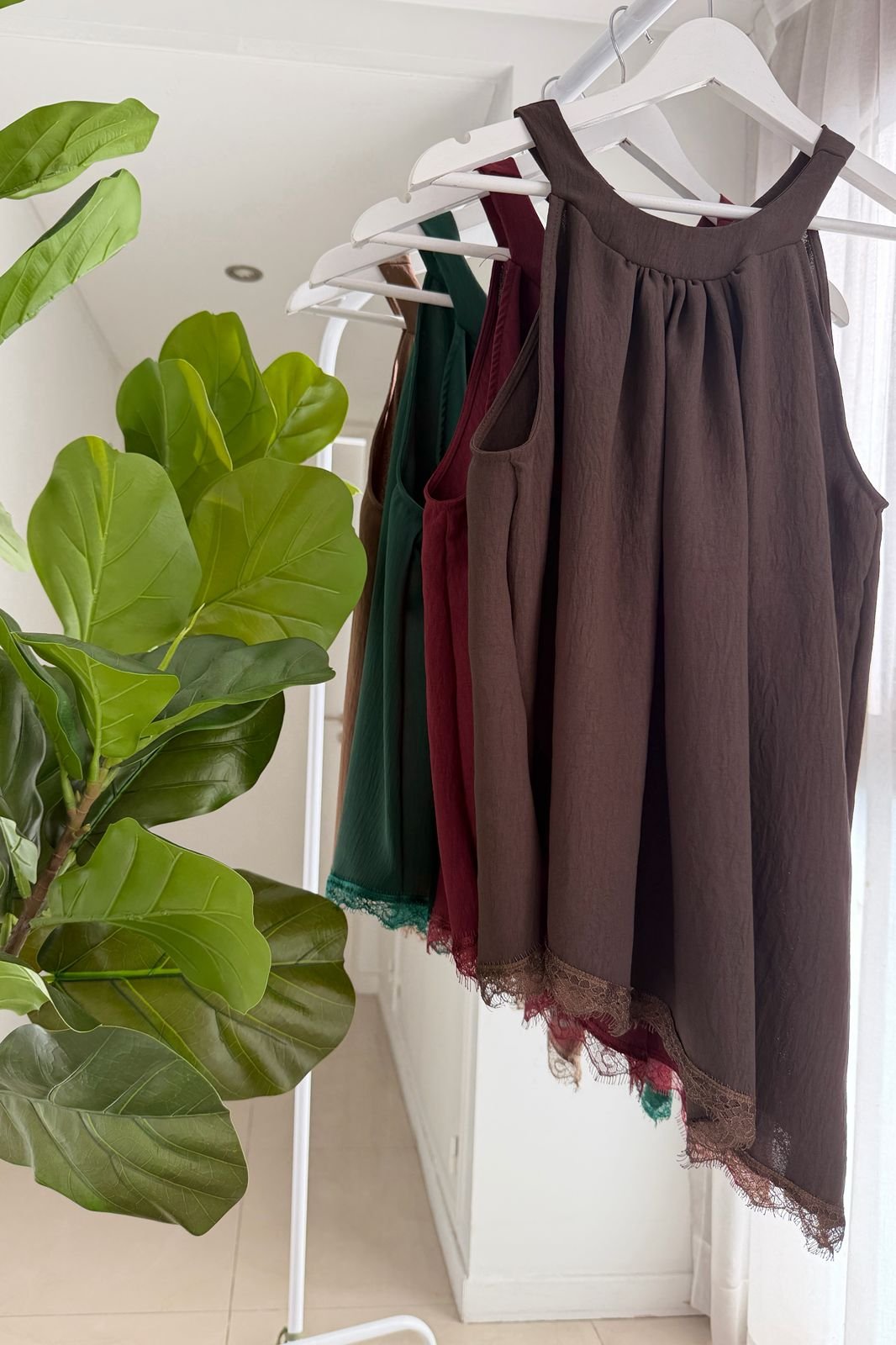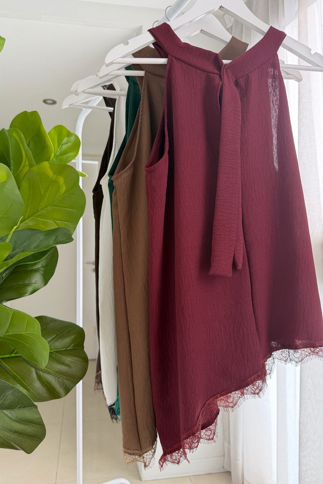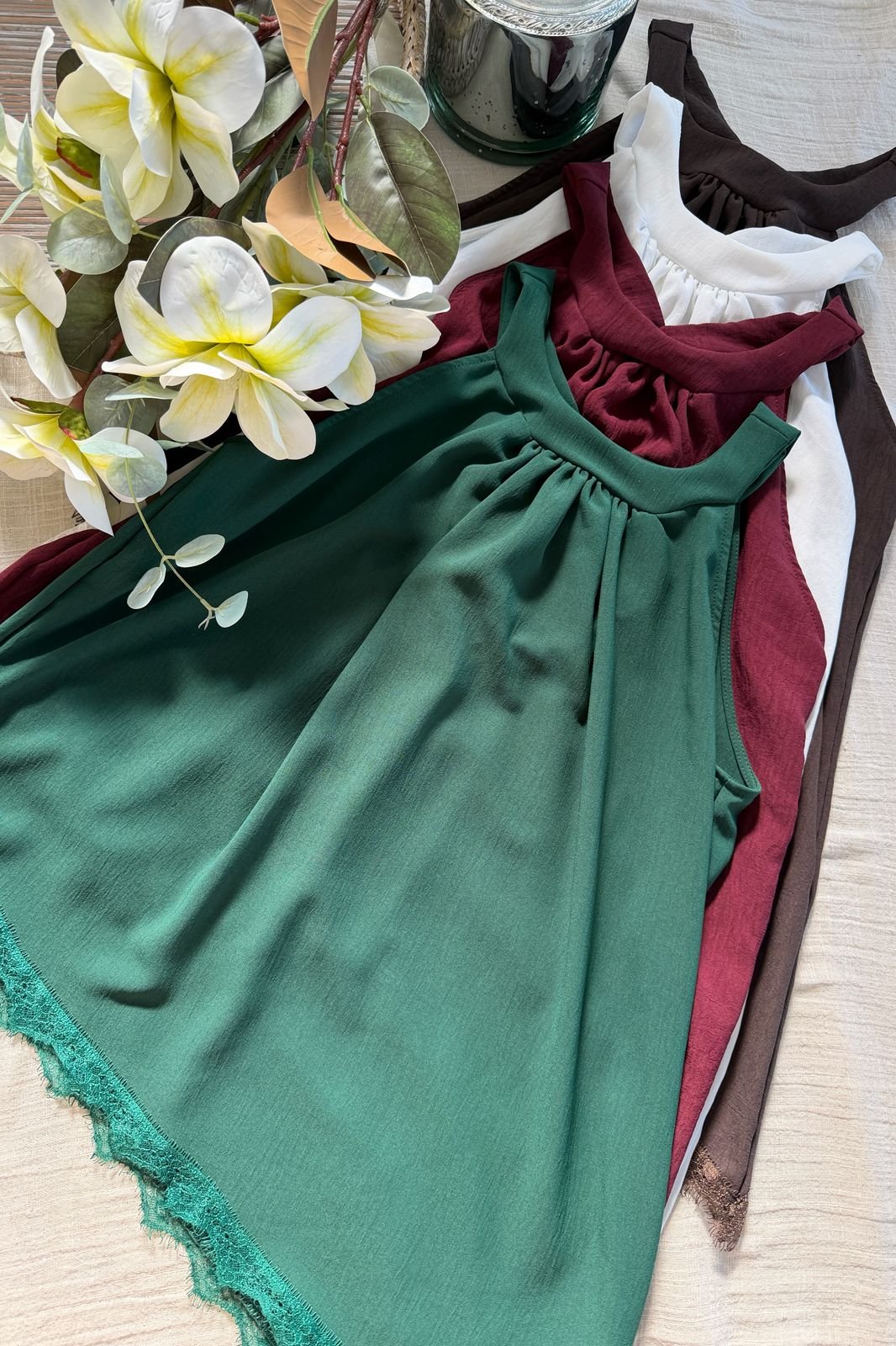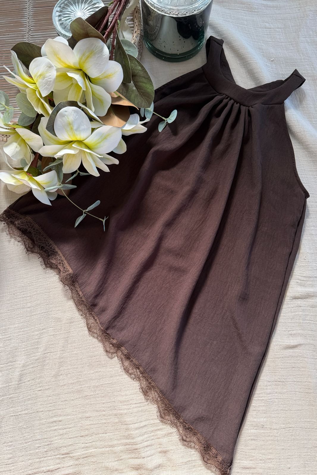 #Blusa #cuellito americano #crep lino #largo asimetrico #puntilla #para atar en cuello #sin manga #TALLE UNICO