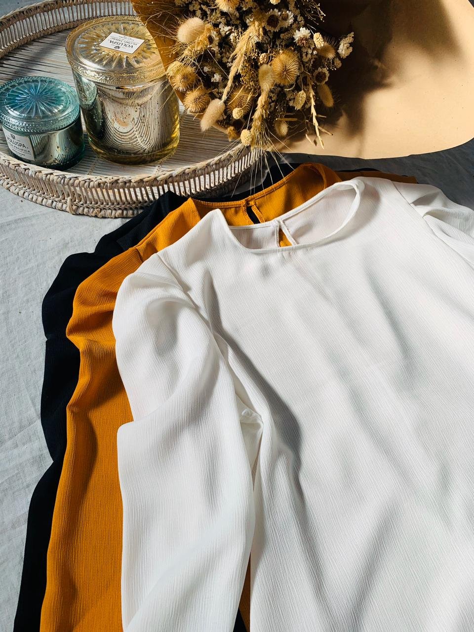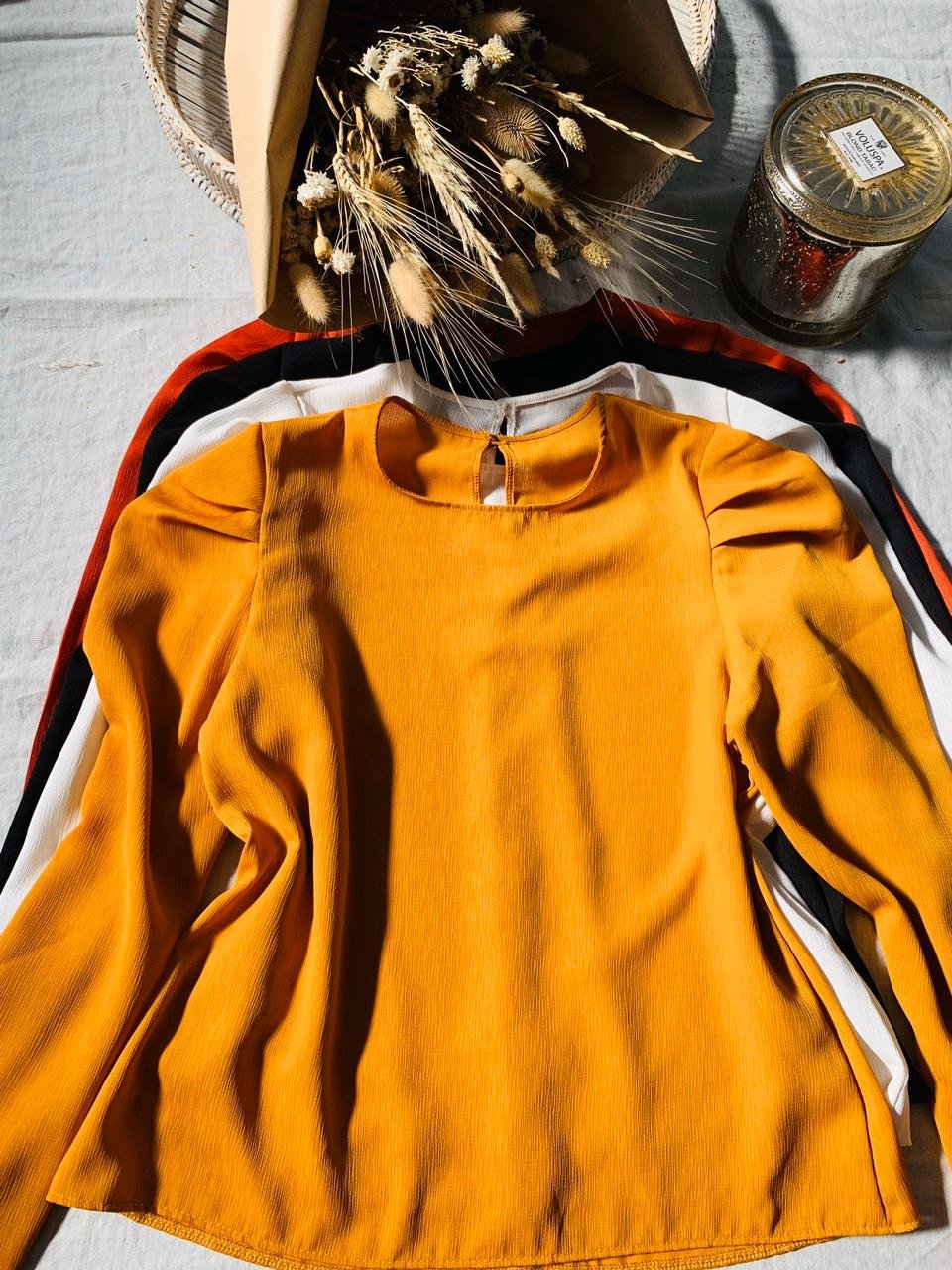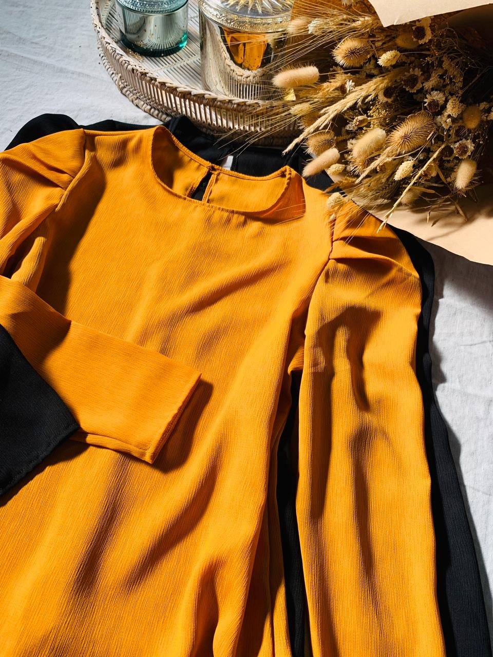 #Blusa #con volumen en mangas #crep estriado #manga larga