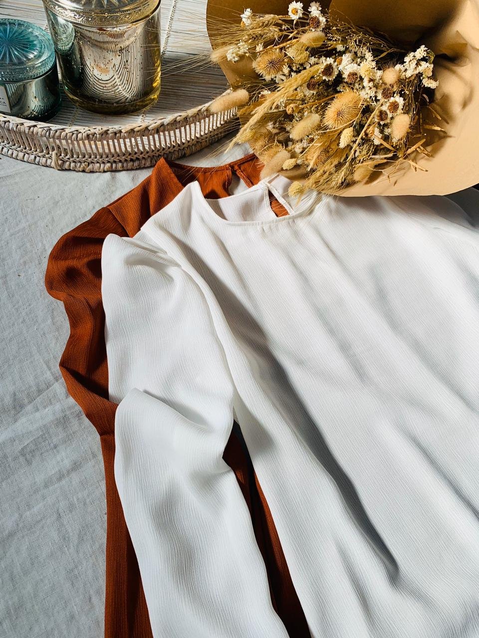 #Blusa #crep lino #manga 3/4 #manga globo #escote V delantero y espalda #tiras para atar #TALLE UNICO