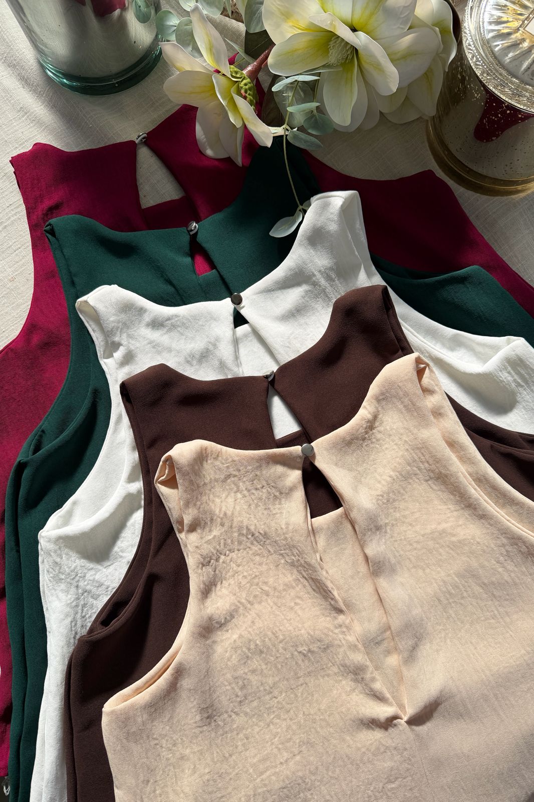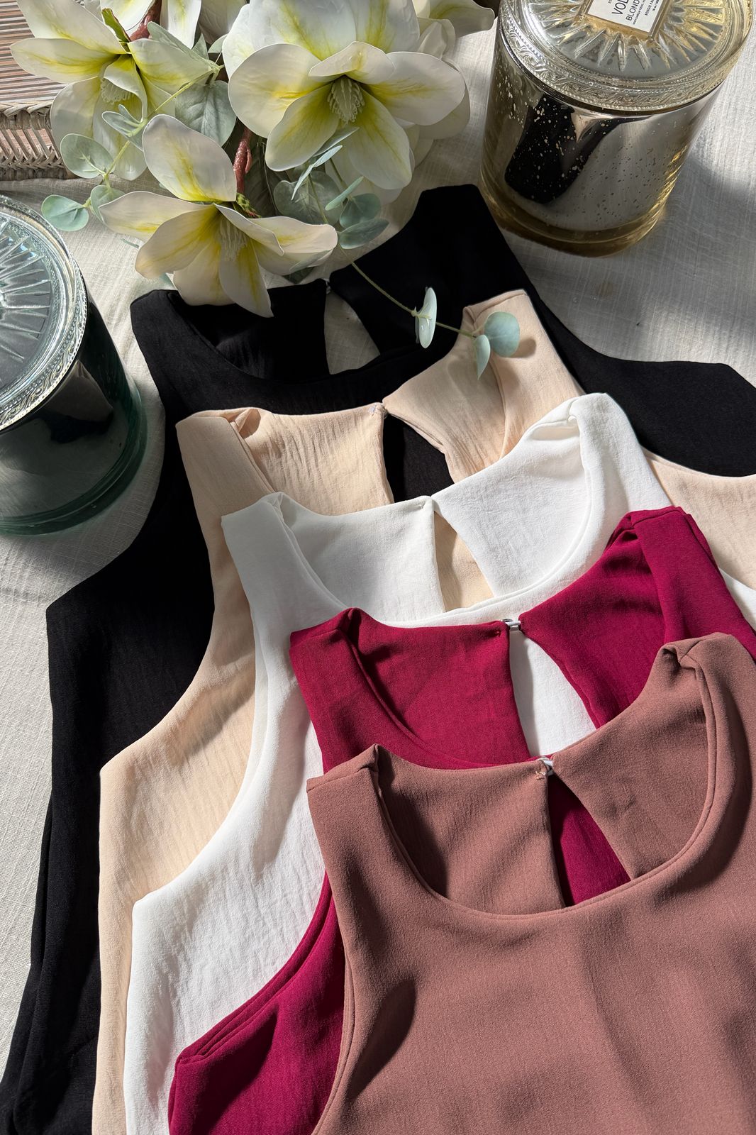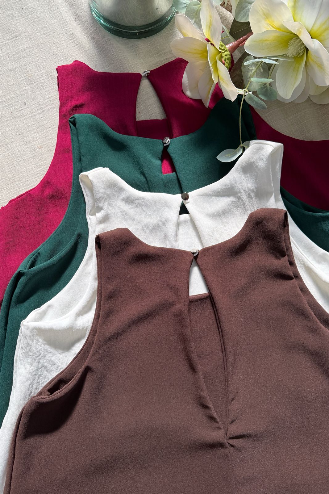 #Blusa #musculosa #cuello redondo #escote gota en espalda #crep lino #TALLE UNICO