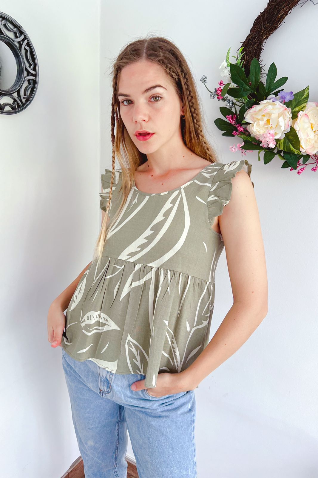 #Blusa #doble escote V #volado en manga #crep cey brilloso #TALLE UNICO