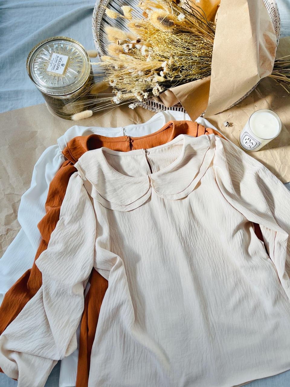 #Blusa #manga larga #crep lino #cuello bebe