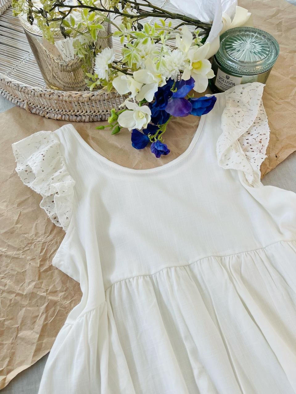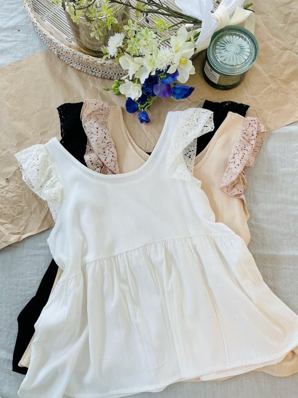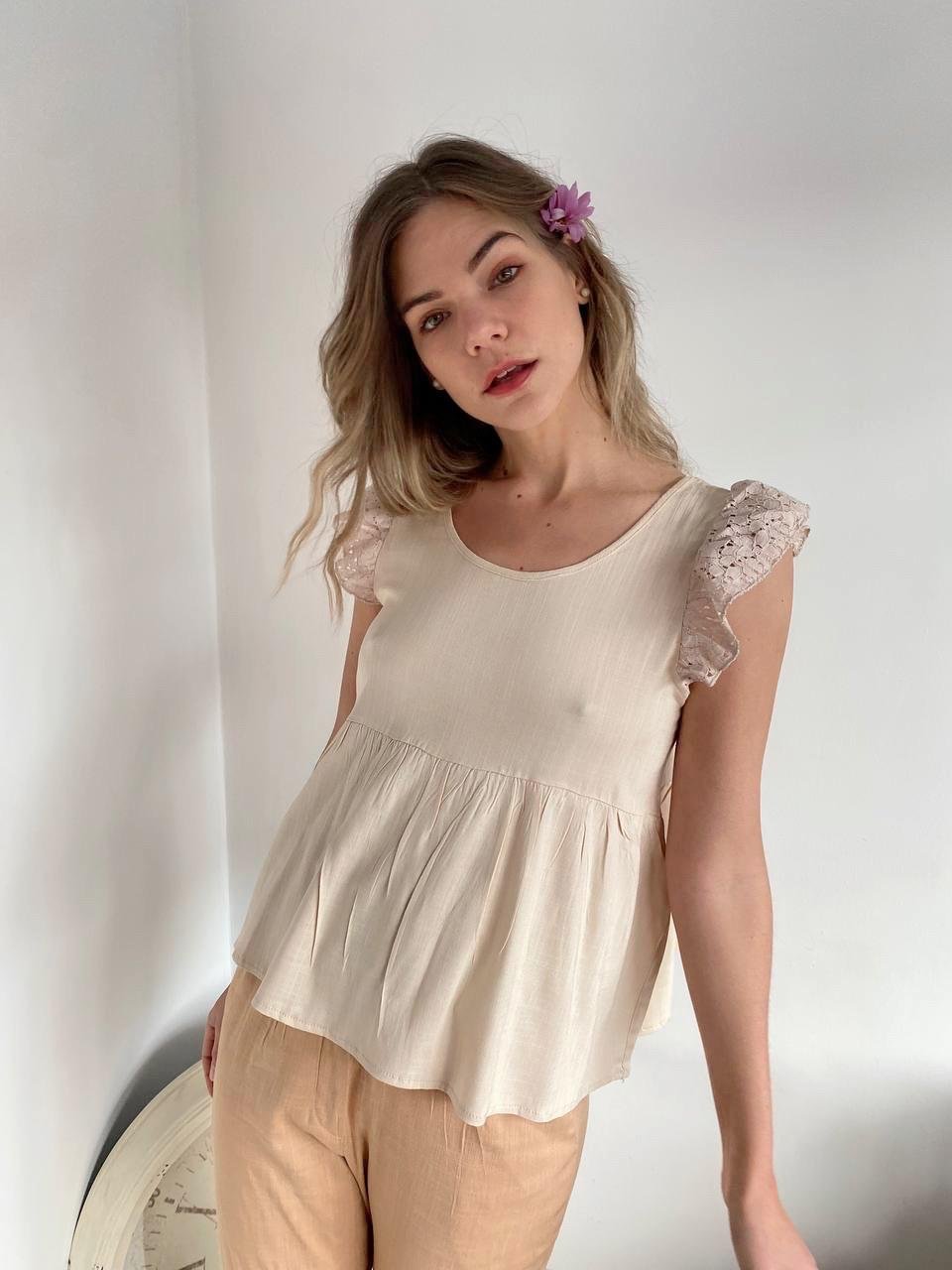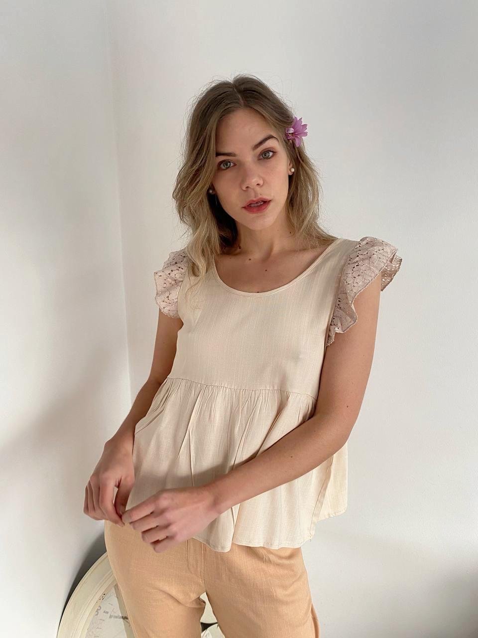 #Blusa #simil lino #doble voladitos #detalle en encaje #manga 3/4 #TALLE UNICO