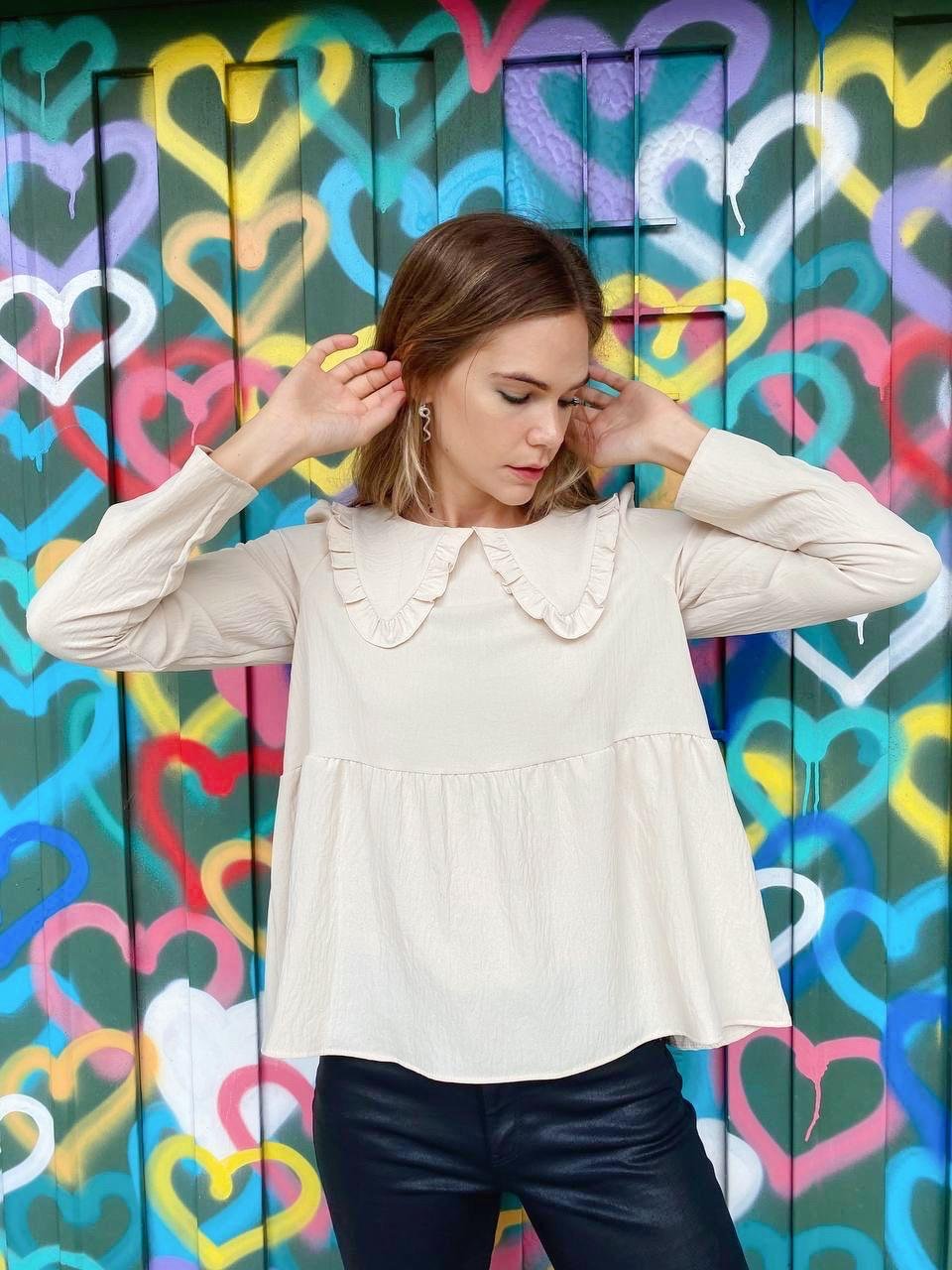 #Blusa #simil lino #doble voladitos #detalle en encaje #manga 3/4 #TALLE UNICO