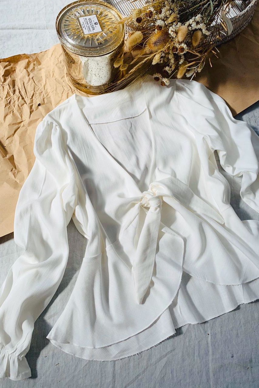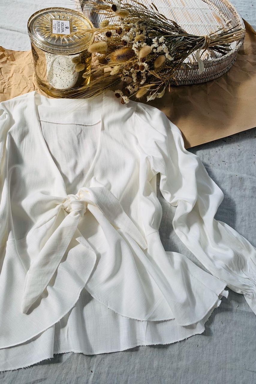 #Blusa #simil lino elastizado #manga larga #abierto adelante #volados #para anudar #TALLE UNICO