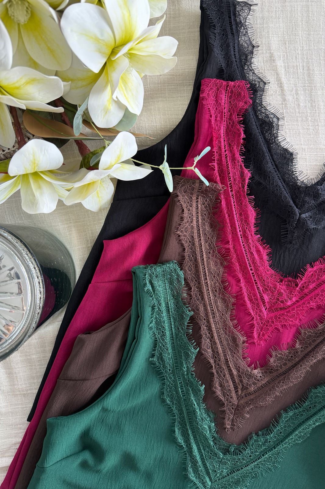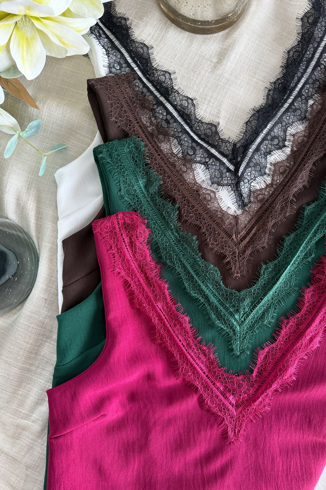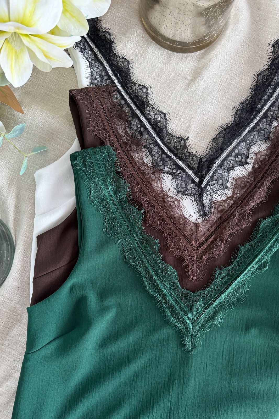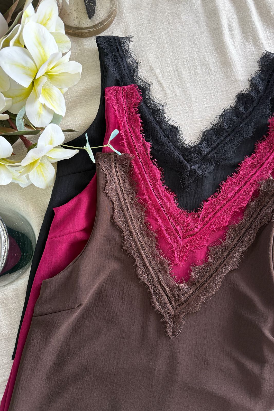 #Blusa #crep lino #escote V en delantera y espalda #puntilla en escote delantero y espalda #sin manga #TALLE UNICO