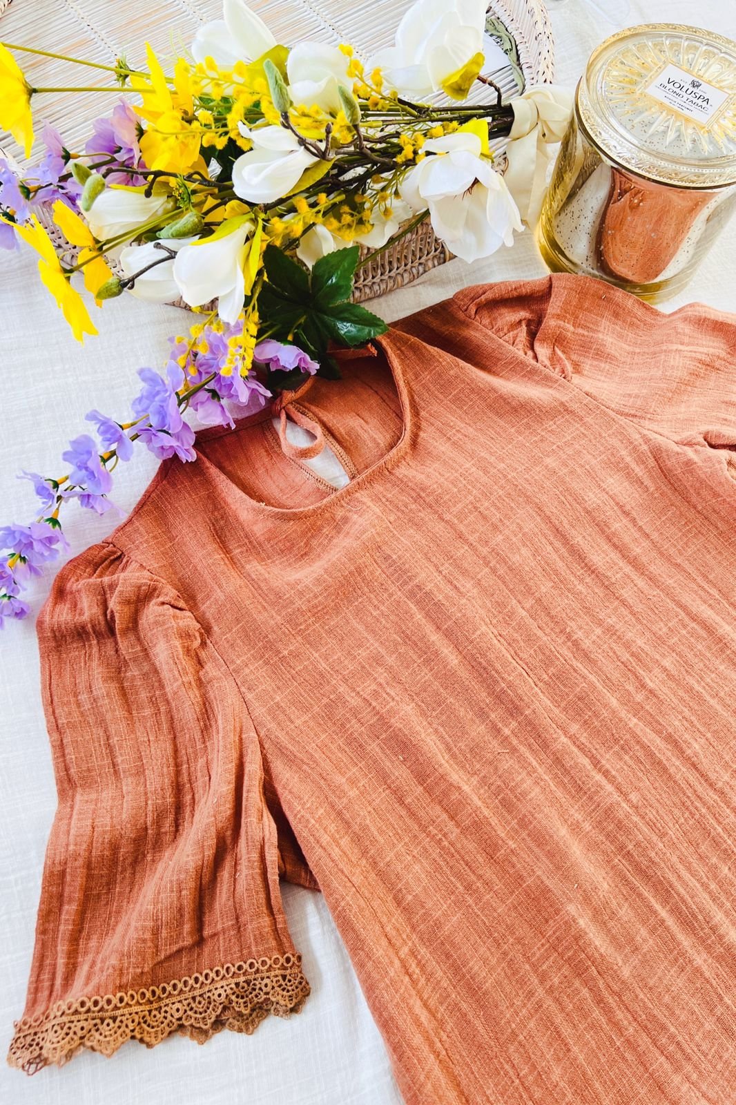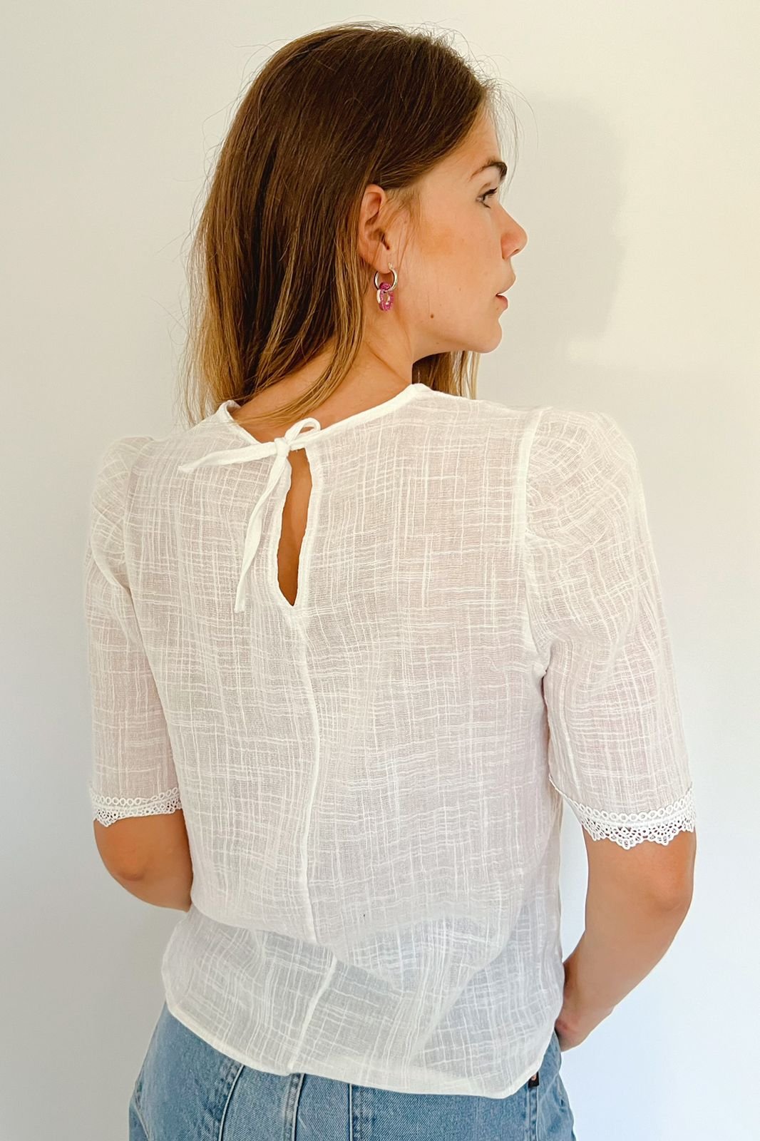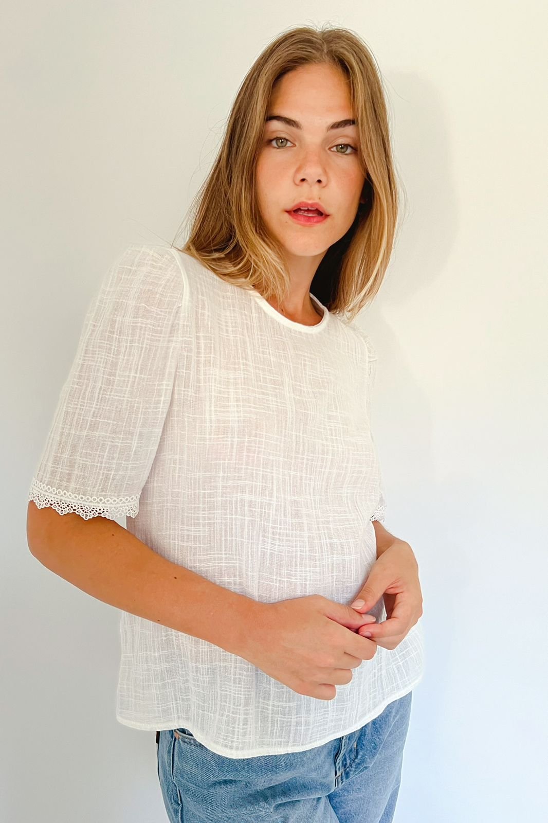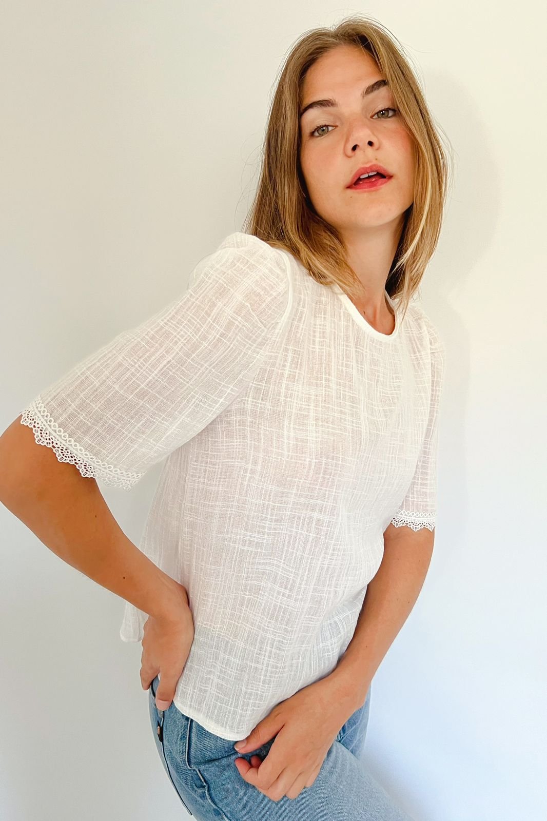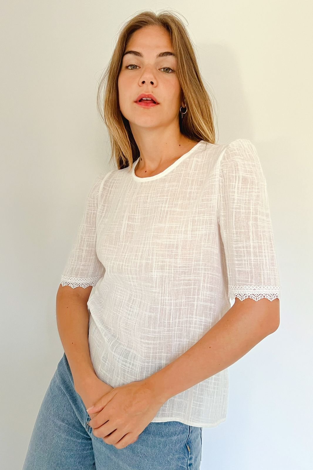Blusa Aurora Manga 3/4 Simil Lino con Encaje