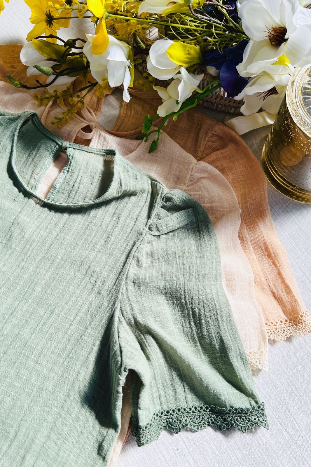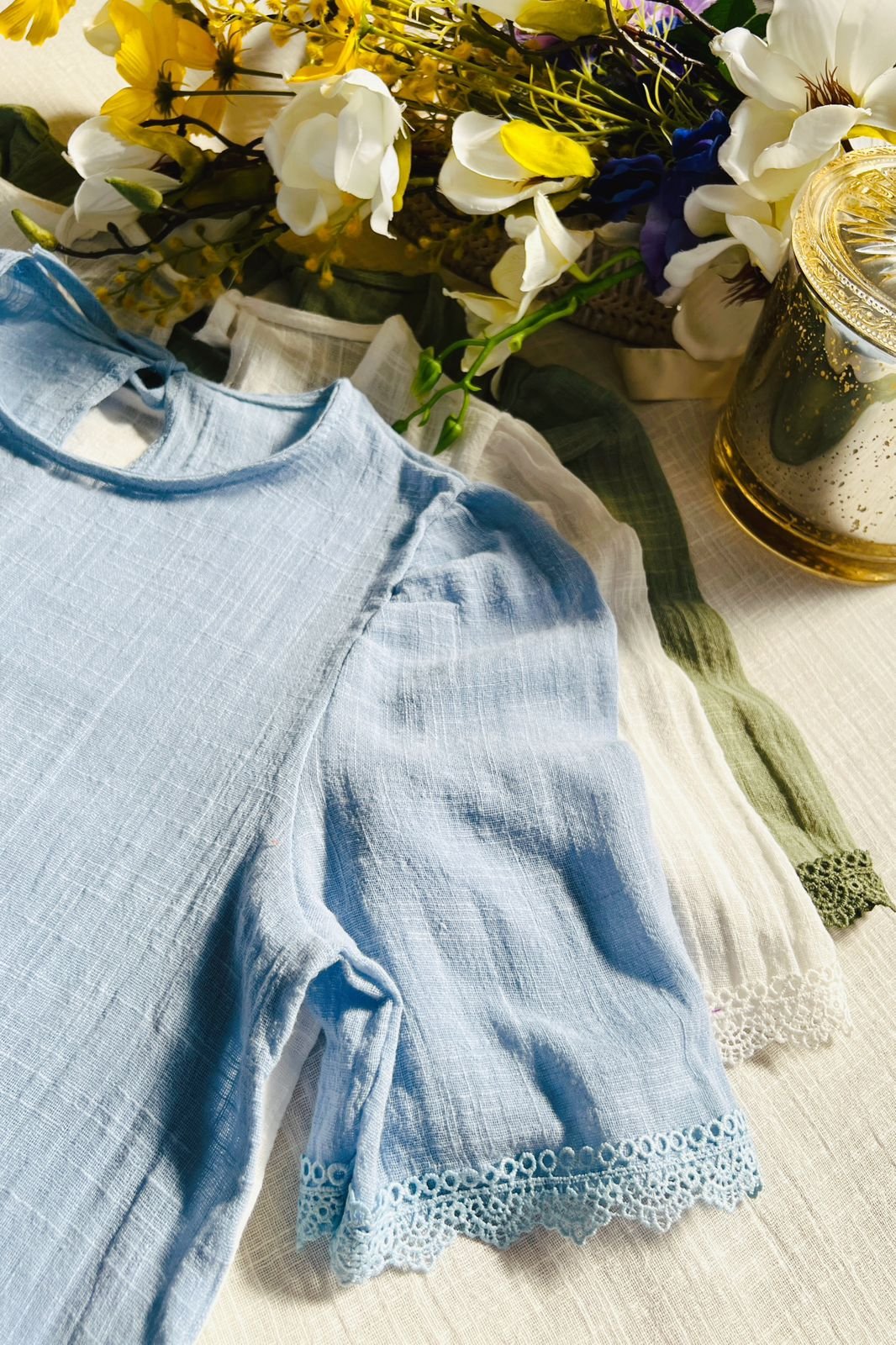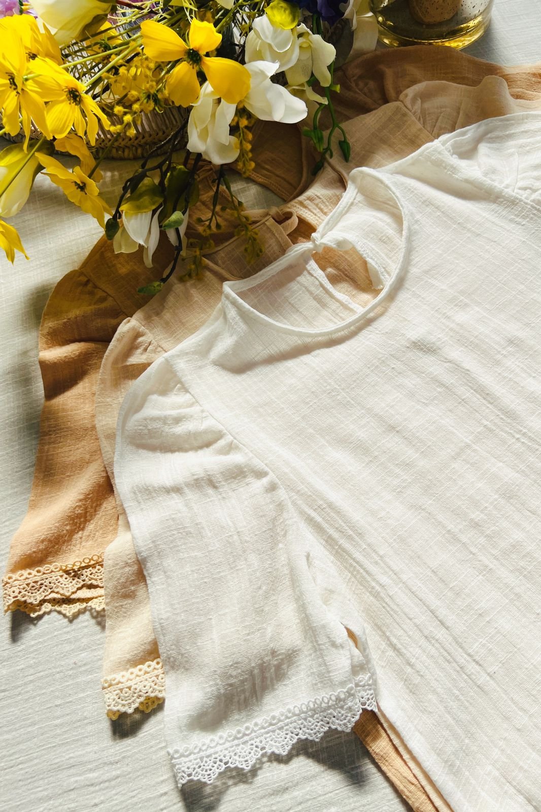 $12,000.00#Blusa #simil lino #doble voladitos #detalle en encaje #manga 3/4 #TALLE UNICO