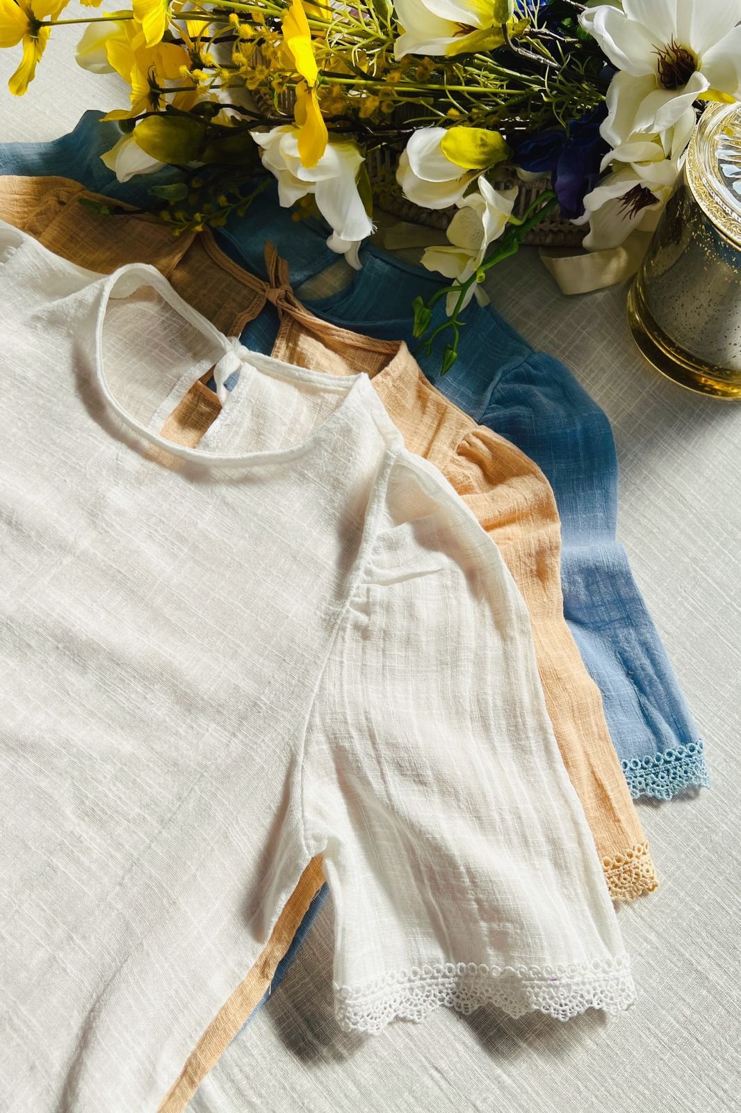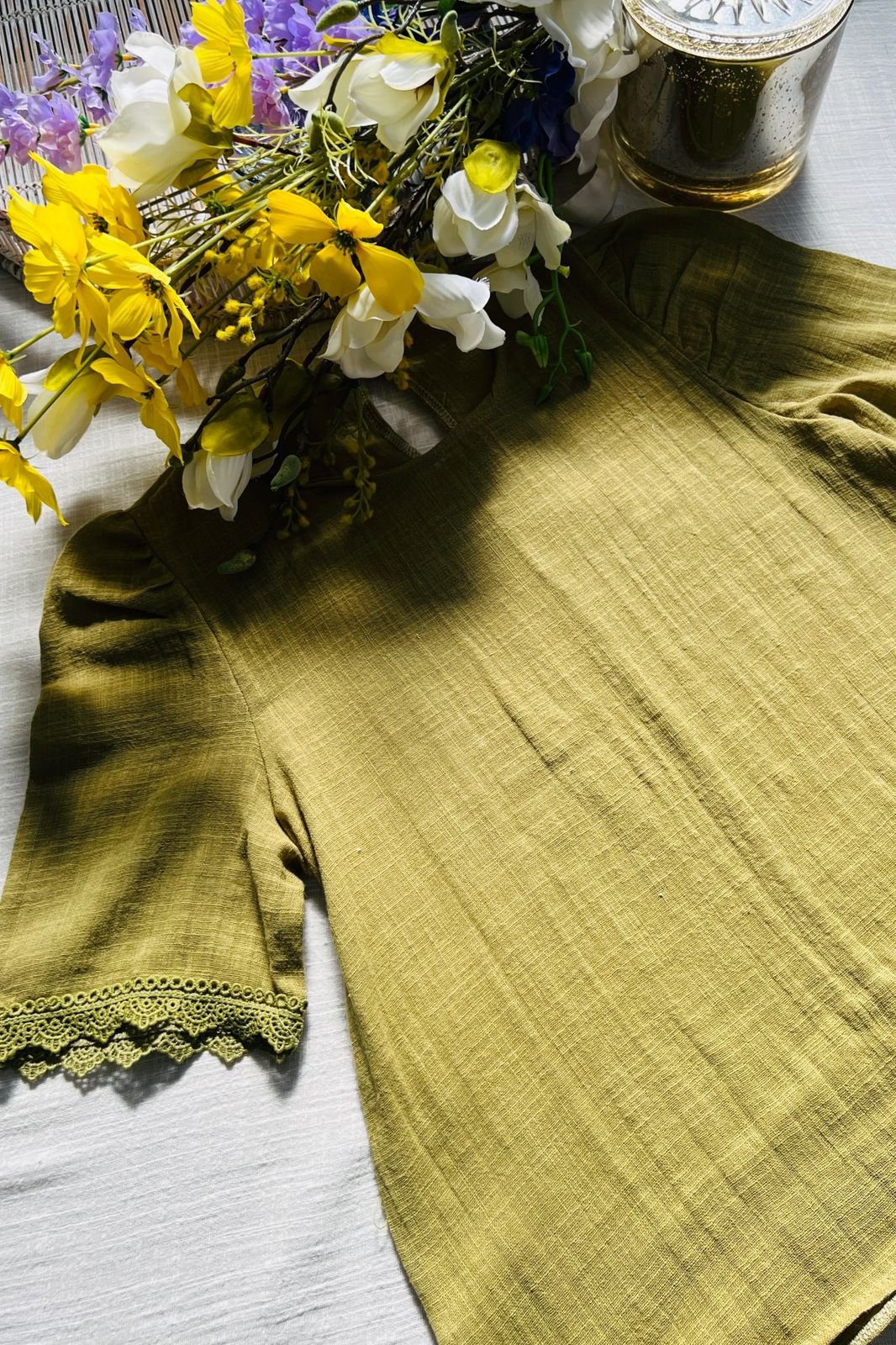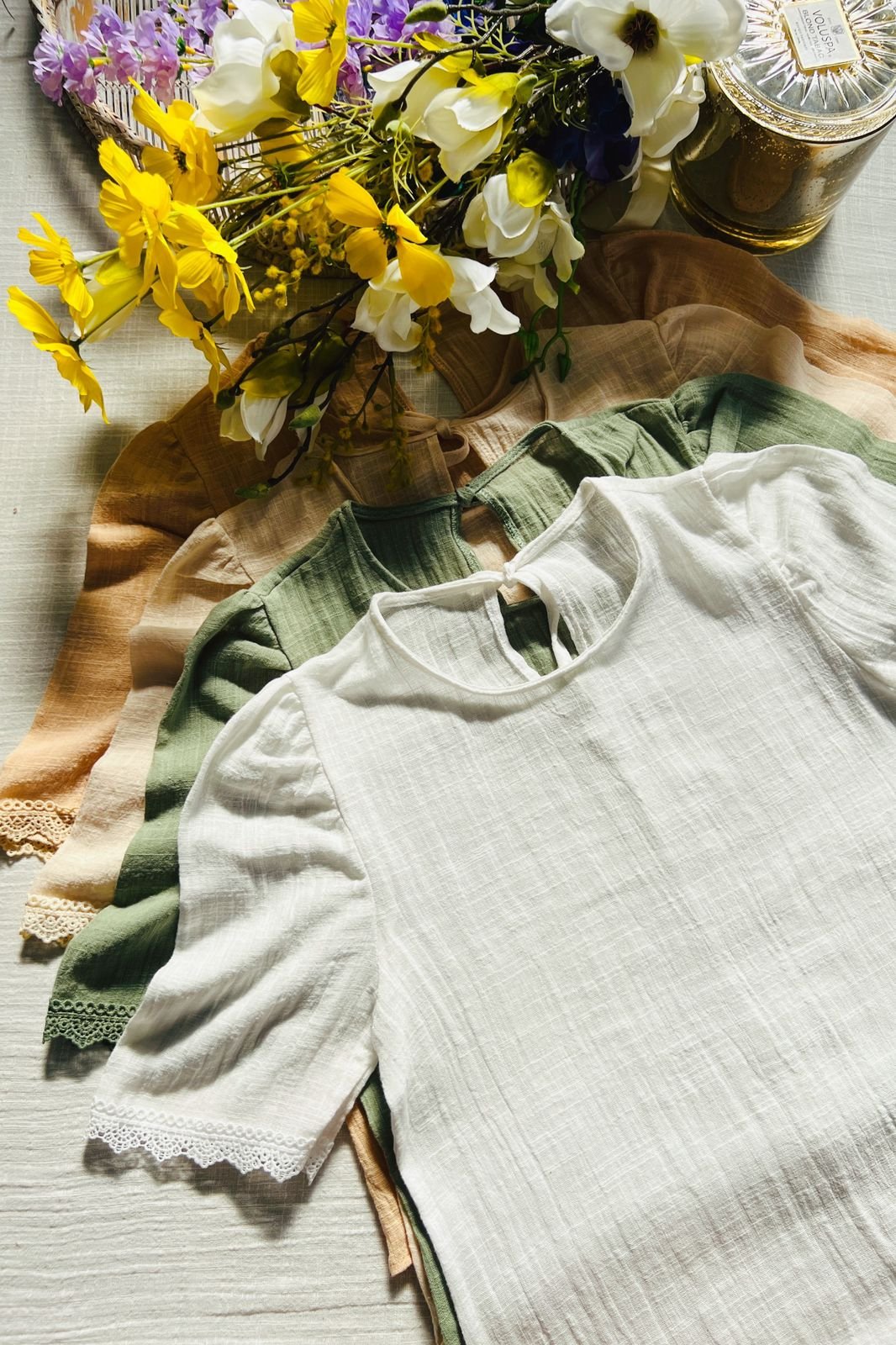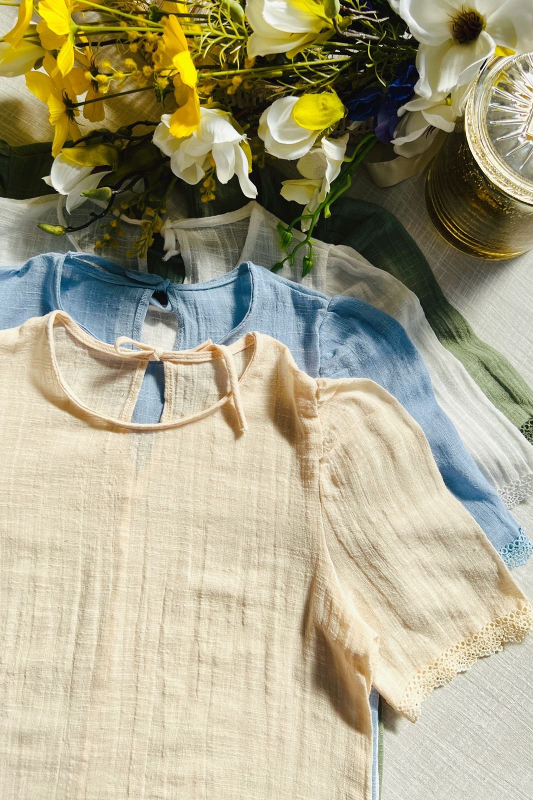 $12,000.00#Blusa #simil lino #doble voladitos #detalle en encaje #manga 3/4 #TALLE UNICO