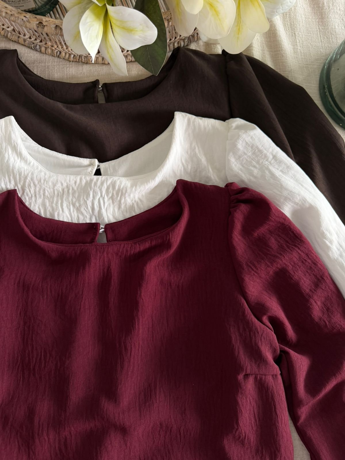 #Blusa #crep lino #cuello redondo #espalda partida #manga larga #TALLE UNICO #TALLE M