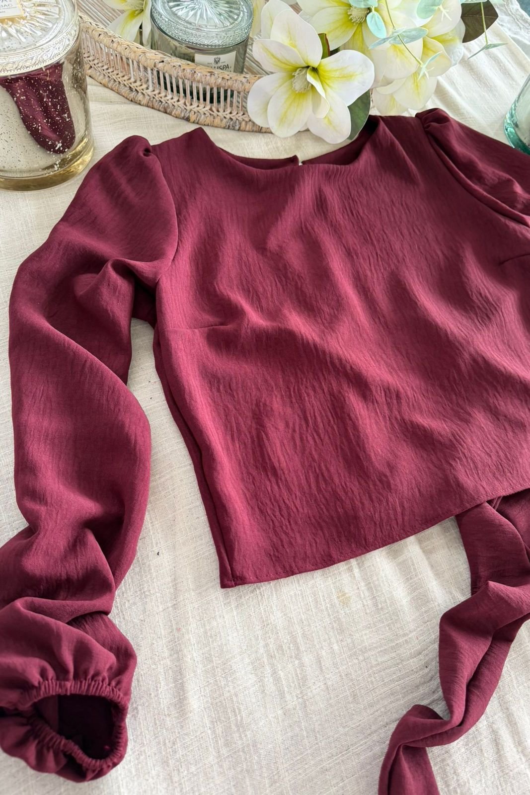 #Blusa #manga globo #apertura en espalda #para atar #crep lino #TALLE UNICO #TALLE M/L(la modelo mide 170cm y es 38 de jean, te servira de referencia)