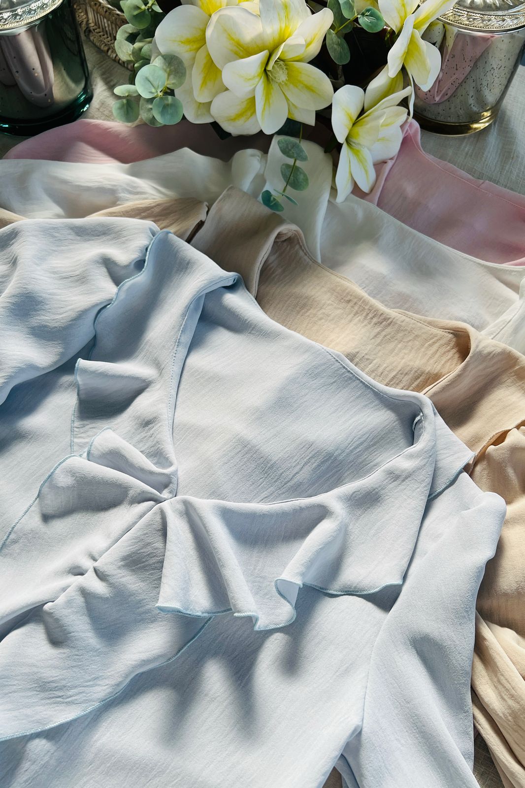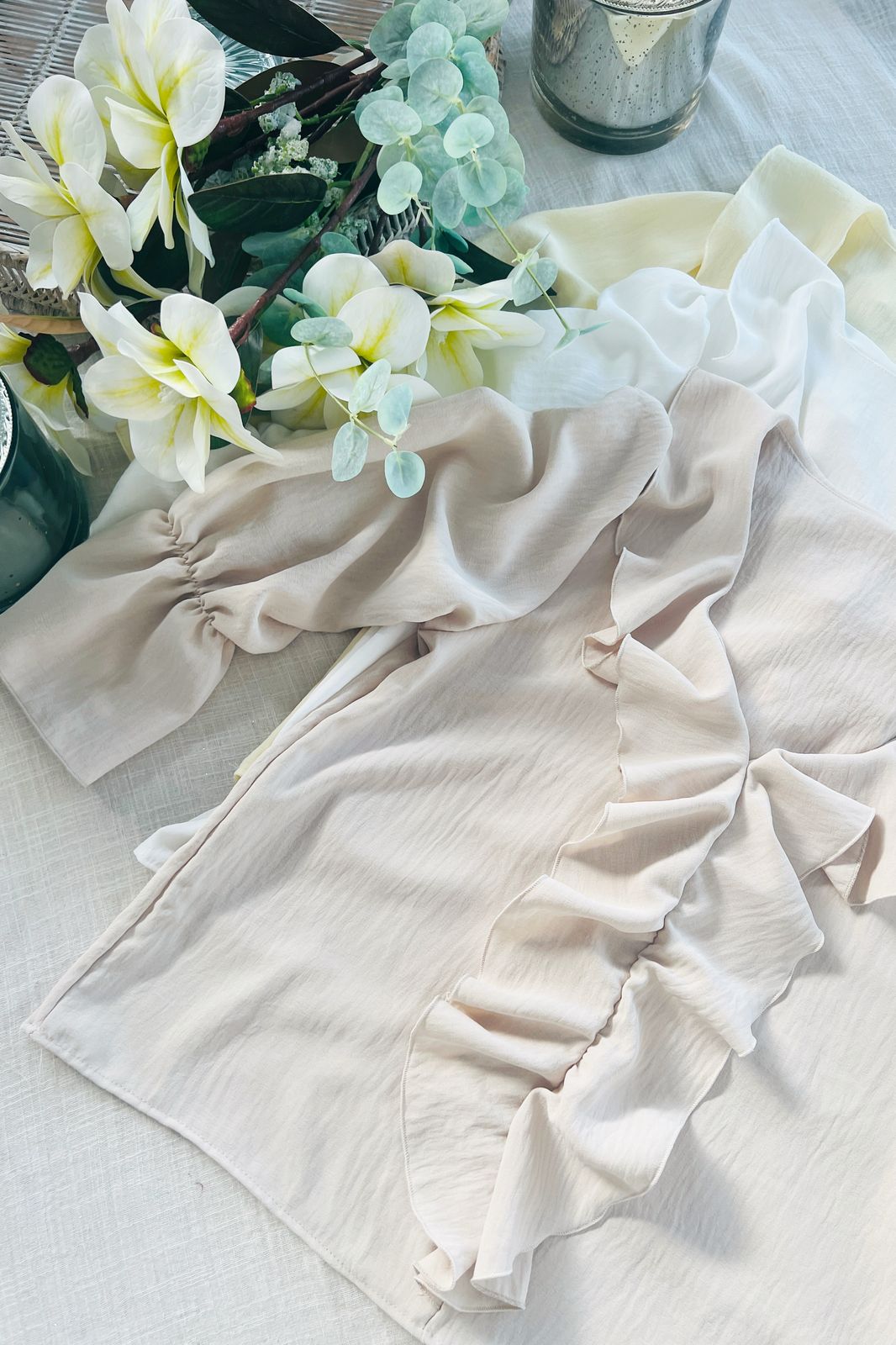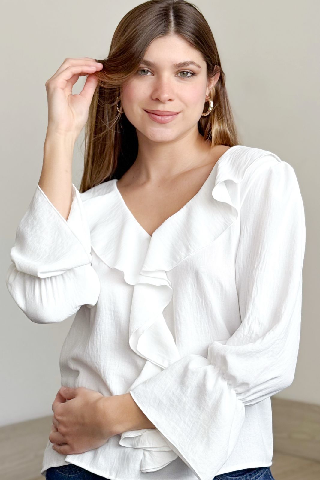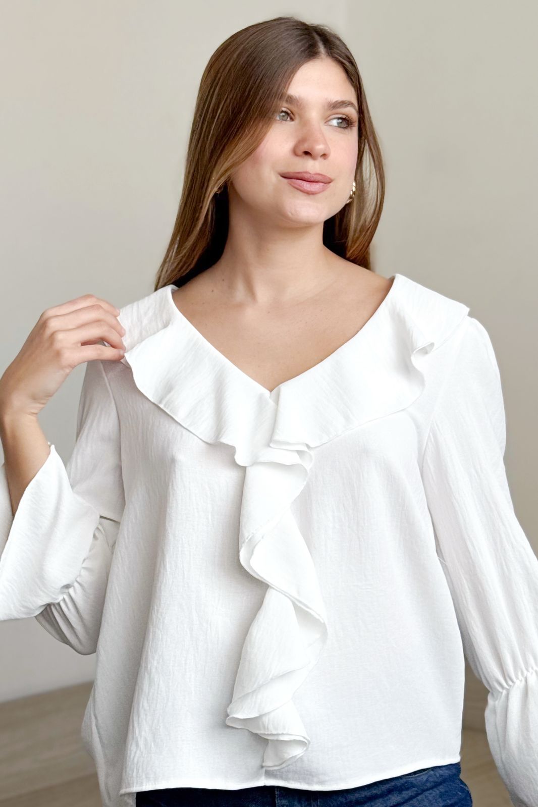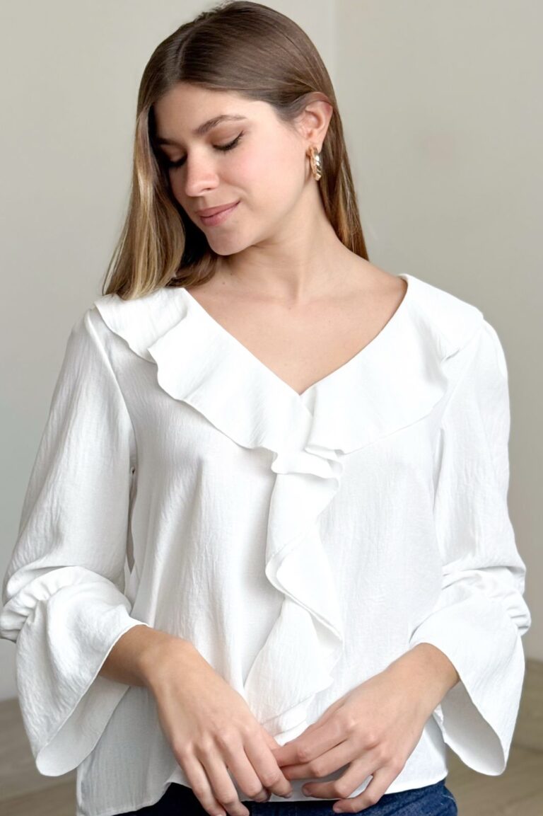 #Blusa #crep lino #volados frontales #estilo boho #manga 3/4 #TALLE UNICO