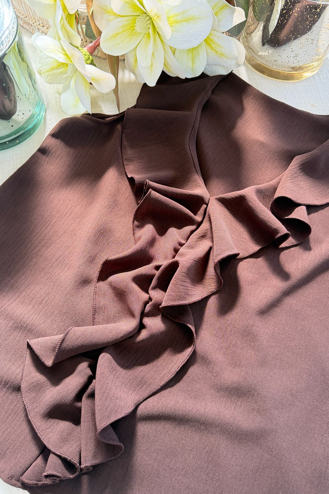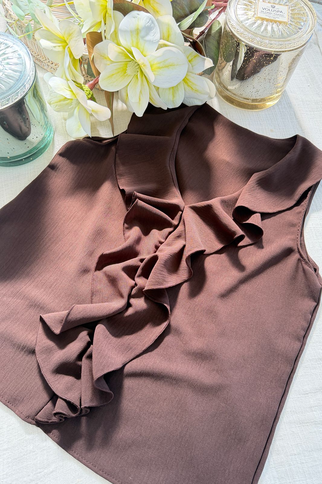 #Blusa #sin manga #escote V #volado cascada en escote #CREP LINO