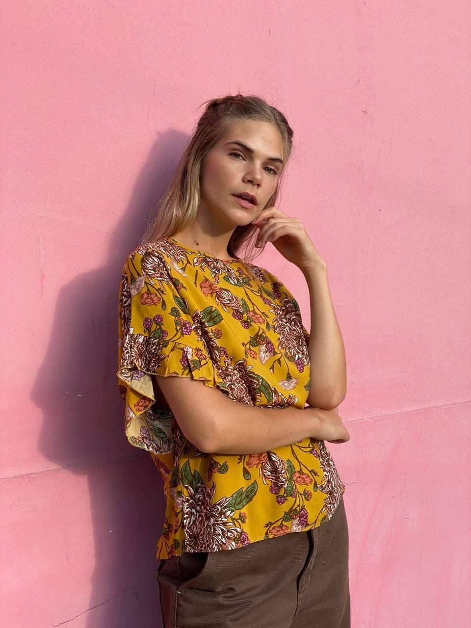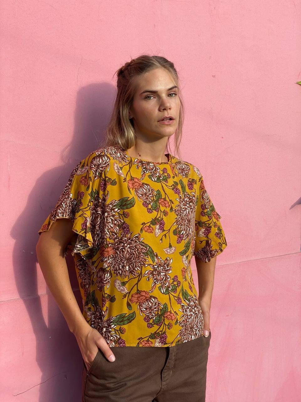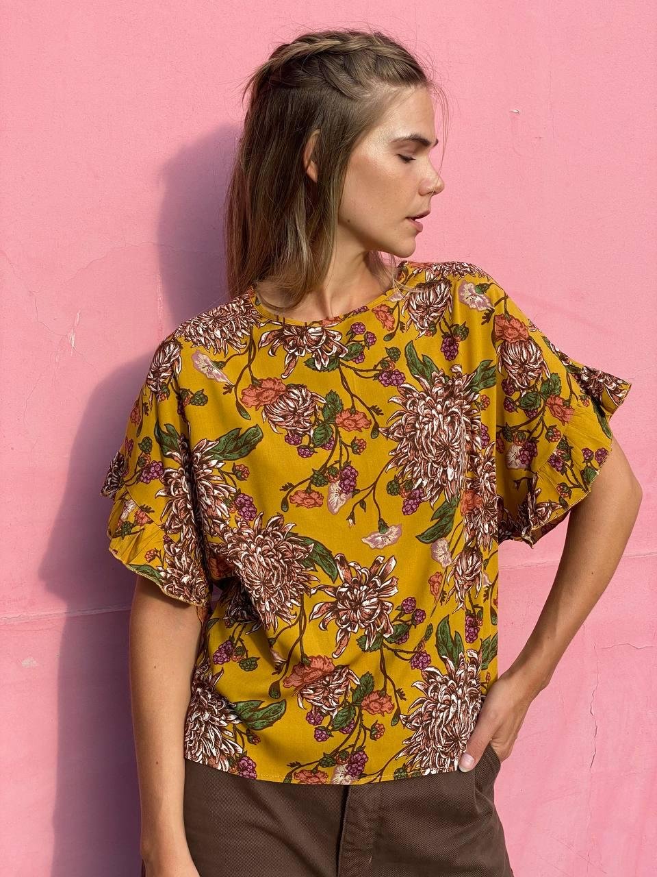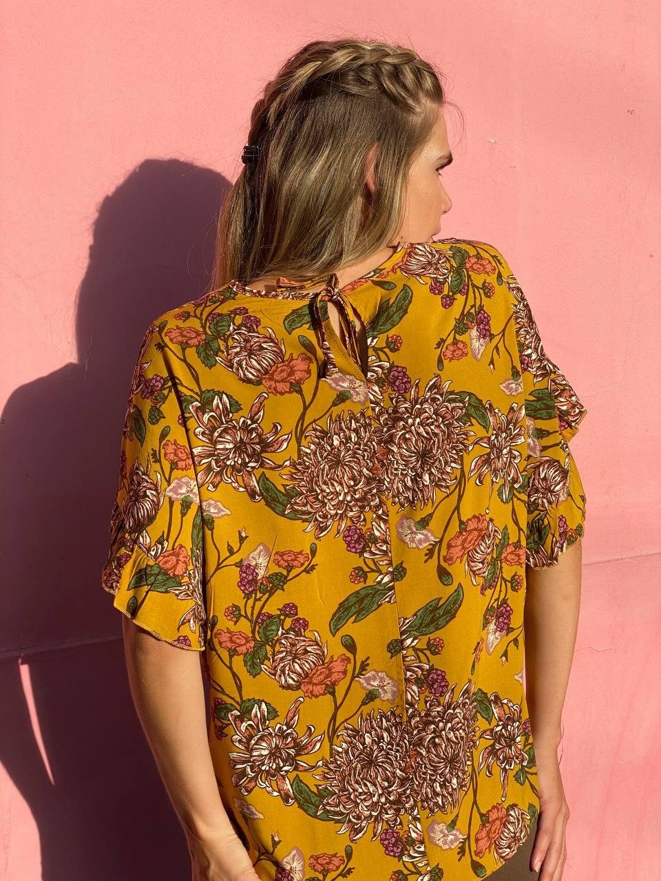 #Blusa #crep lino #manga 3/4 #manga globo #escote V delantero y espalda #tiras para atar #TALLE UNICO