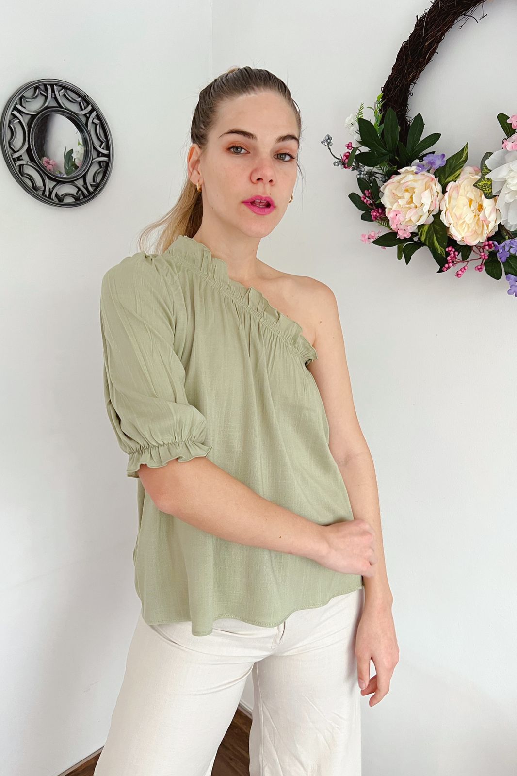 #Top #crep lino #volados #uso reversible #TALLE UNICO #TALLE M/L(la modelo mide 170cm y es 38 de jean, te servira de referencia)