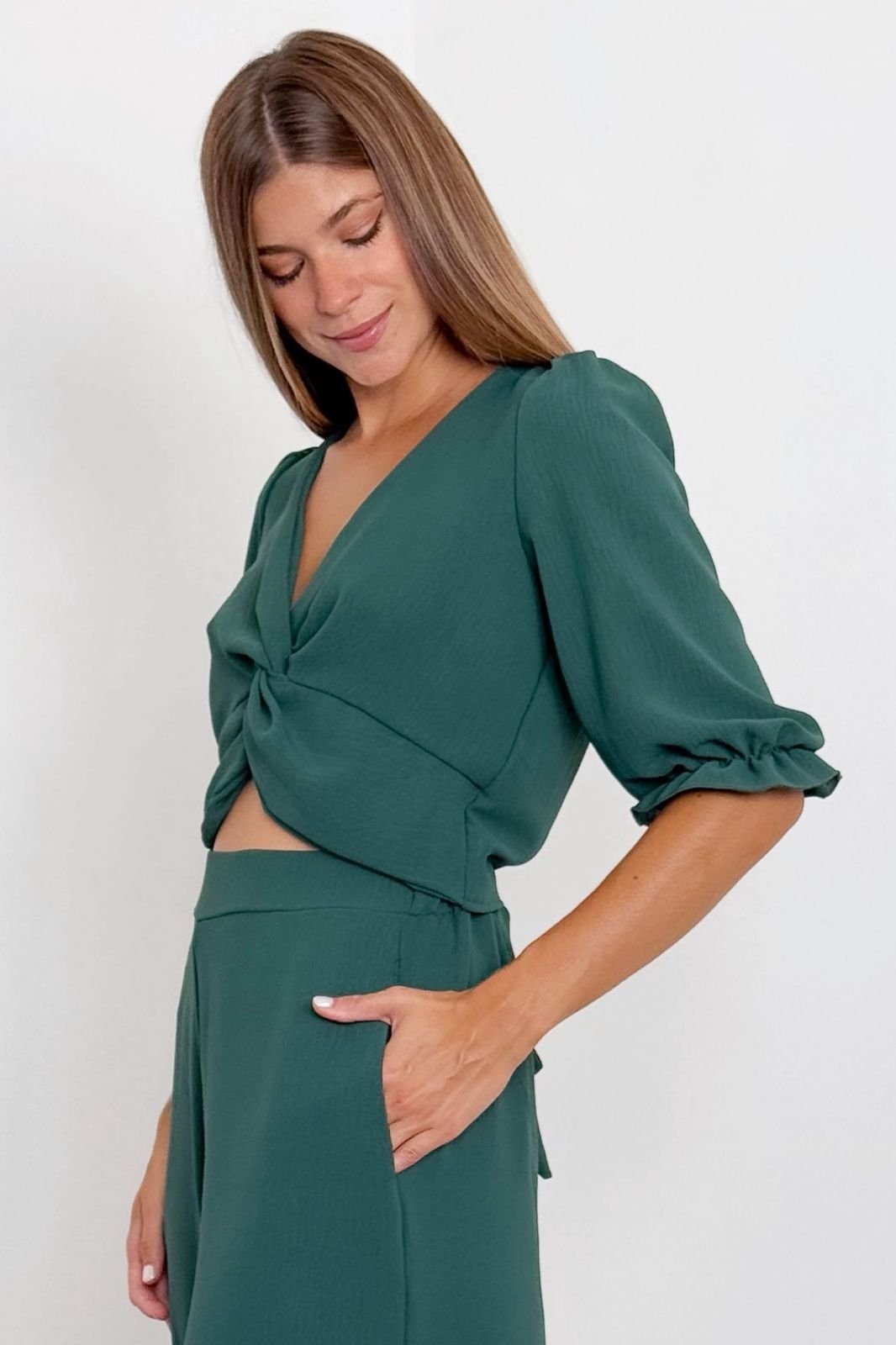 Blusa Tiziana crep lino manga 3/4