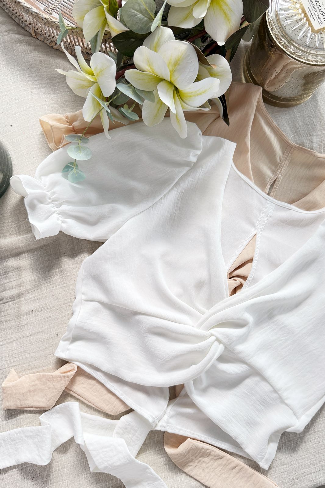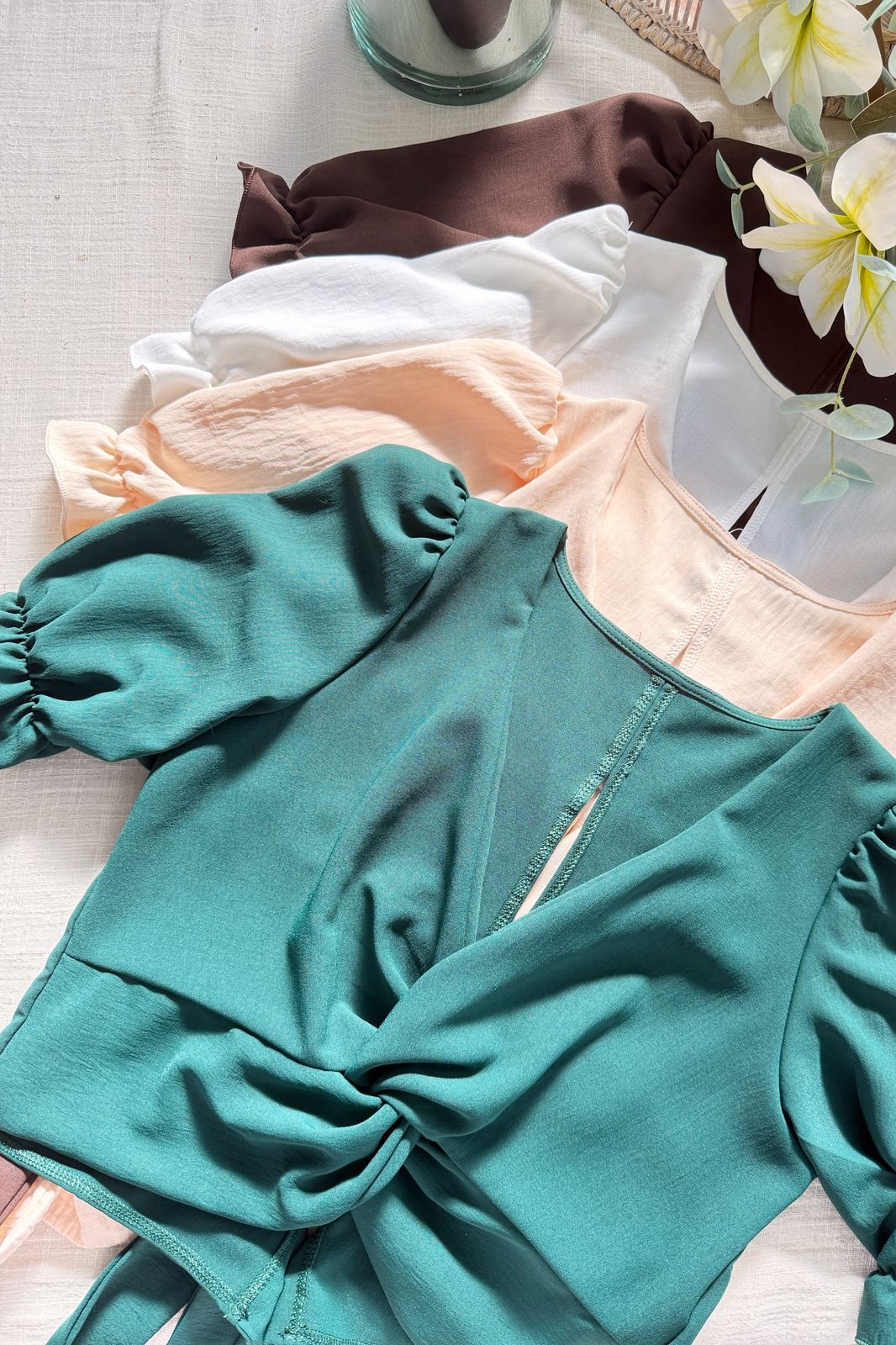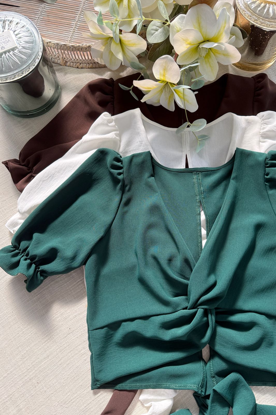 #Blusa #cruzada en delantera #crep lino #manga corta #manga globo #espalda partida #lazo para atar #TALLE UNICO