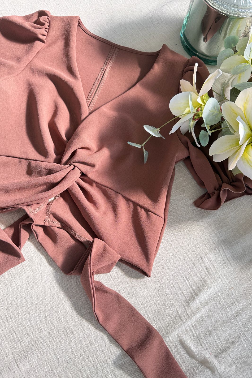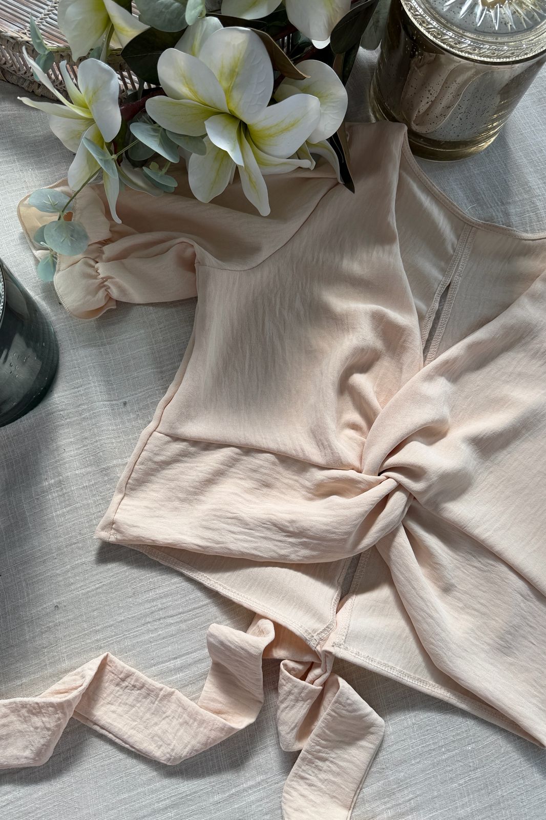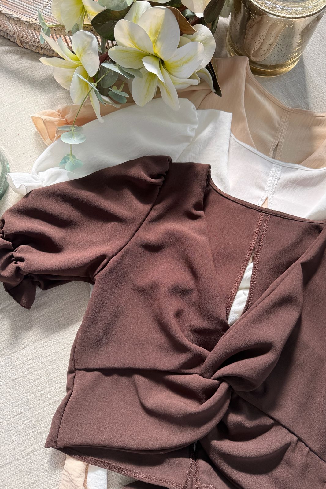 #Blusa #cruzada en delantera #crep lino #manga corta #manga globo #espalda partida #lazo para atar #TALLE UNICO