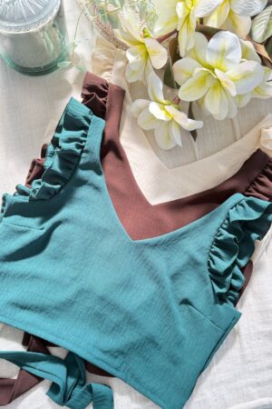 $9,000.00#Top #crep lino #escote V #voladitos #tirita para atar en espalda #TALLE UNICO