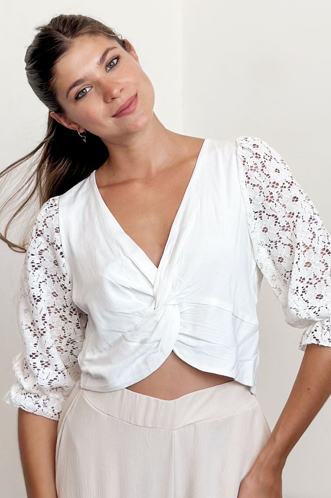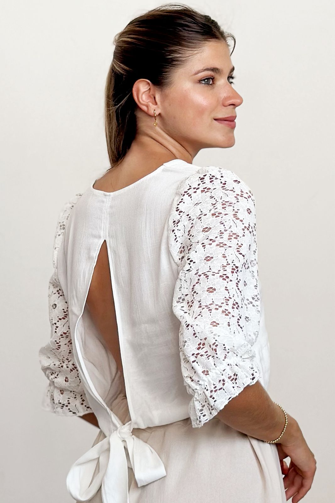 #Blusa #simil lino #manga encaje #manga al tono #cruzado adelante #espalda partida #lazo para atar #TALLE UNICO