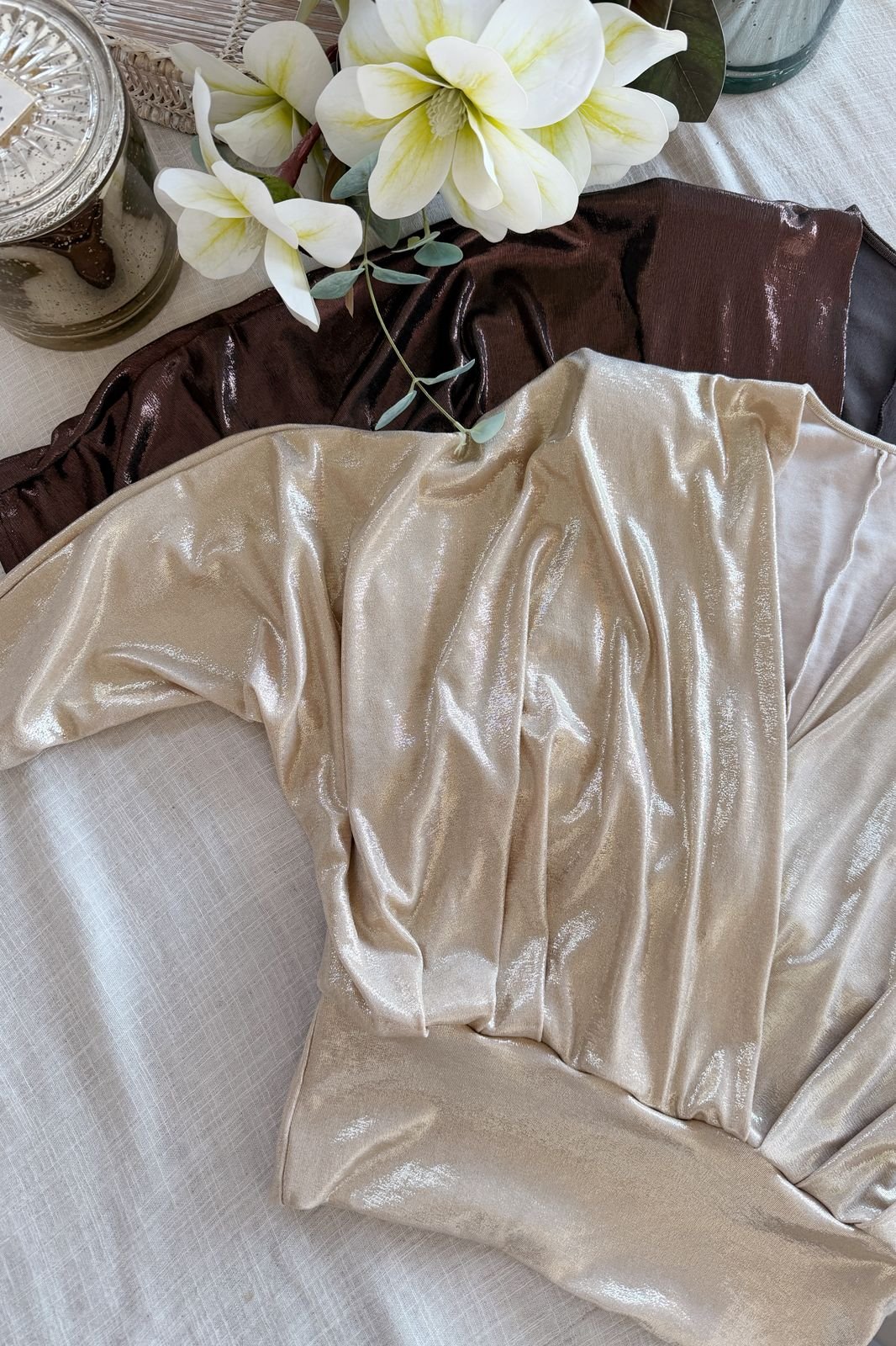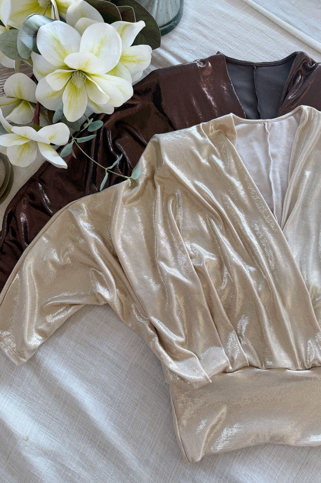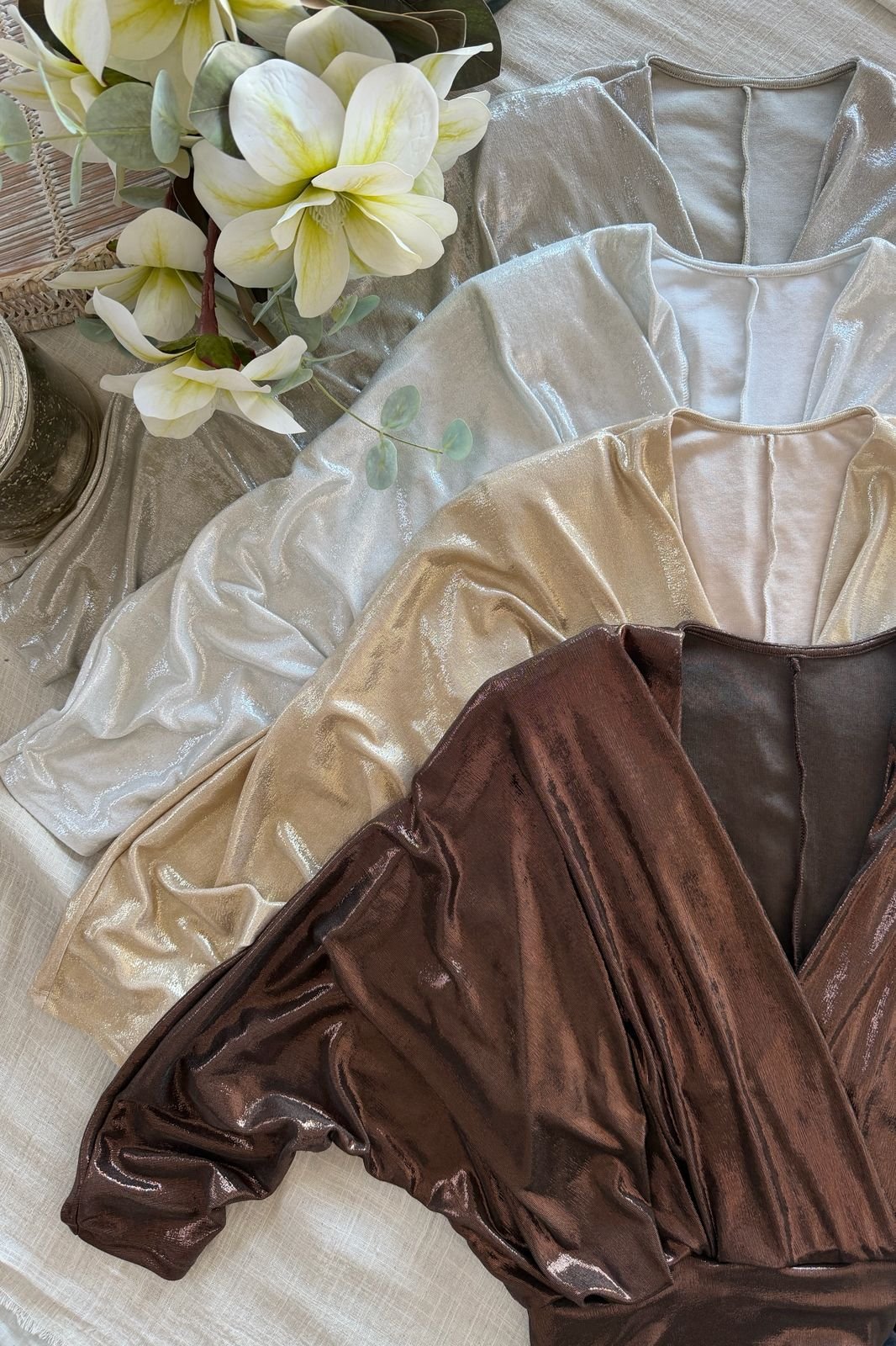 #Blusa #skinny foil #cruzado adelante #manga ranglan #hombreras #TALLE UNICO