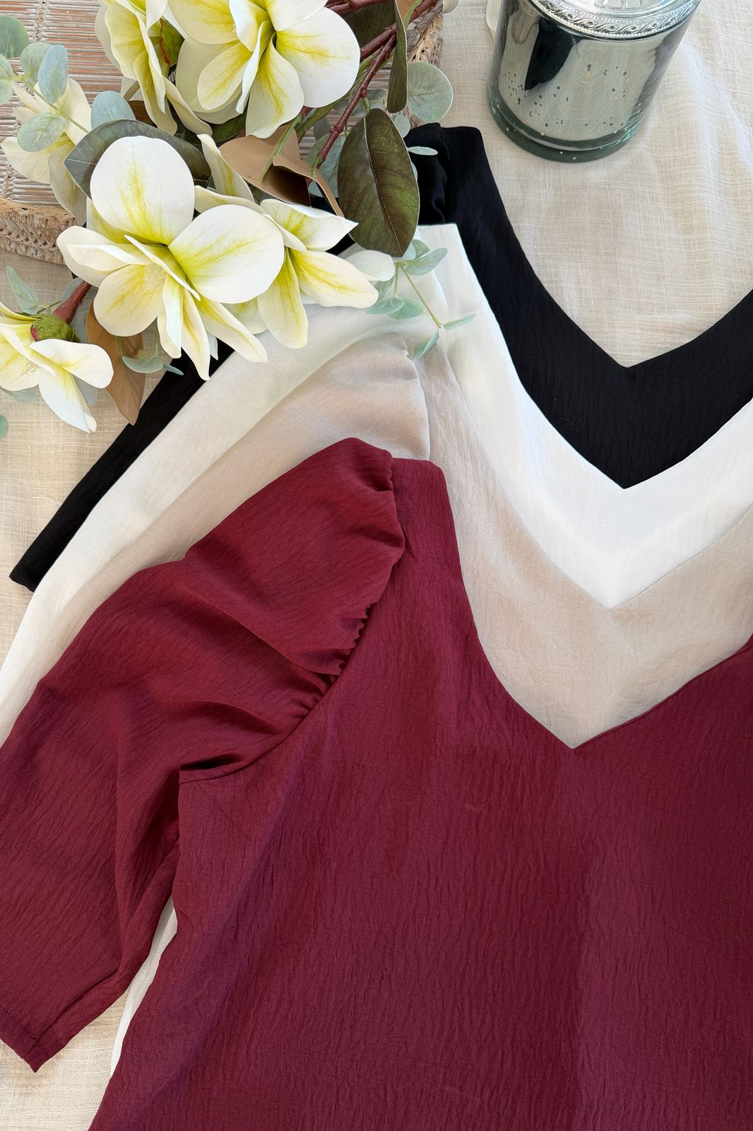 #Blusa #simil lino #manguita globo # manguita en encaje al tono #TALLE UNICO