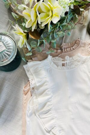 #Blusa #simil lino #doble voladitos #detalle en encaje #manga volado #TALLE UNICO