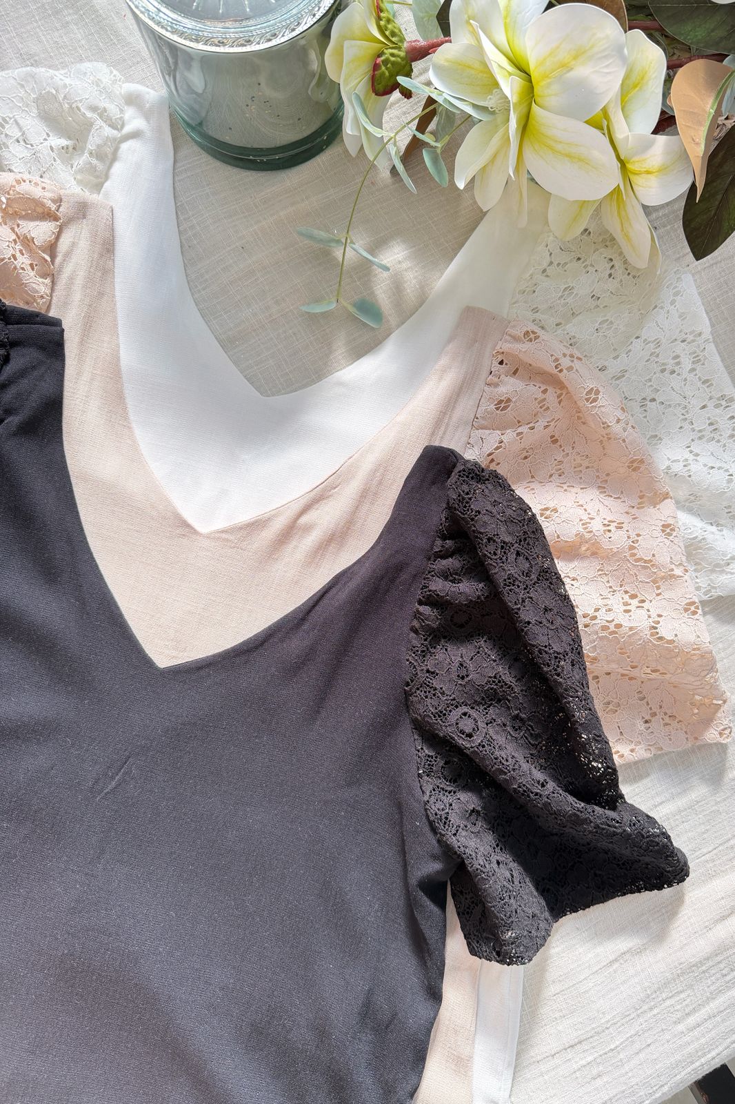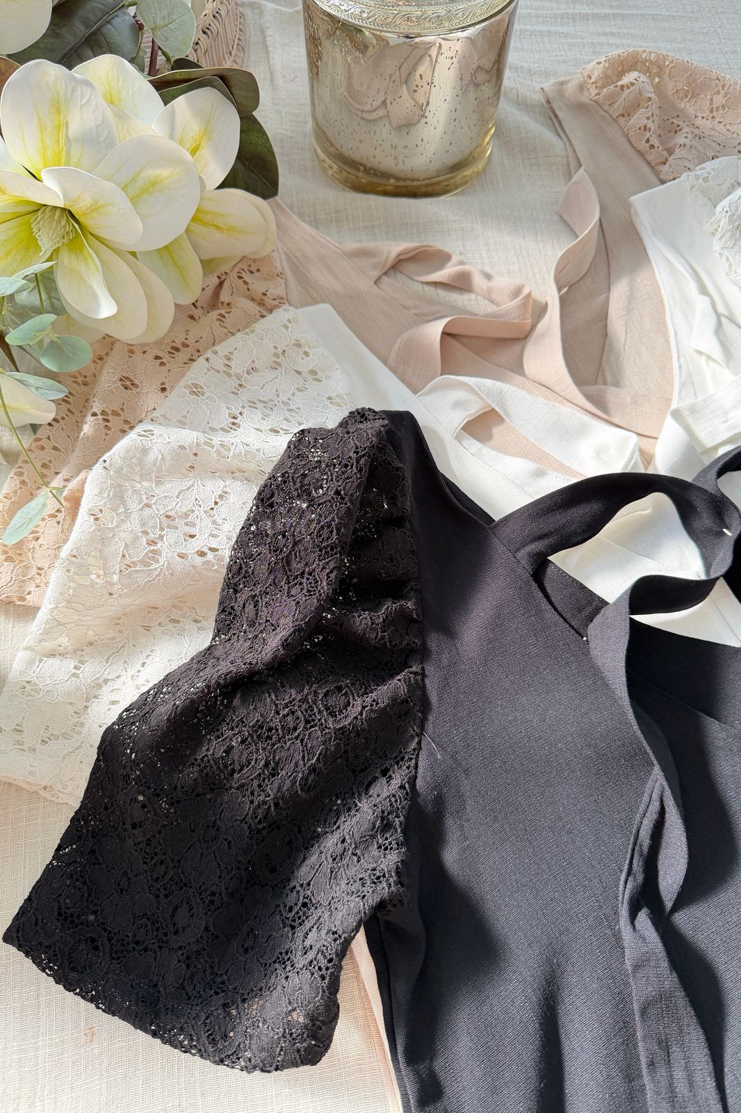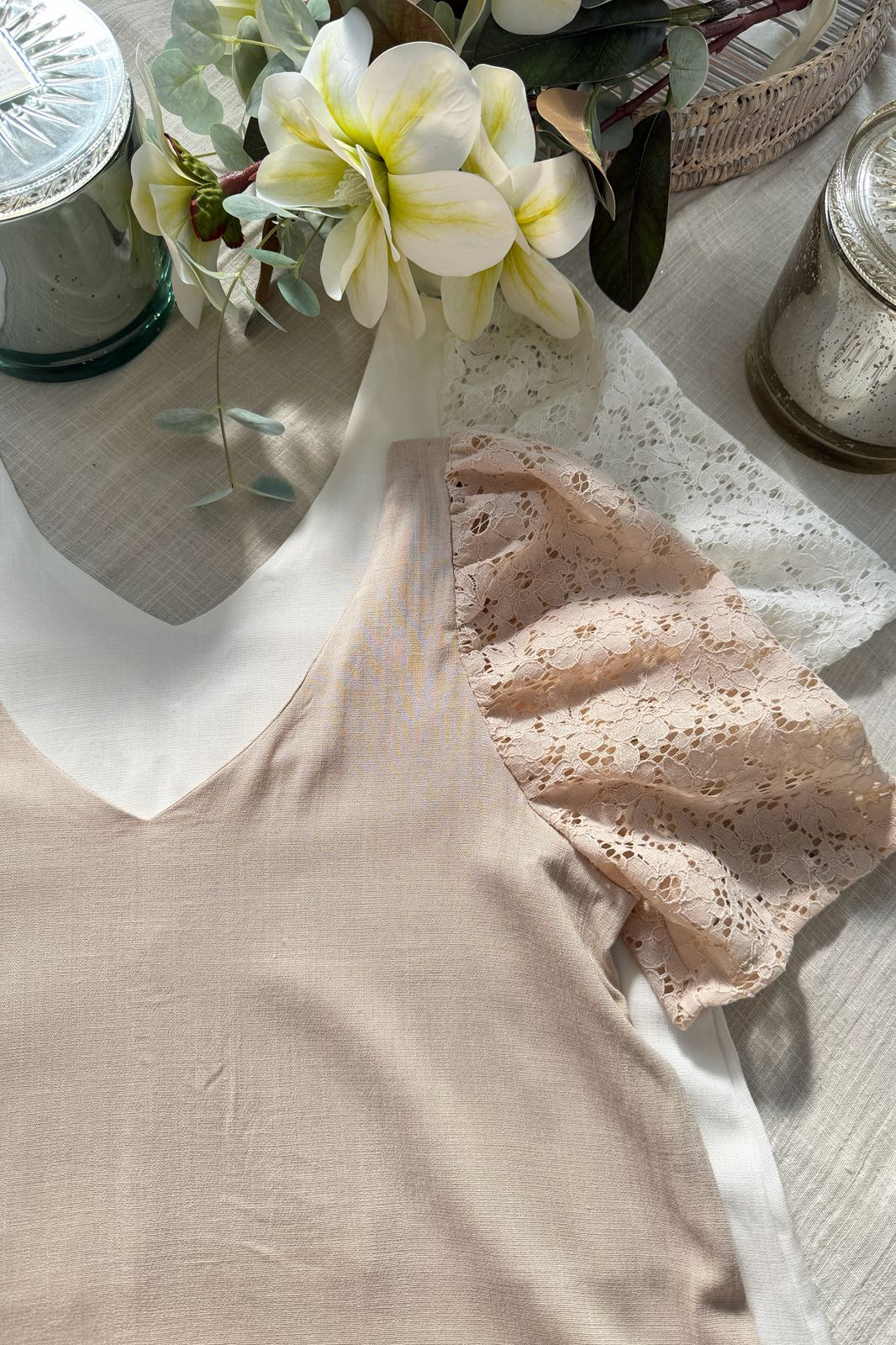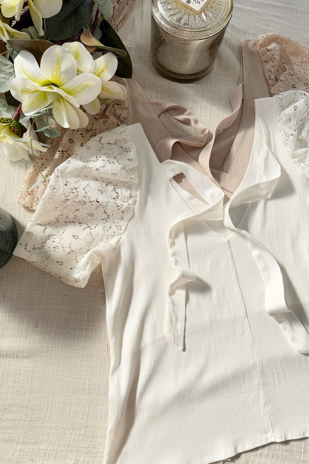 #Blusa #simil lino #manga corta #manga princesa #manga encaje #lazo para atar en espalda #TALLE UNICO