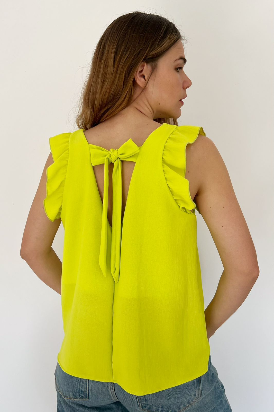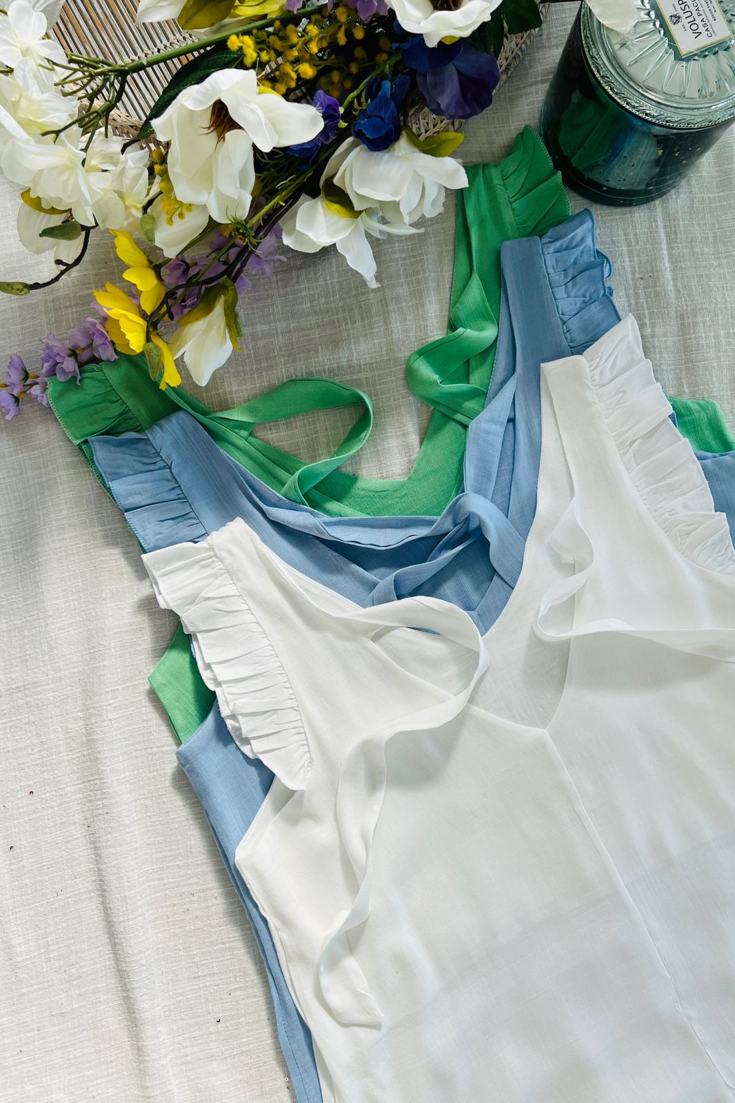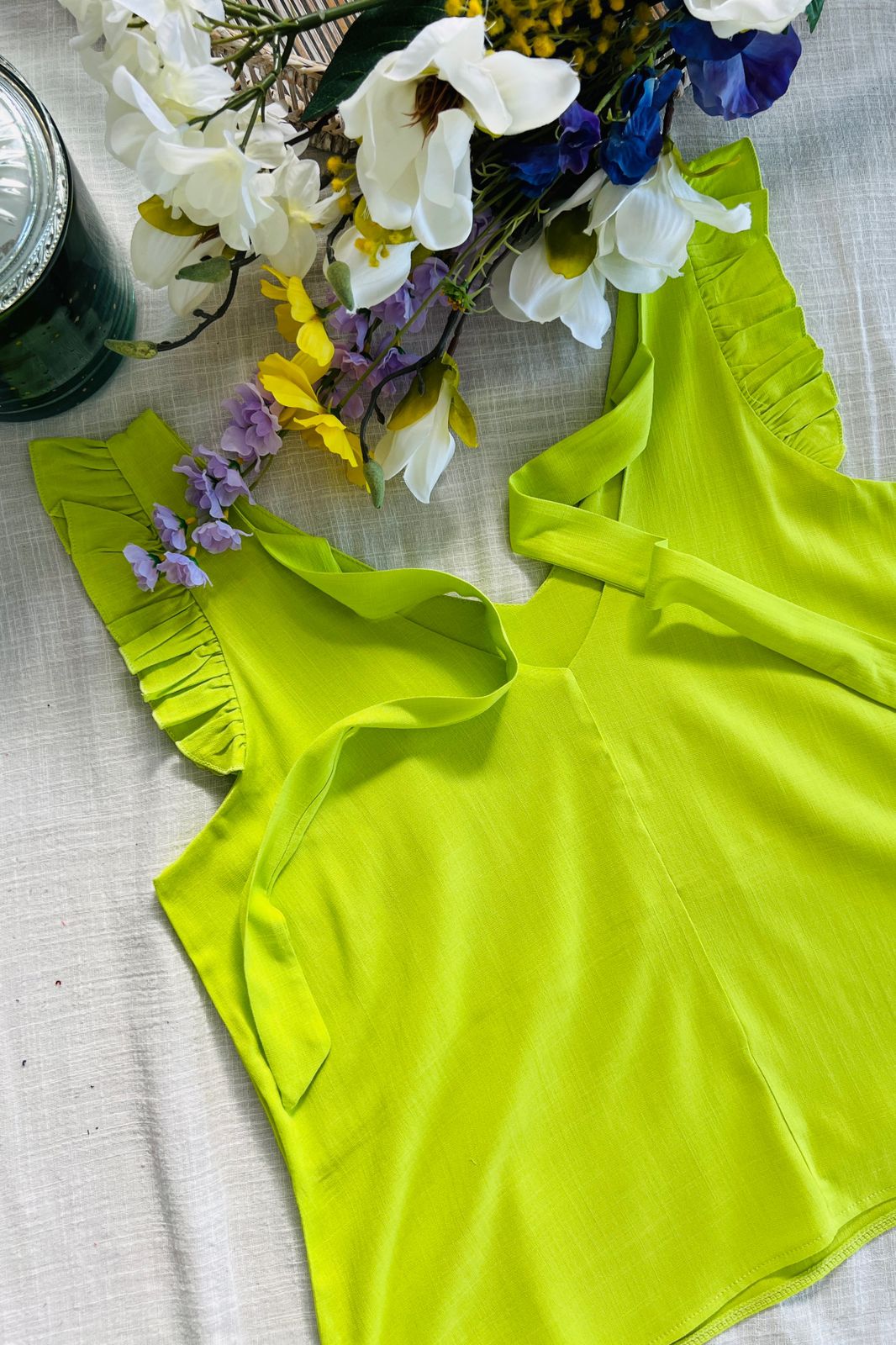 #Blusa #simil lino #escote V #voladitos #lazo para atar en espalda #TALLE UNICO #TALLE M/L (la modelo mide 170cm y es 38/40 de jean te servira de referencia)