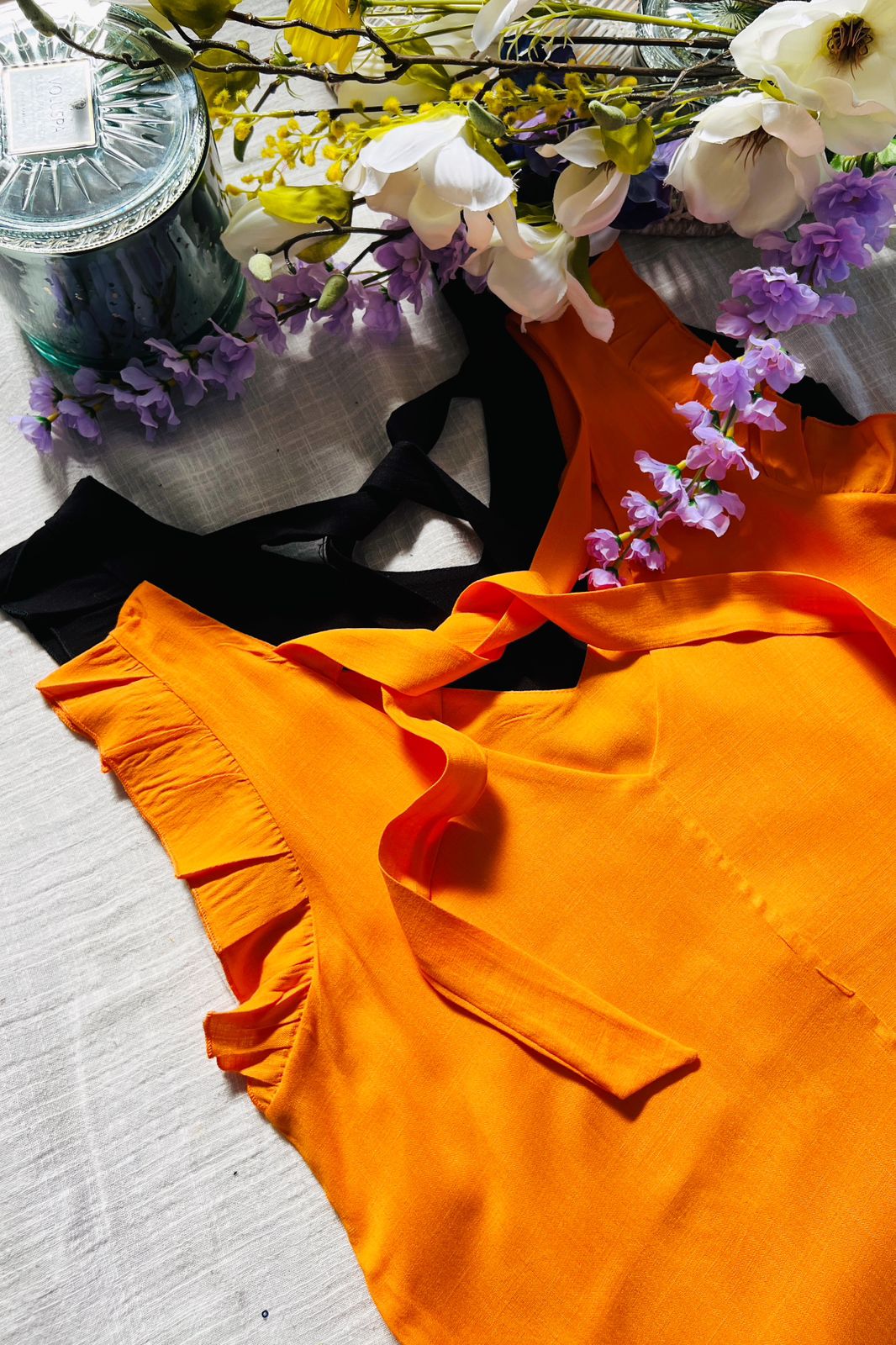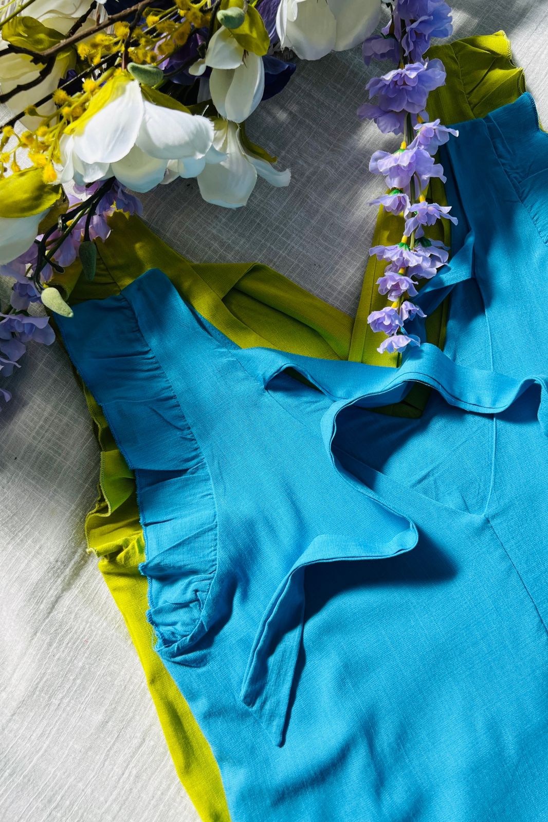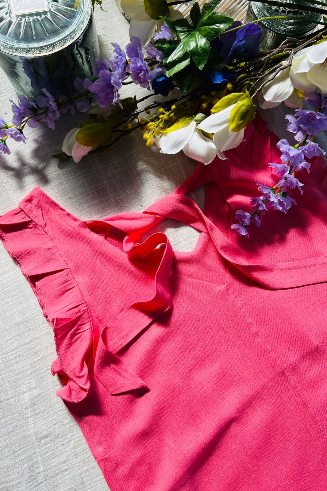 #Blusa #simil lino #escote V #voladitos #lazo para atar en espalda #TALLE UNICO #TALLE M/L (la modelo mide 170cm y es 38/40 de jean te servira de referencia)