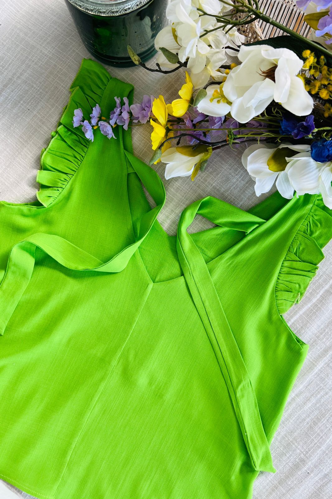 #Blusa #simil lino #voladitos de encaje al tono #escote V #tiritas para atar en la espalda #TALLE UNICO #TALLE M