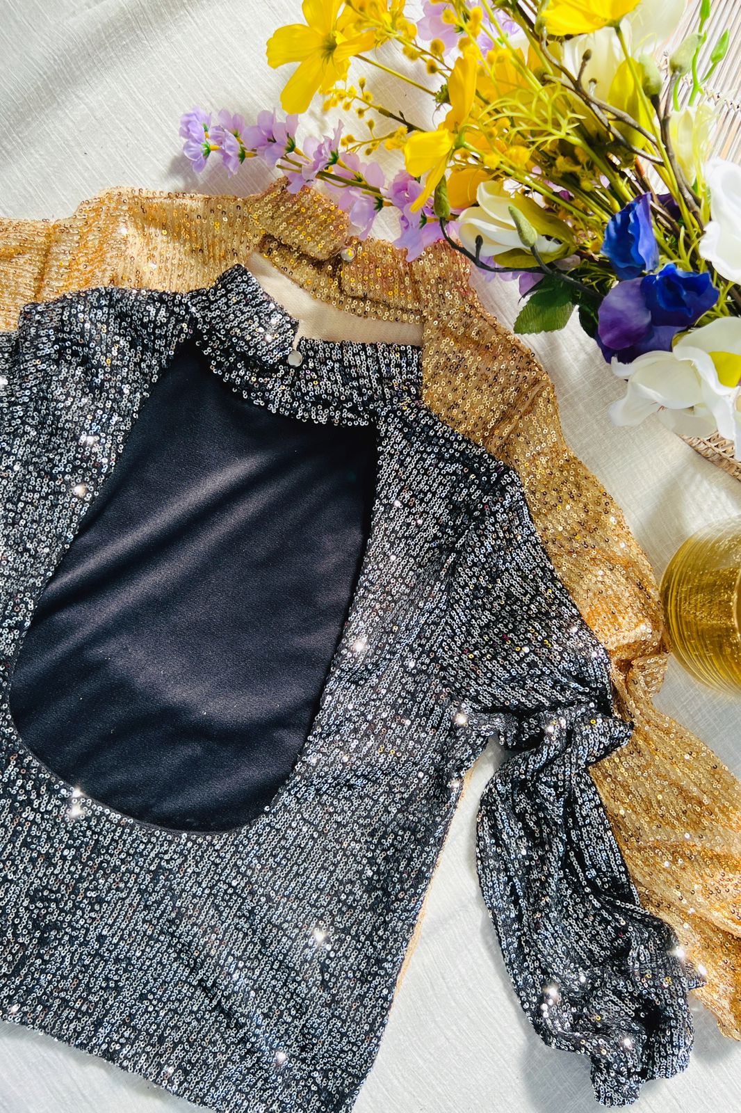 #Blusa #pailettes #sin manga #doble escote V #tiras al tono para atar en la espalda #TALLE UNICO #TALLE L