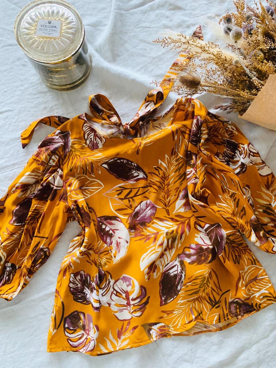 #Blusa #Manga Globo #Escote Espalda #Lazo #Voile Estampado