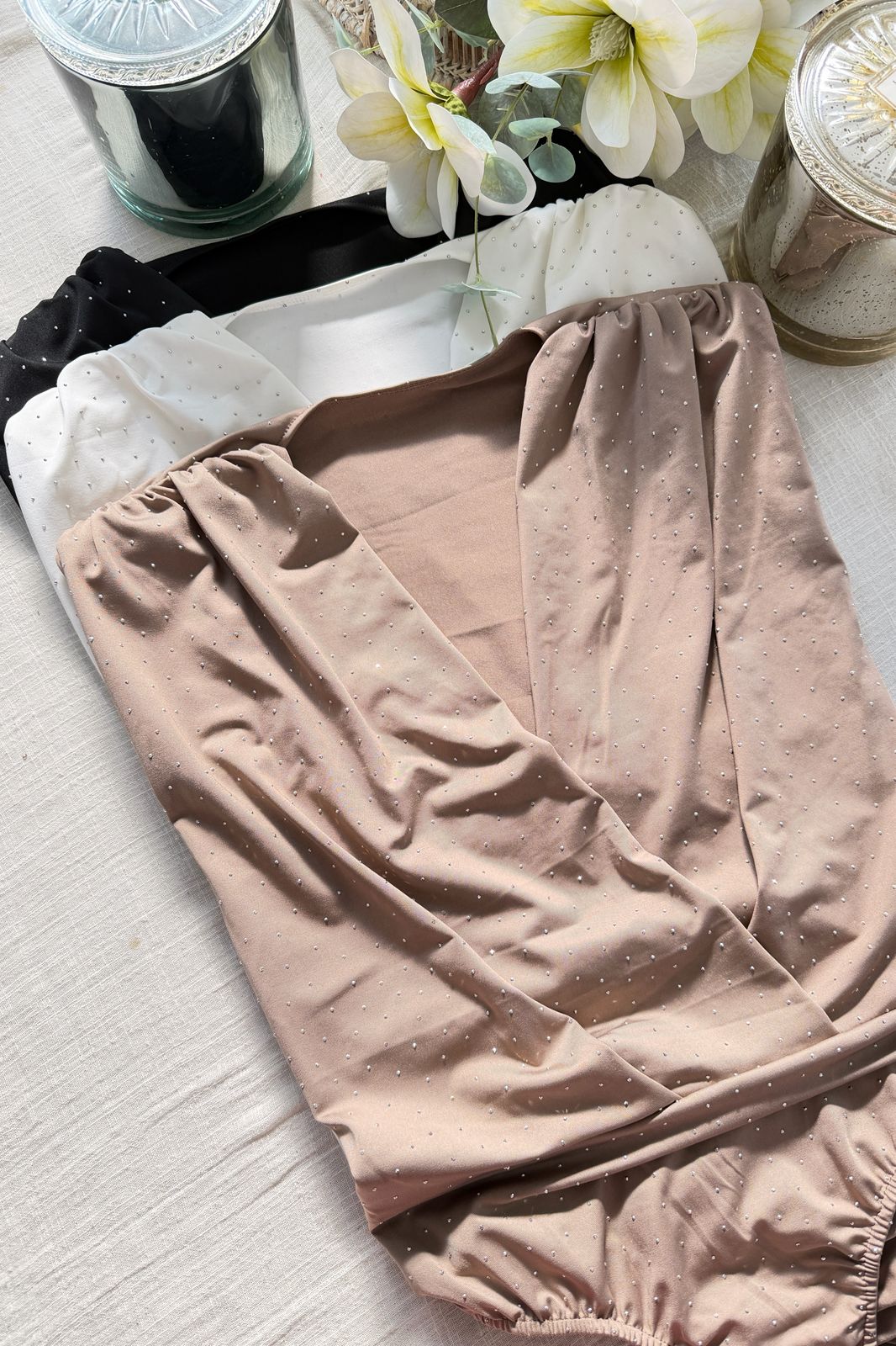 #Body #microfibra con hotfix #cruzado adelante #hombreras #sin manga #TALLE UNICO