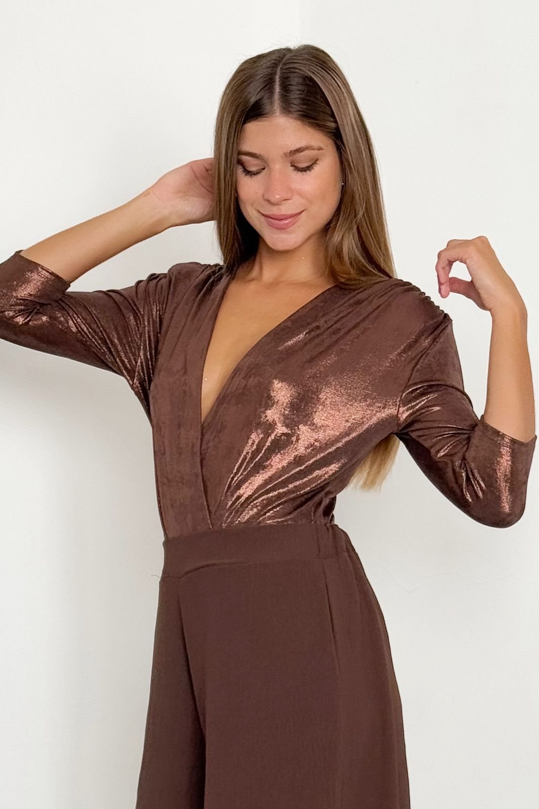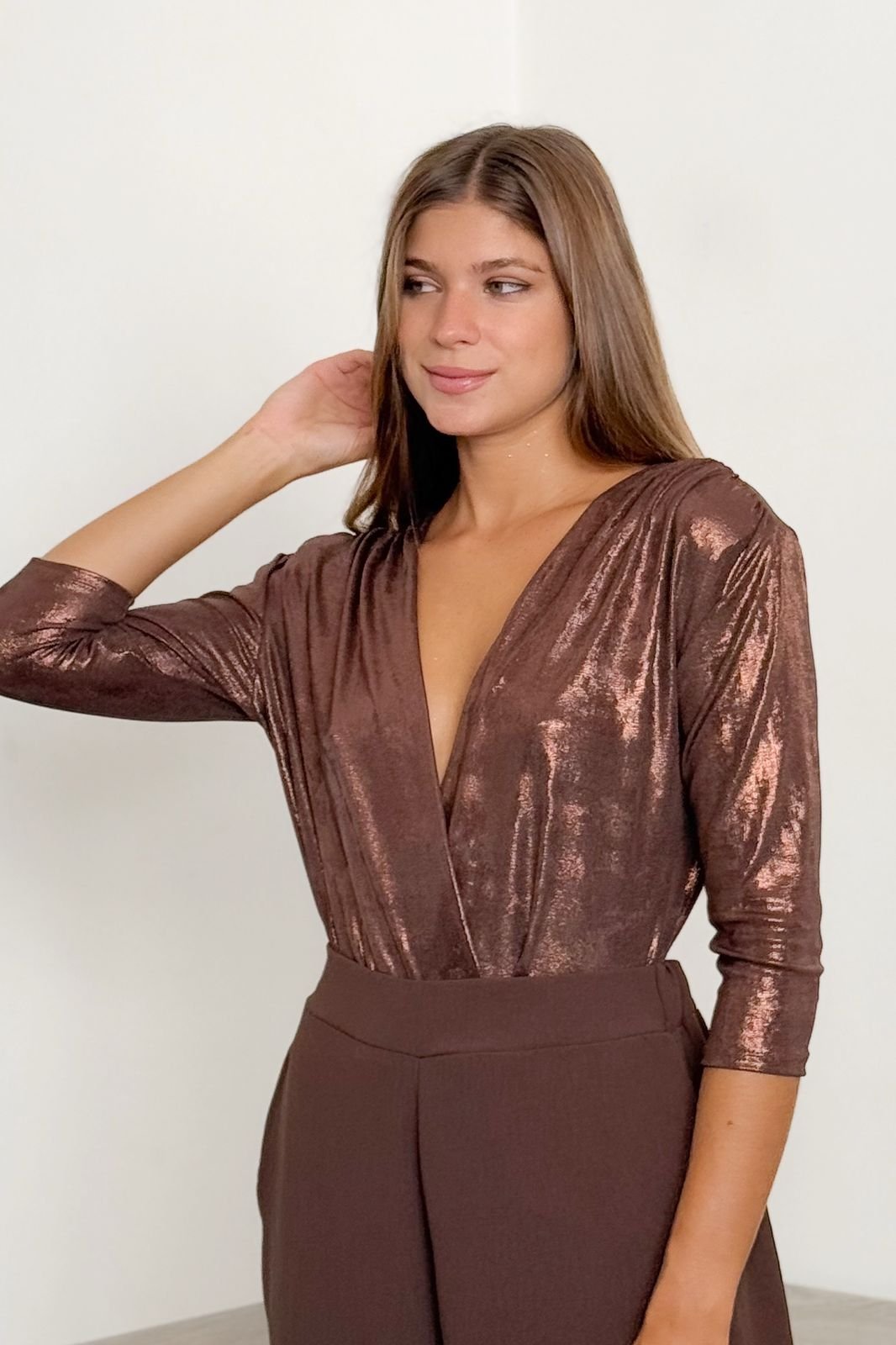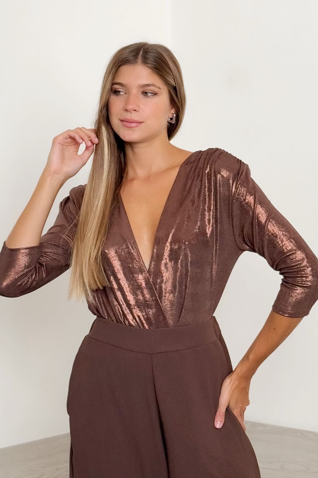 #body #skinny foil #cruzado adelante #apertura con ganchitos en bombacha #hombreras #manga 3/4 #TALLE UNICO