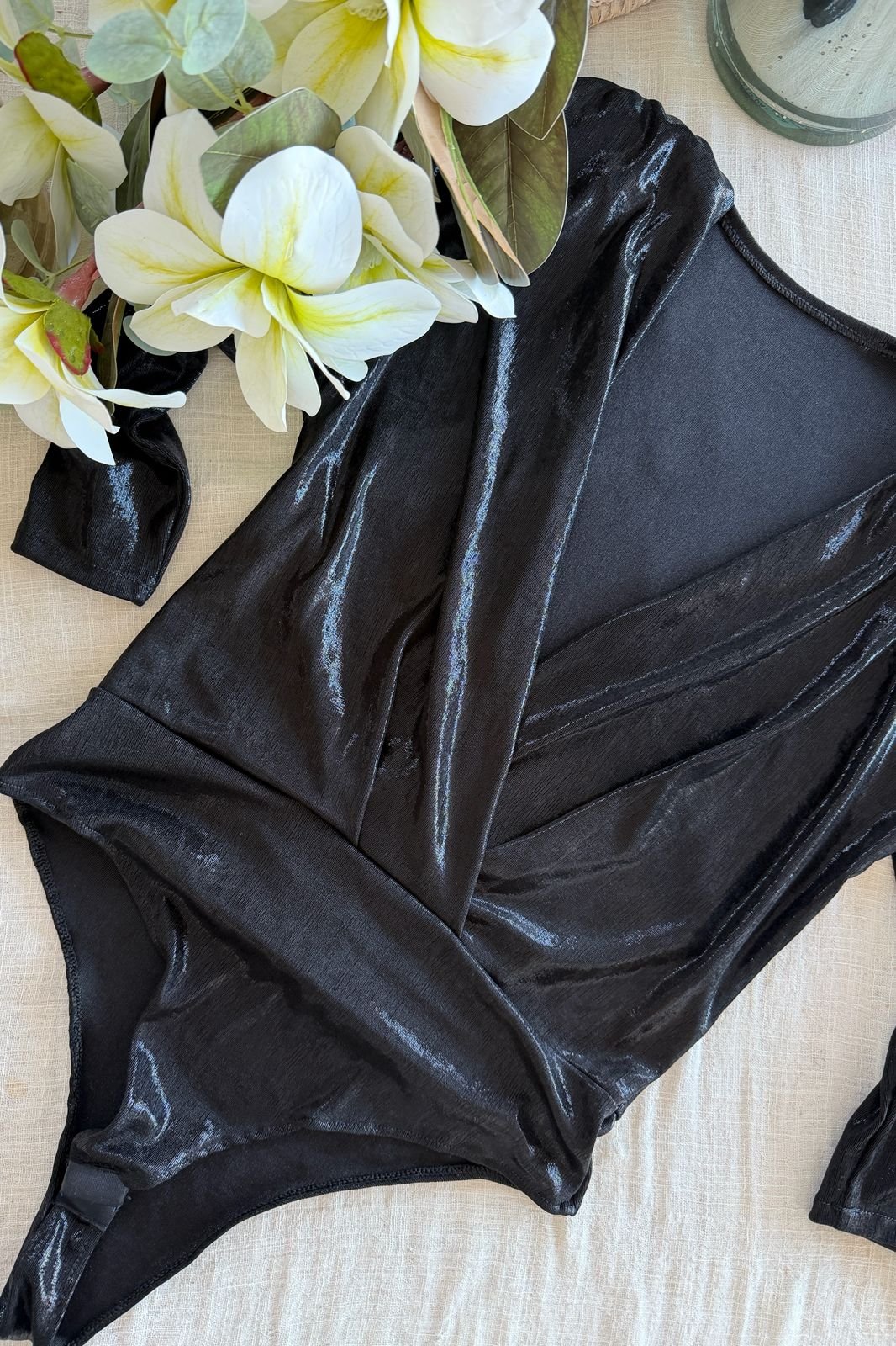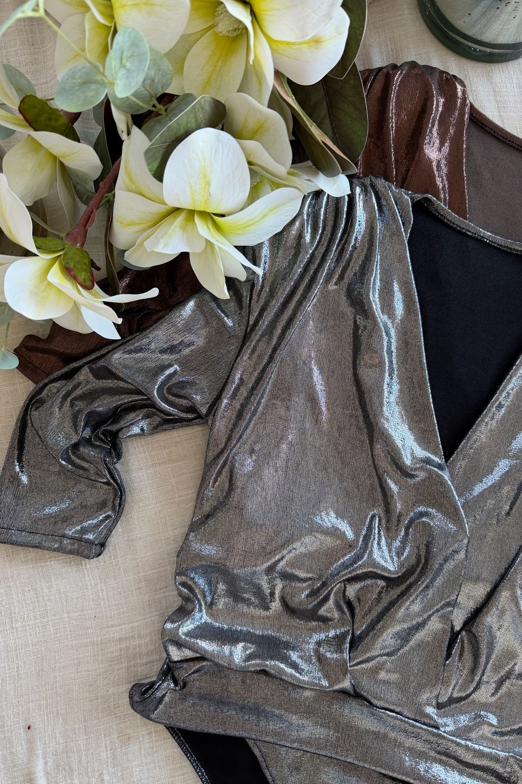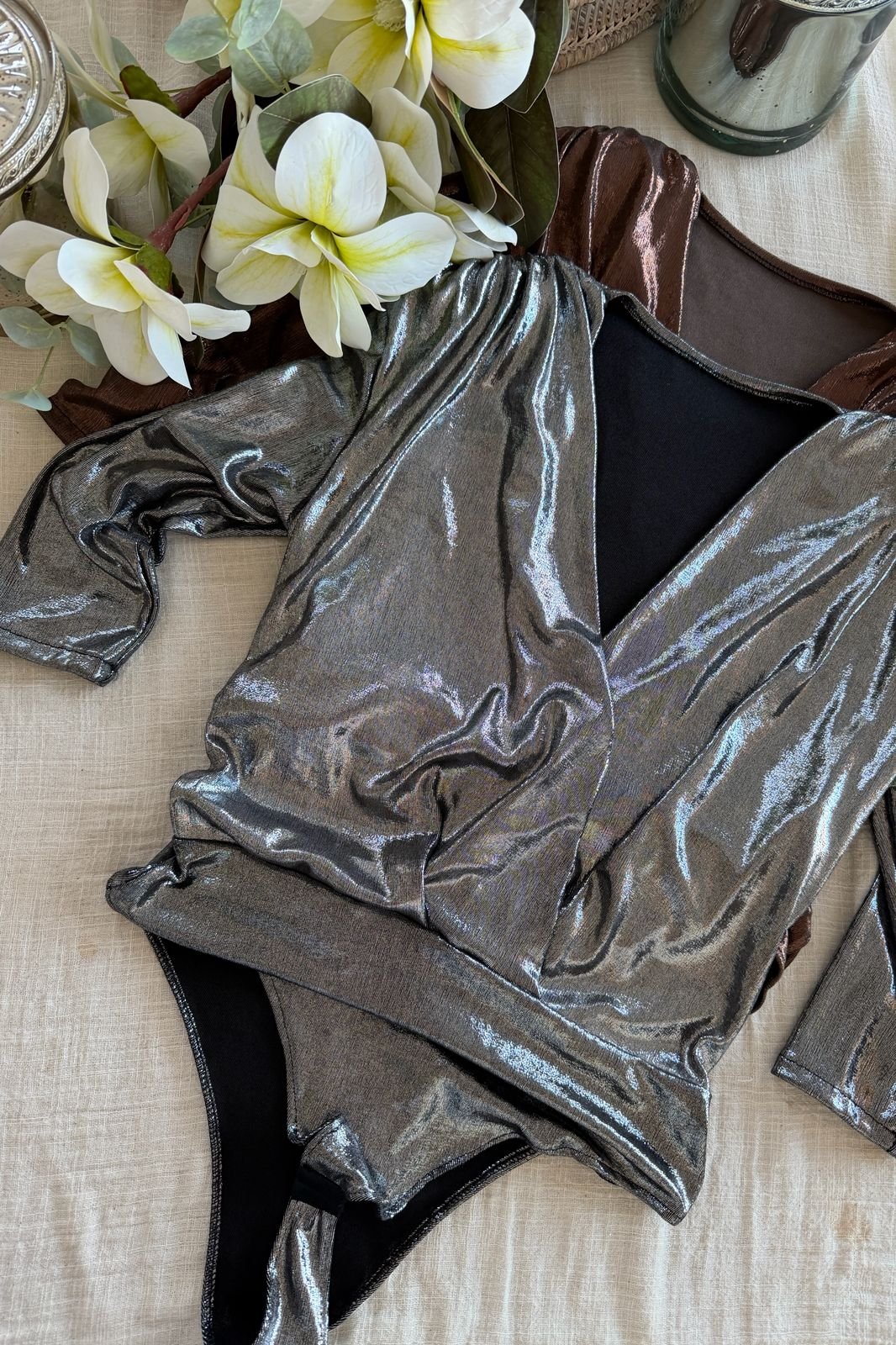 #Body #microfibra glitter #apertura en bombacha #cruzado adelante #con hombrera #manga 3/4 #TALLE UNICO