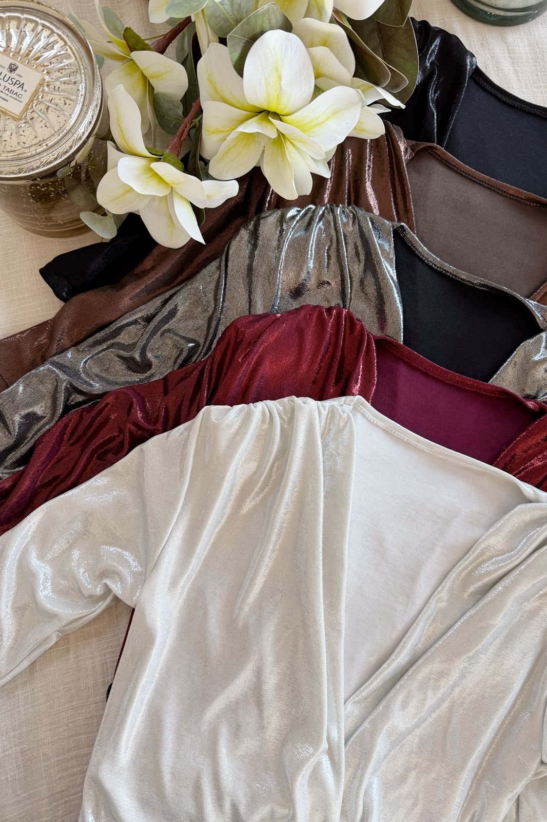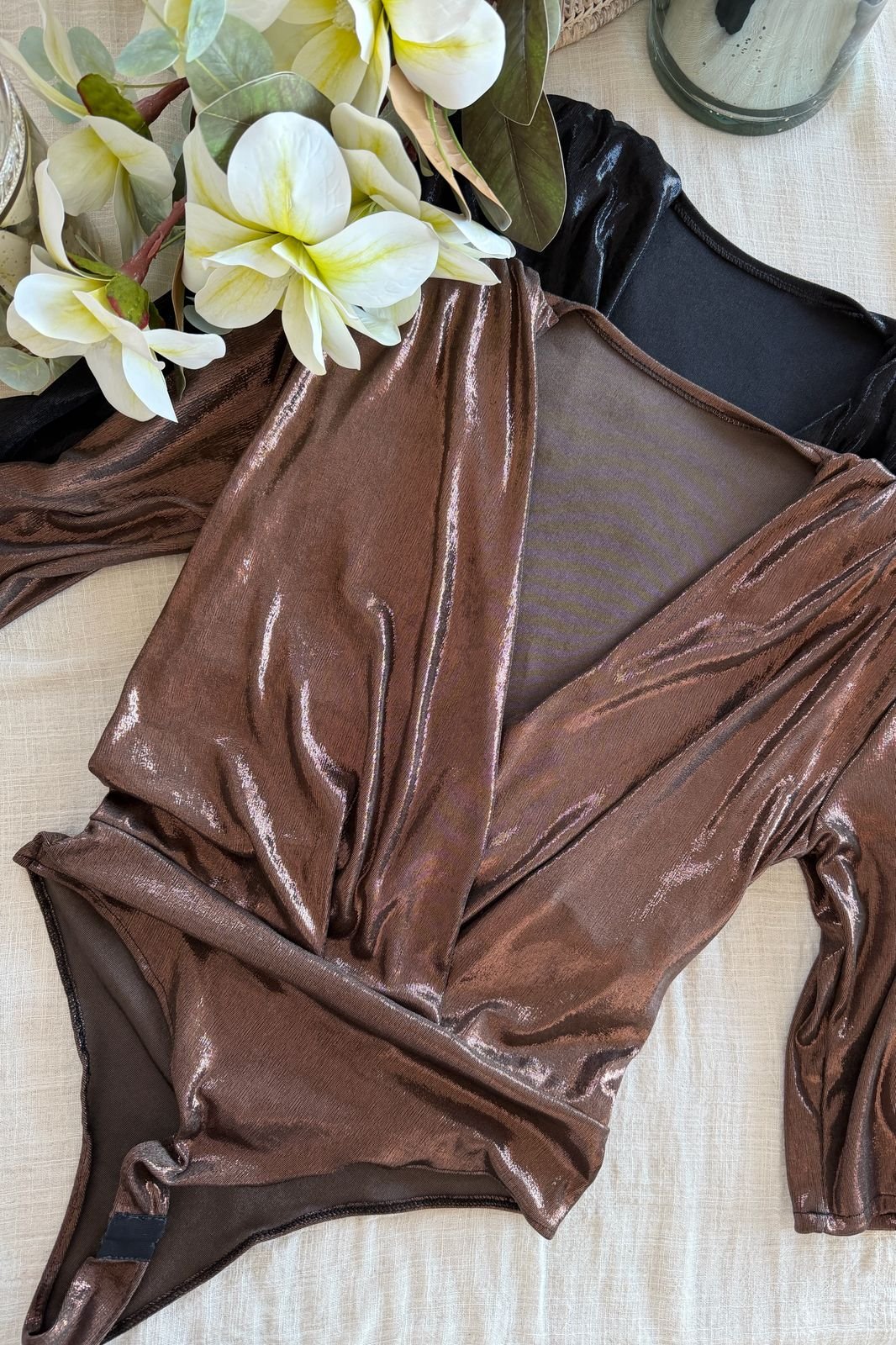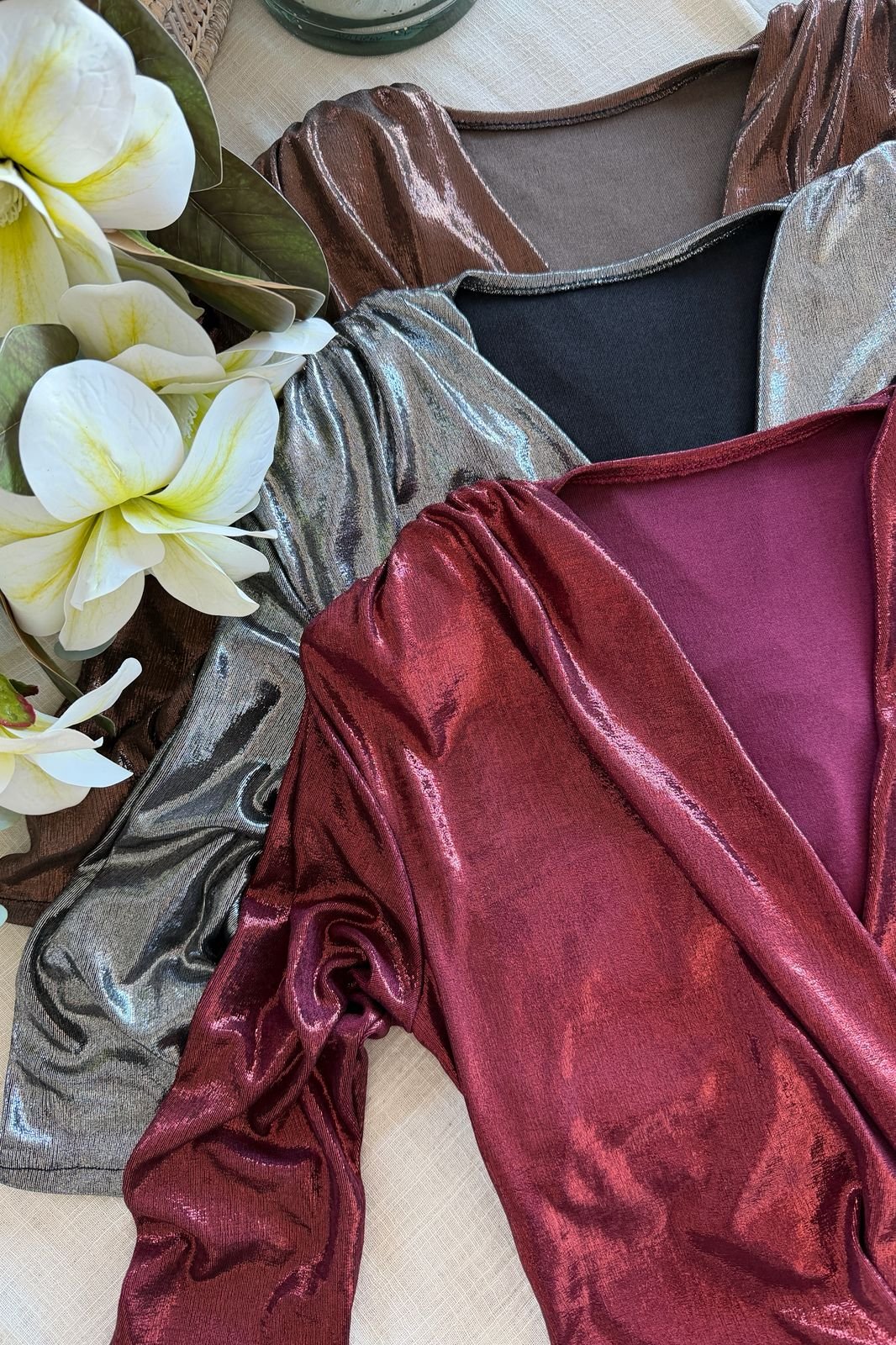 #Body #microfibra glitter #apertura en bombacha #cruzado adelante #con hombrera #manga 3/4 #TALLE UNICO