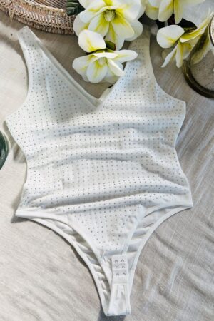 #Body #microfibra con hotfix #cruzado adelante #hombreras #sin manga #TALLE UNICO