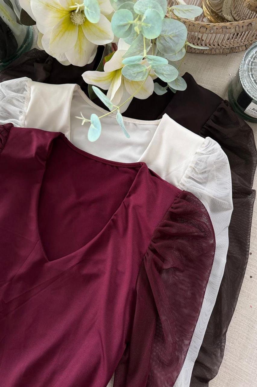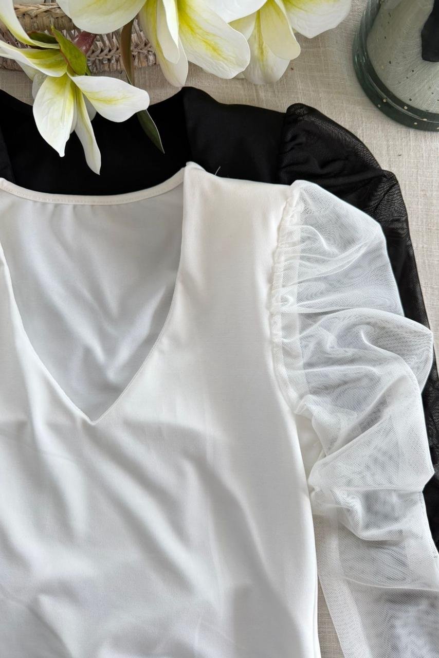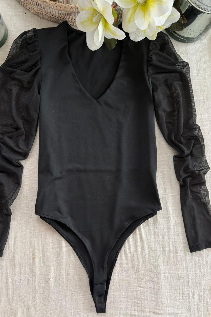 #Body #microfibra #escote V #manga larga #manga princesa #manga tul al tono #apertura en gancho en bombacha #TALLE UNICO