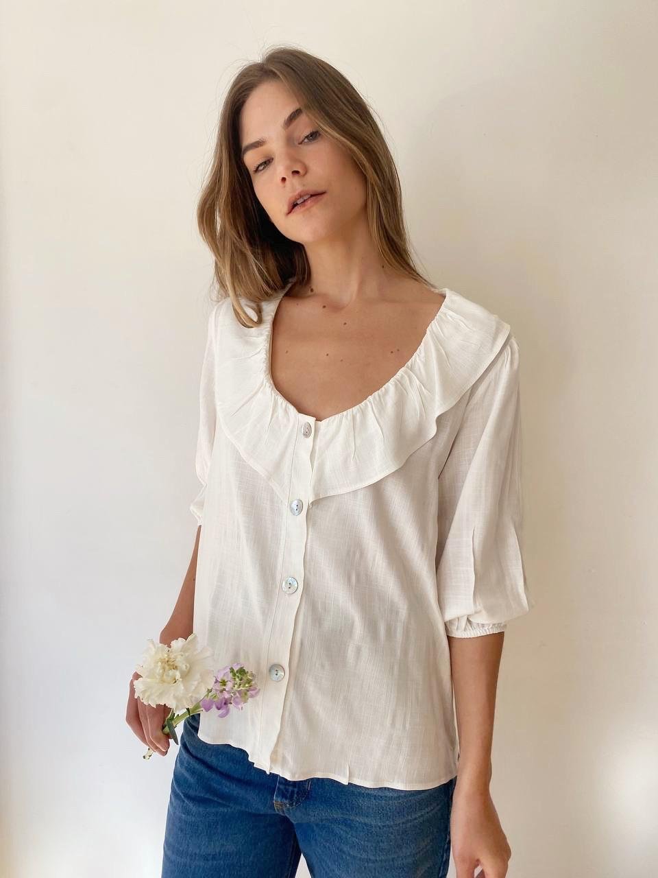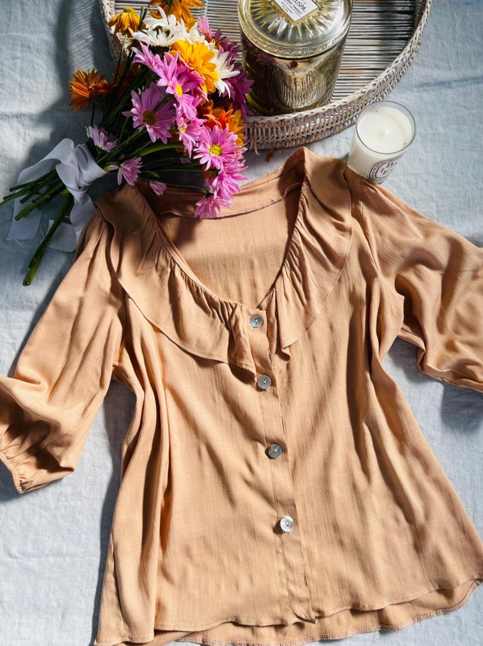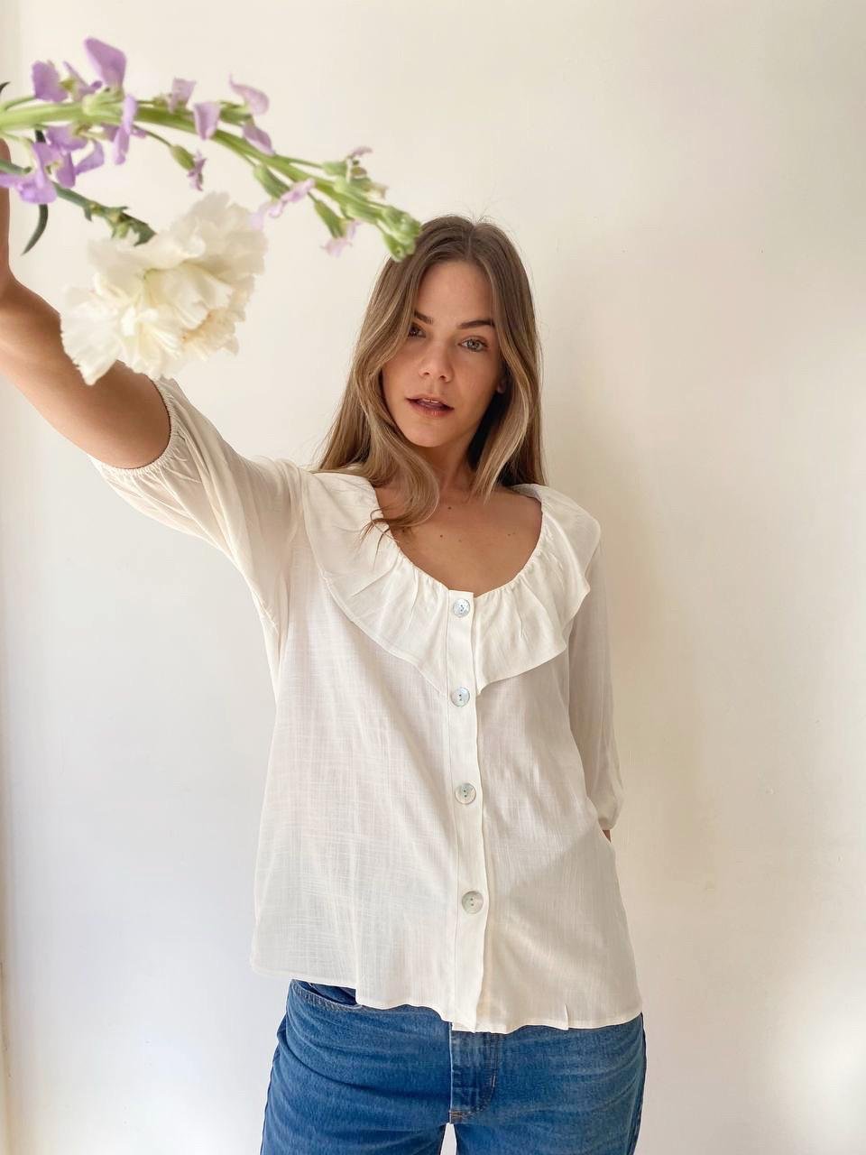 #Camisa #Cuello Volado #Lino Elastizado #TALLE UNICO