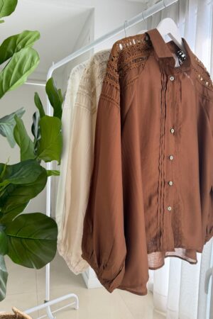 #Camisa #detalle aplique broderie en hombros #manga globo #fit amplio #alforzas en delantero #TALLE UNICO