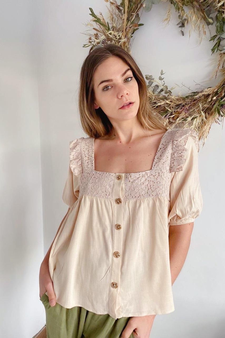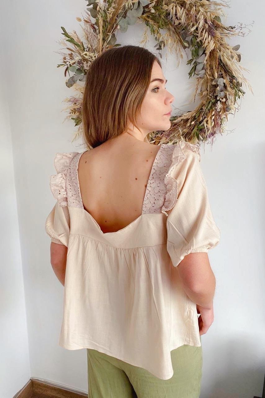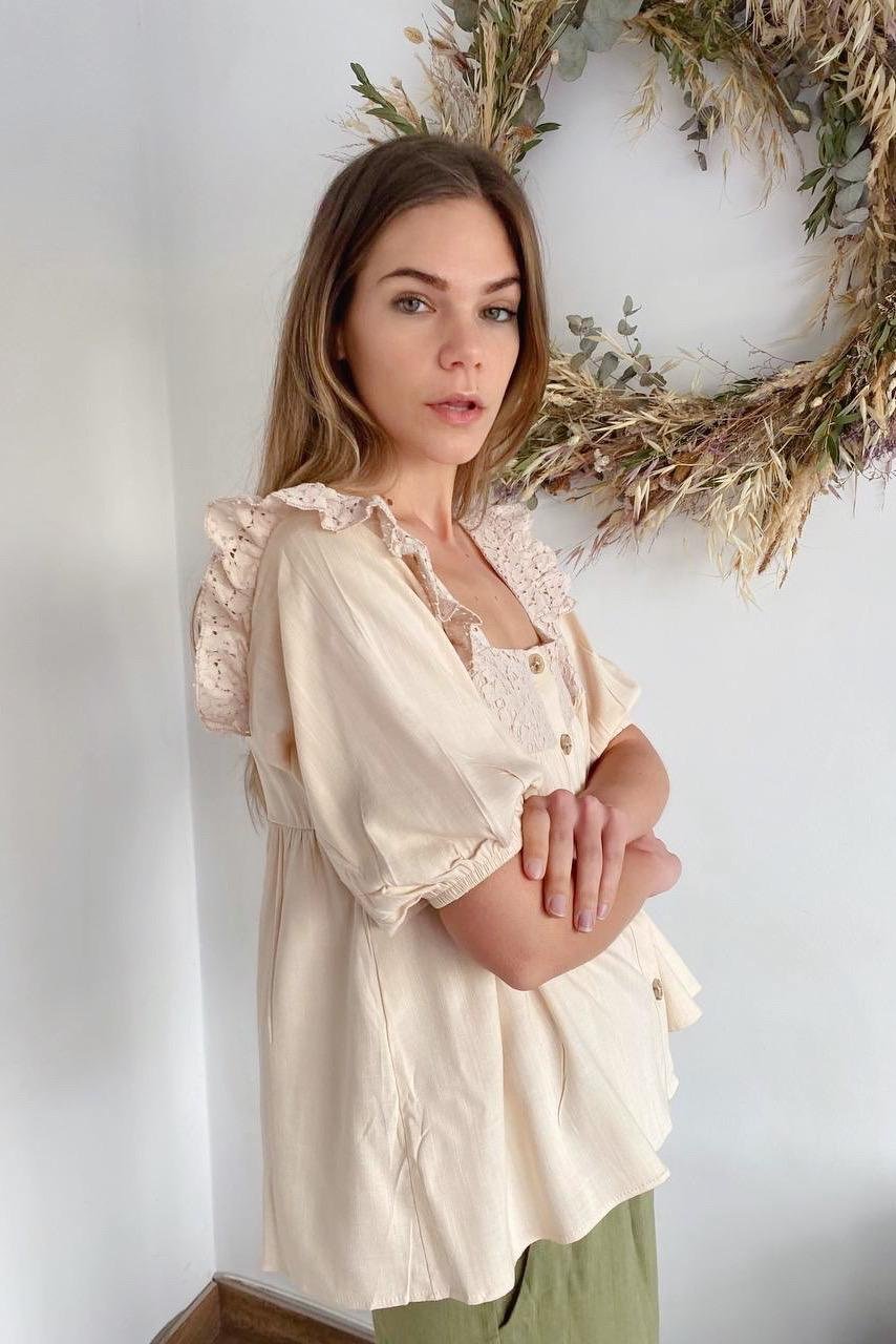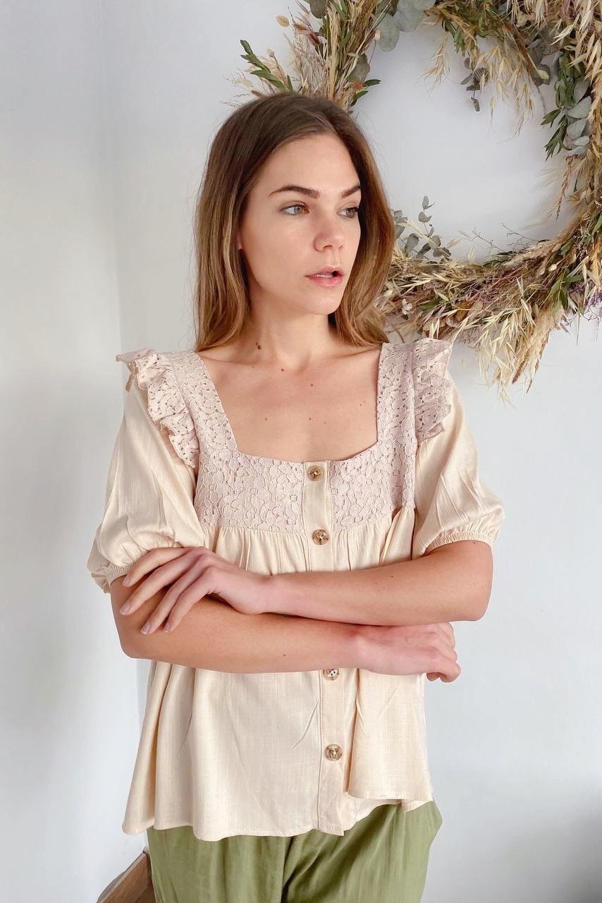 #Blusa #simil lino #doble voladitos #detalle en encaje #manga 3/4 #TALLE UNICO