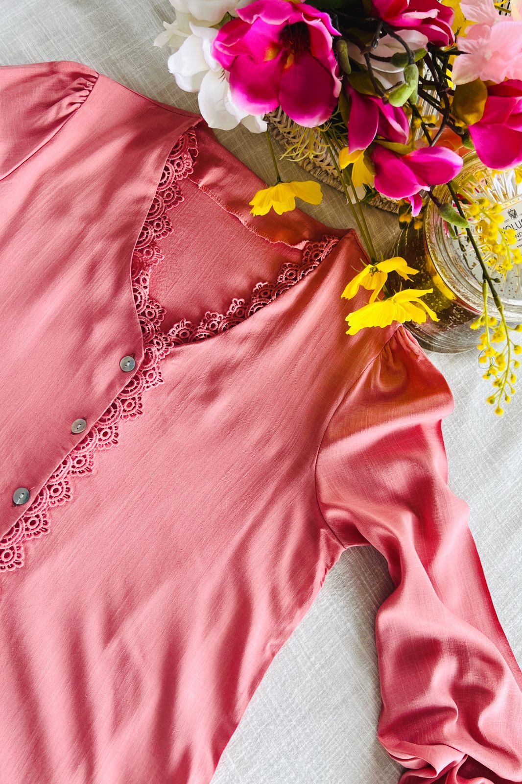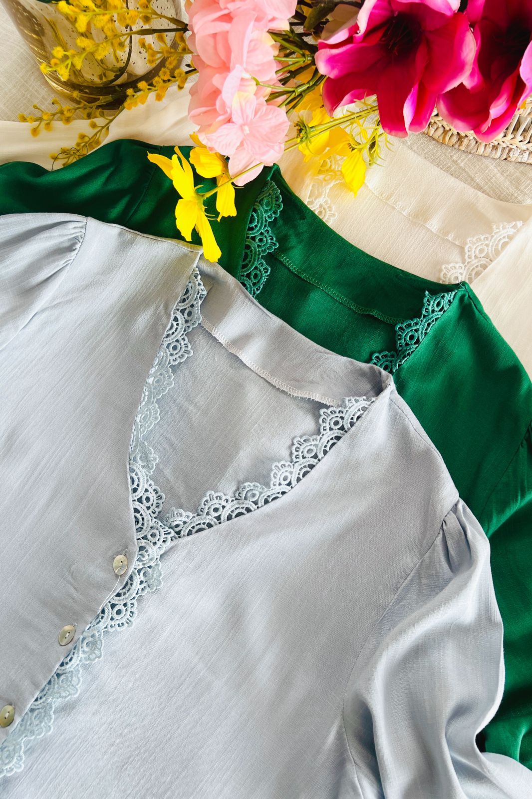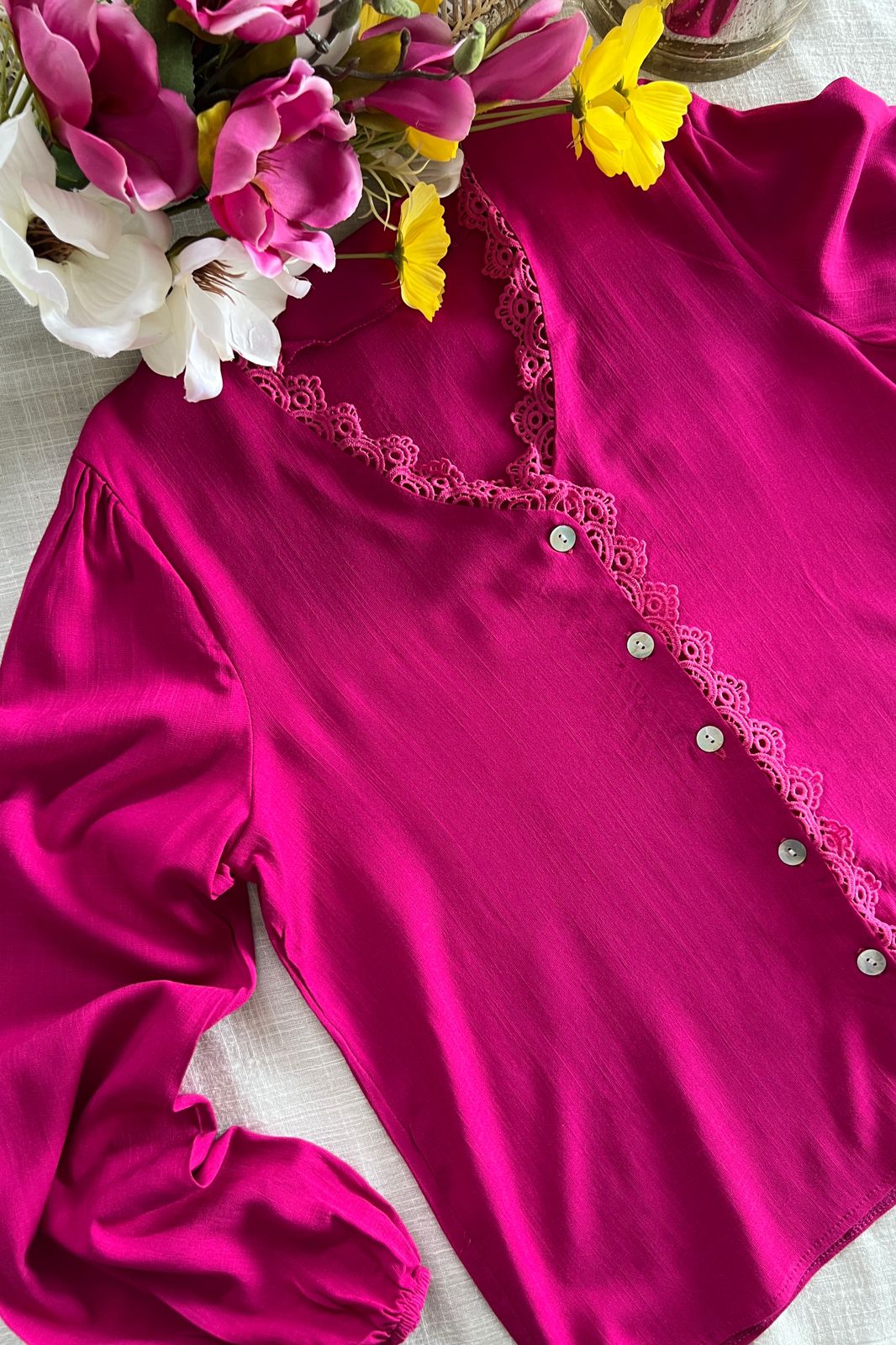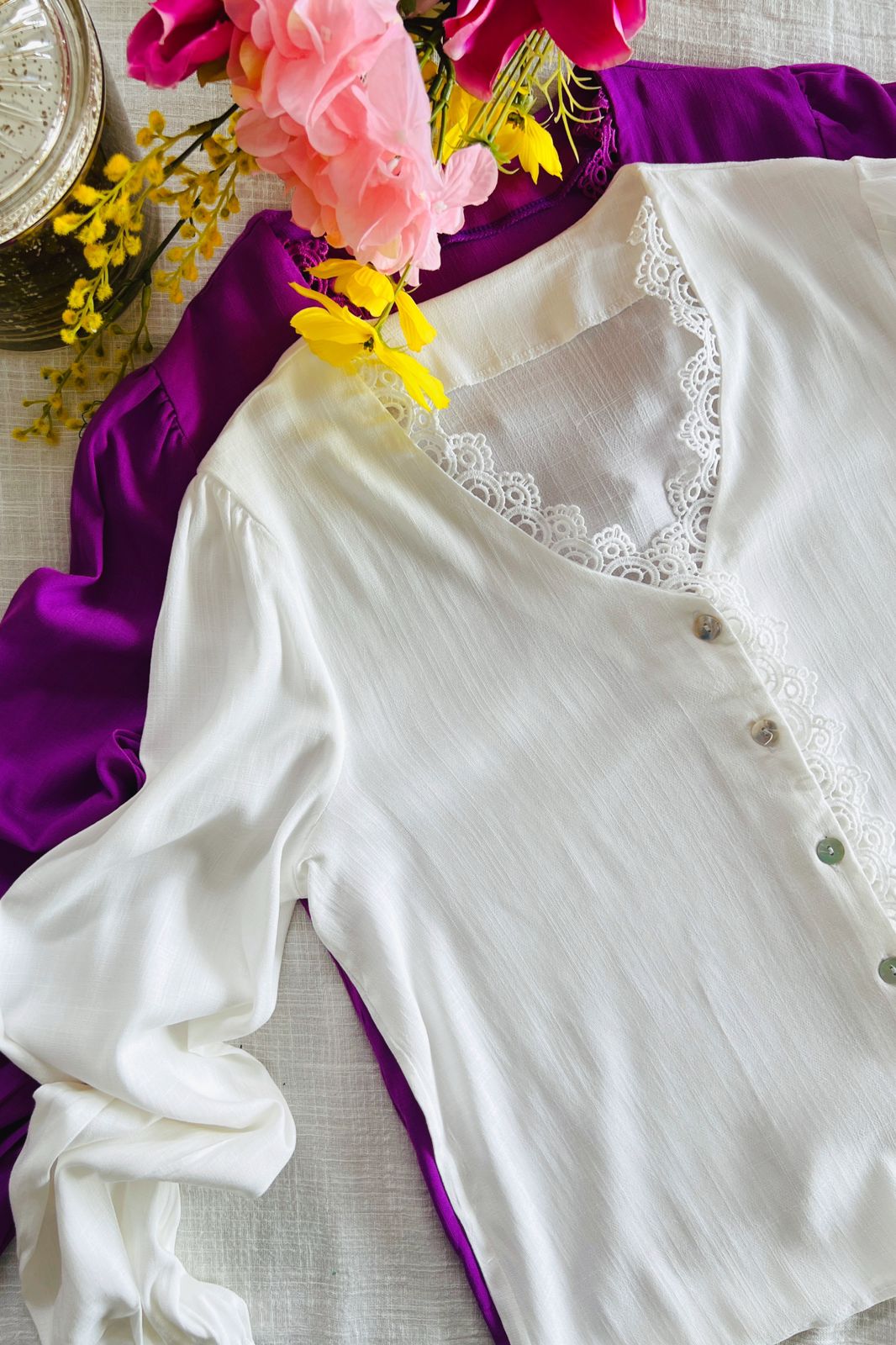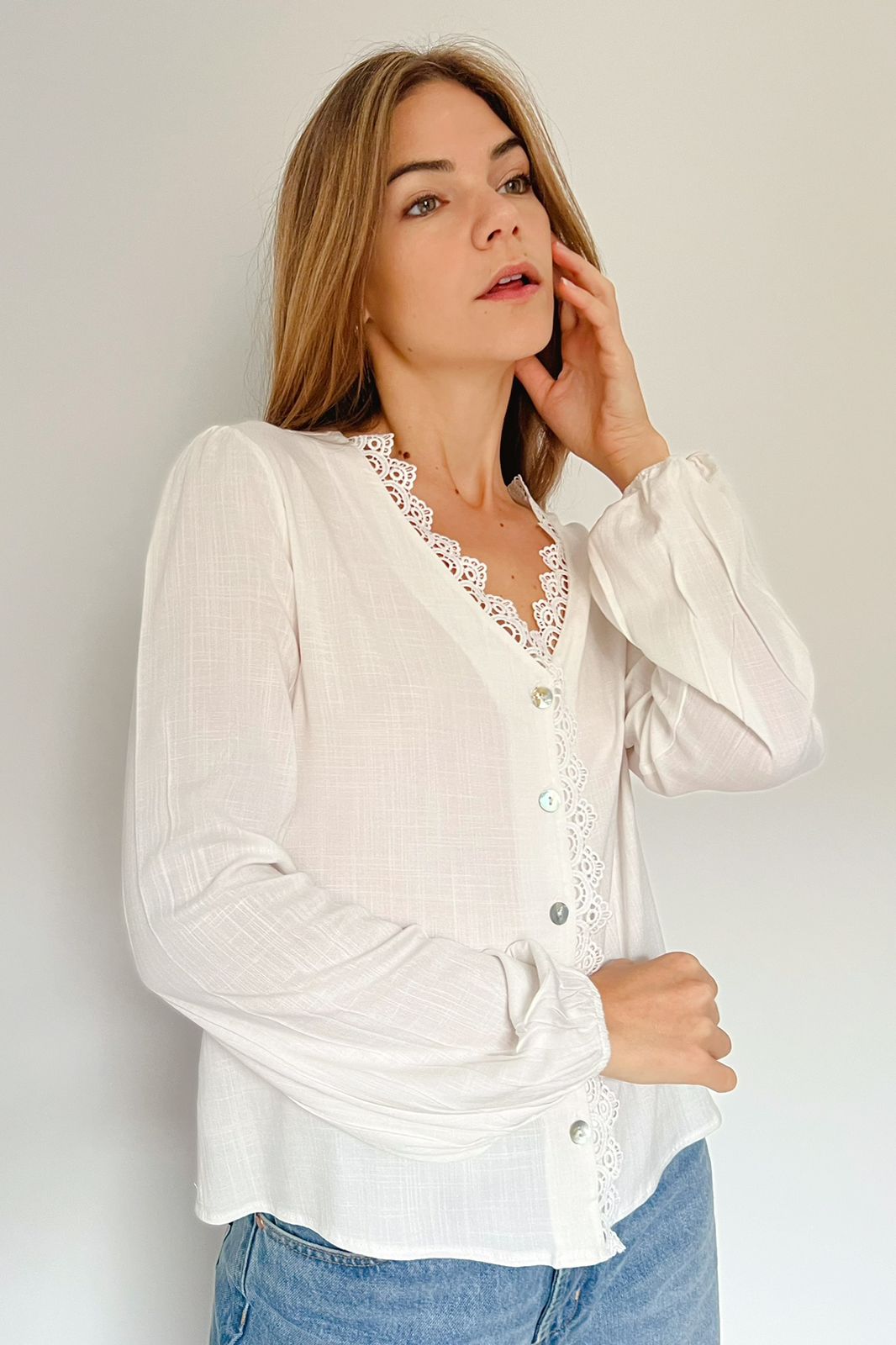#Blusa #simil lino #detalle en encaje al tono #TALLE UNICO #TALLE M