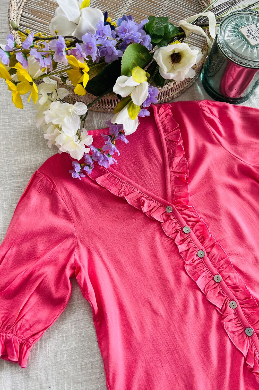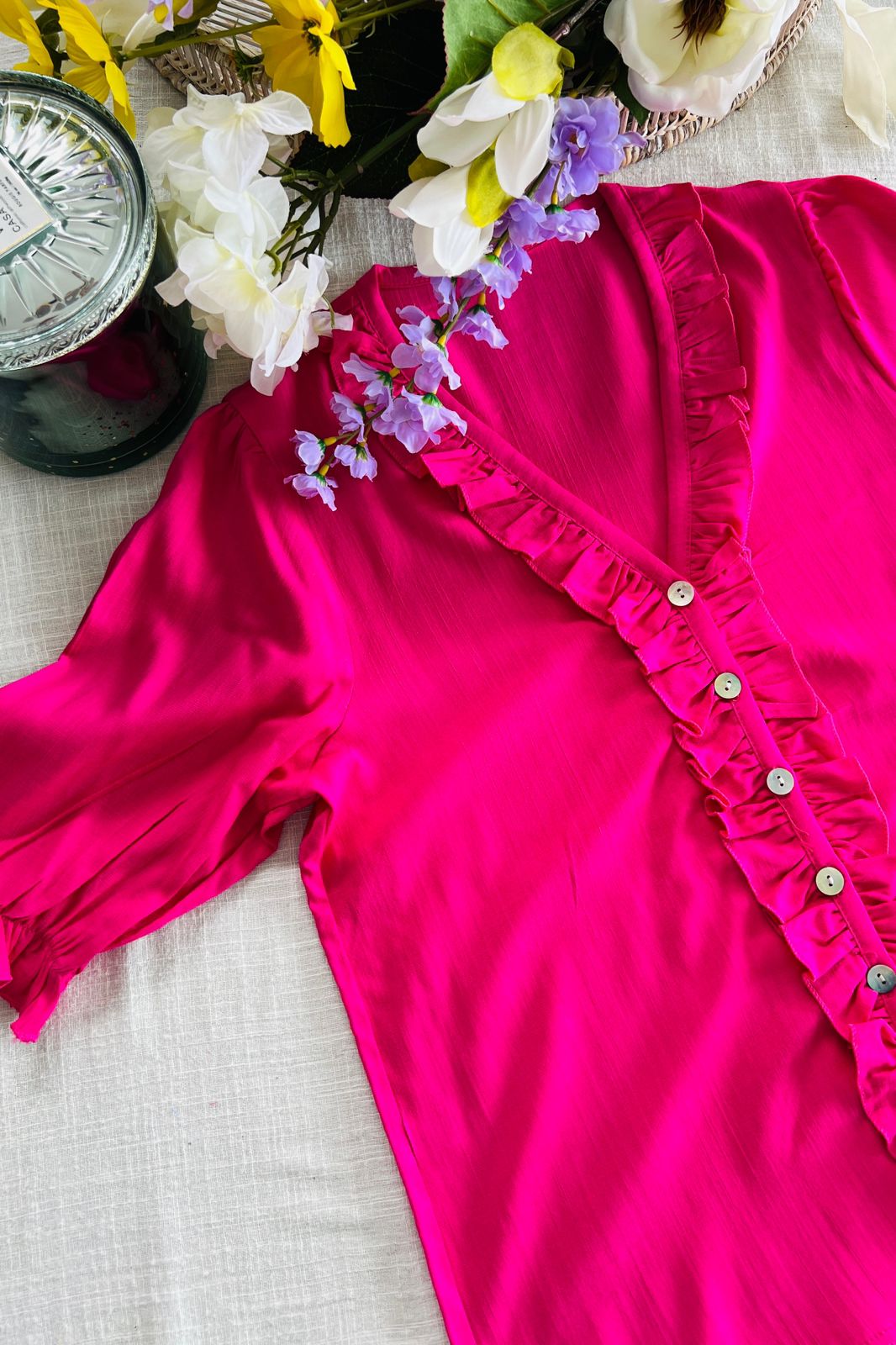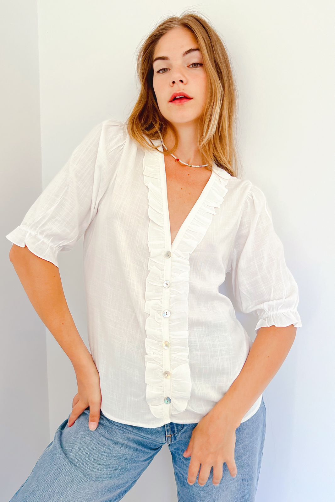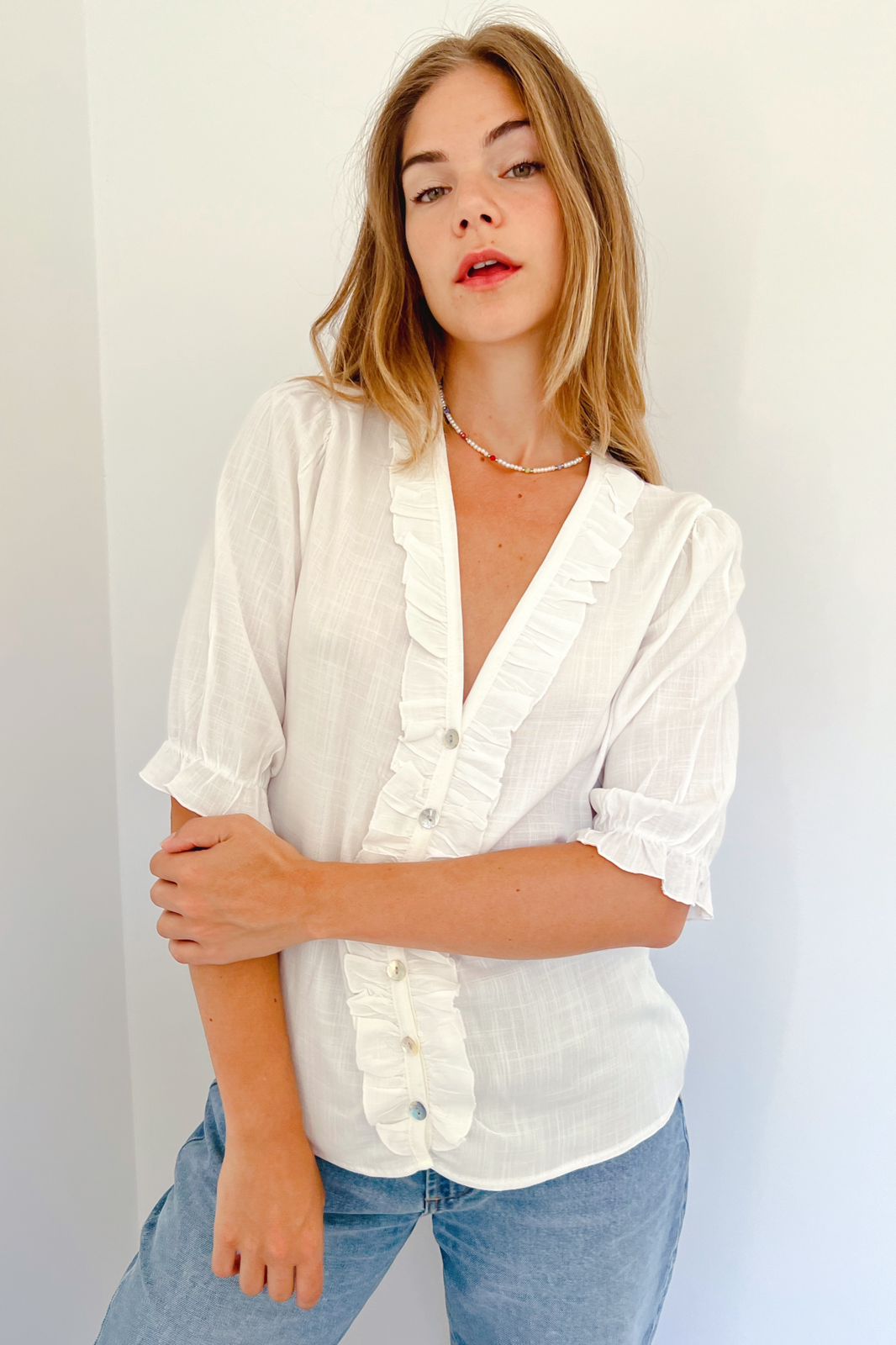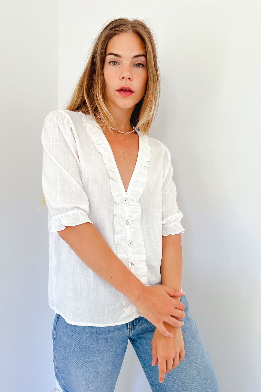 #Camisa #Manga Corta #Voladitos #simil lino #TALLE UNICO #TALLE L (la modelo mide 170cm y es 38 de jean, te servira de rerencia)