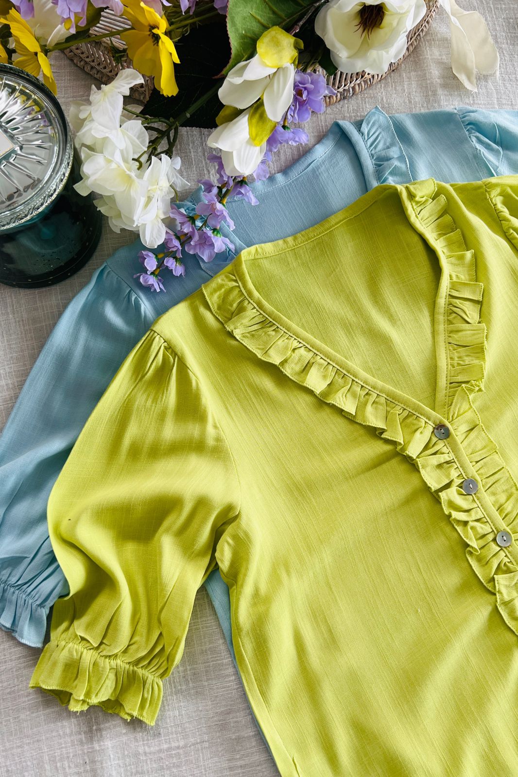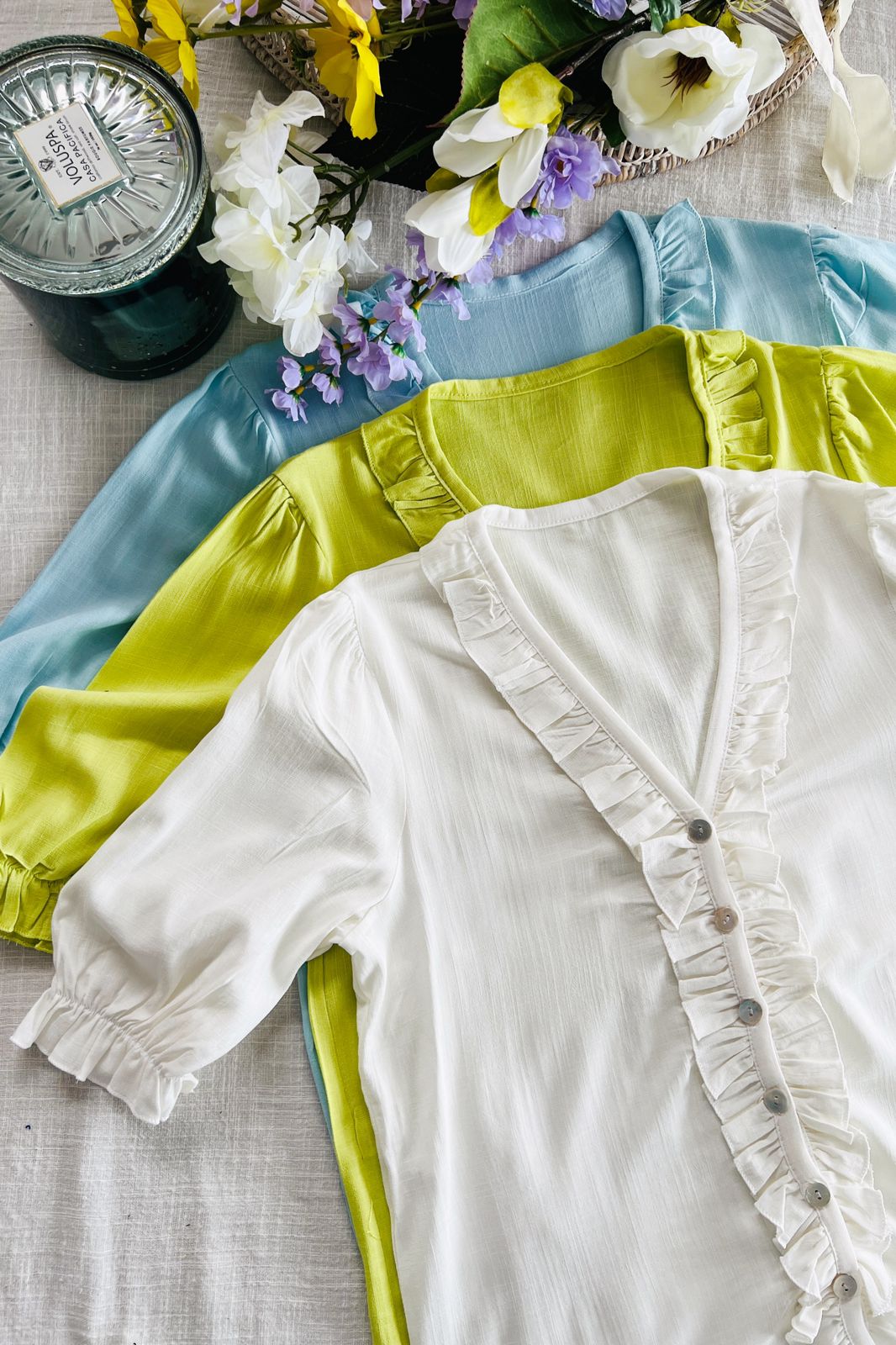 #blusa #simil lino #voladitos en encaje al tono #esplada partida #cruazo en delantera #TALLE UNICO