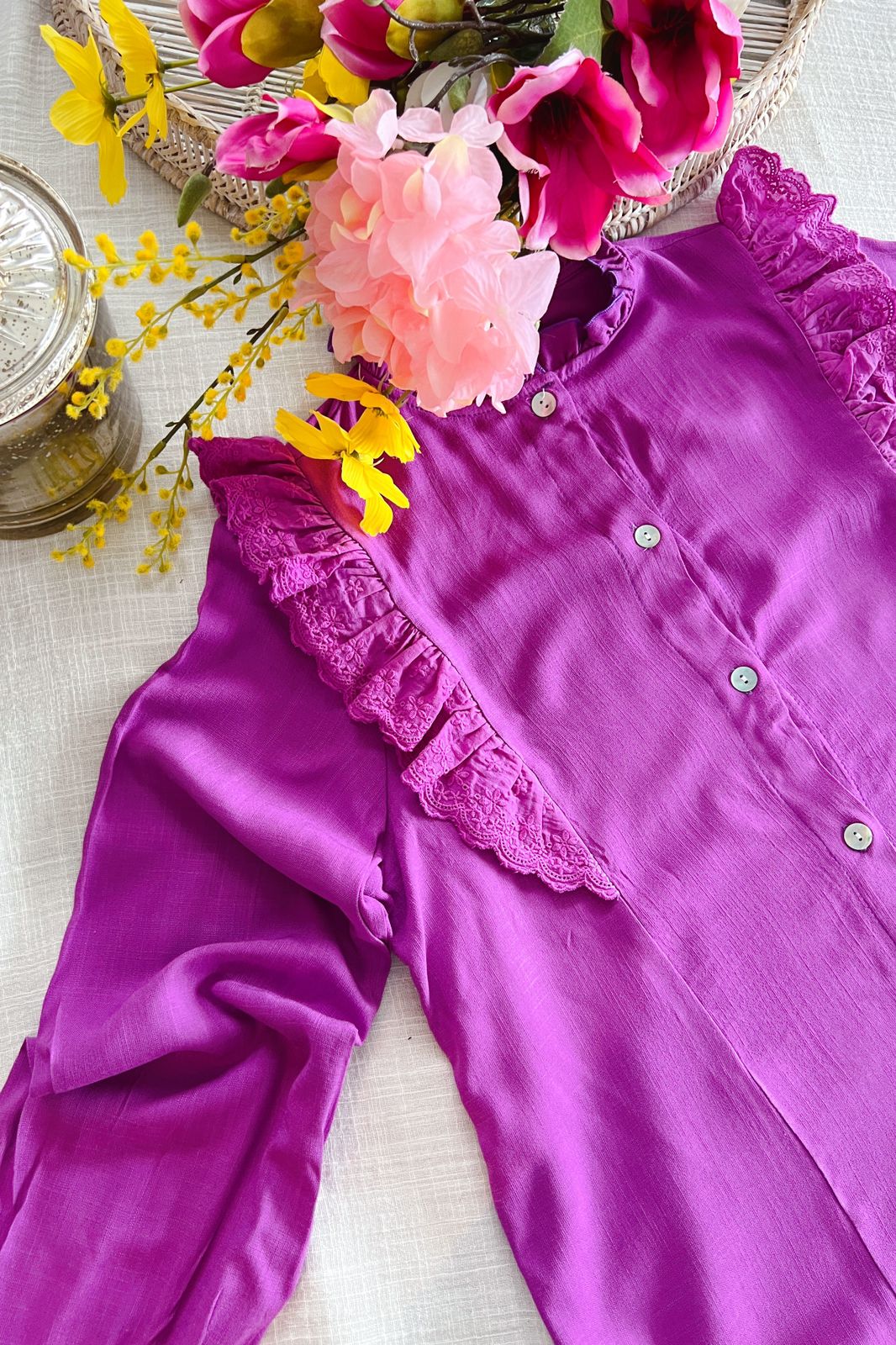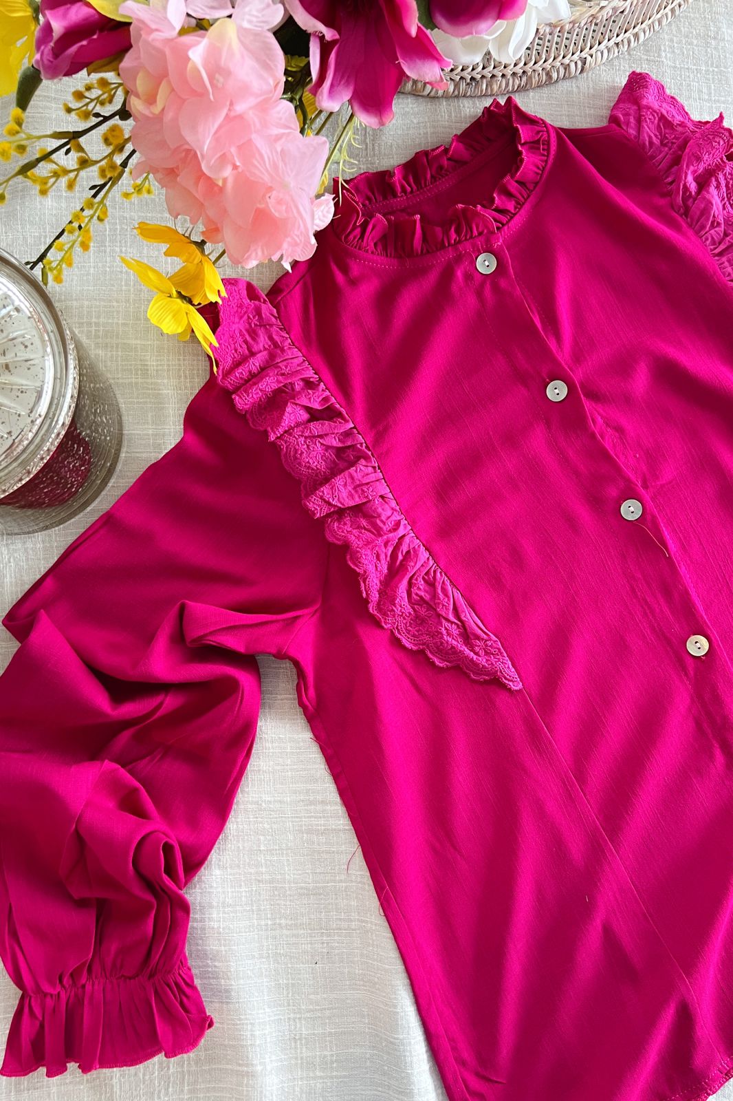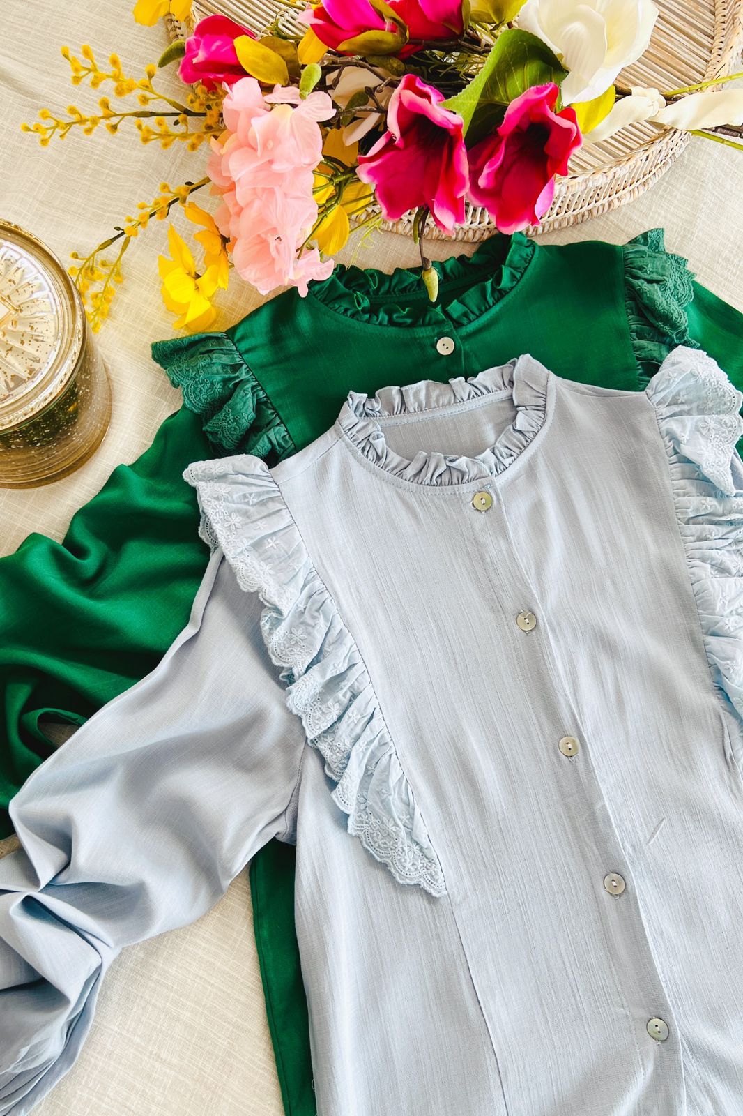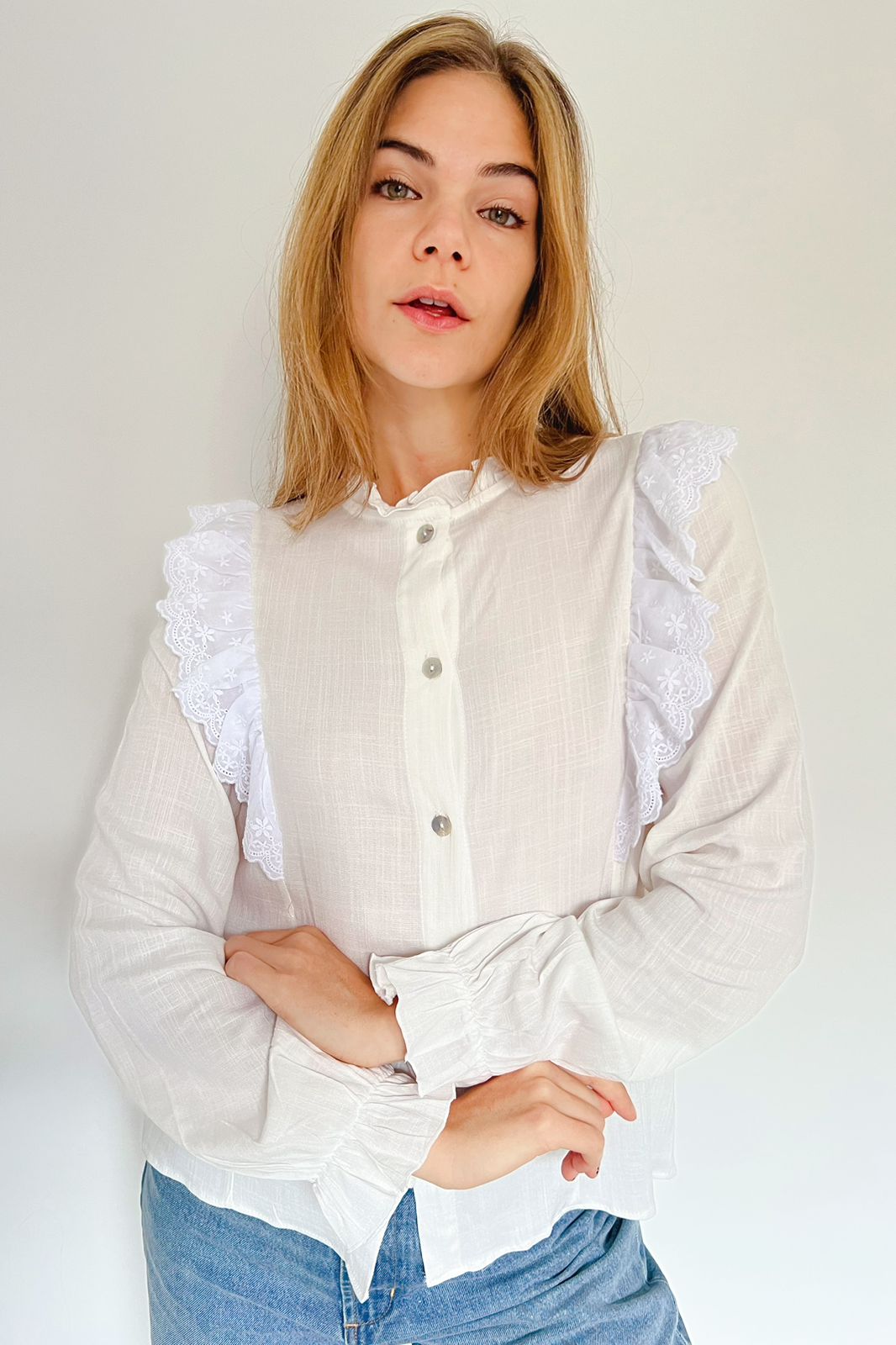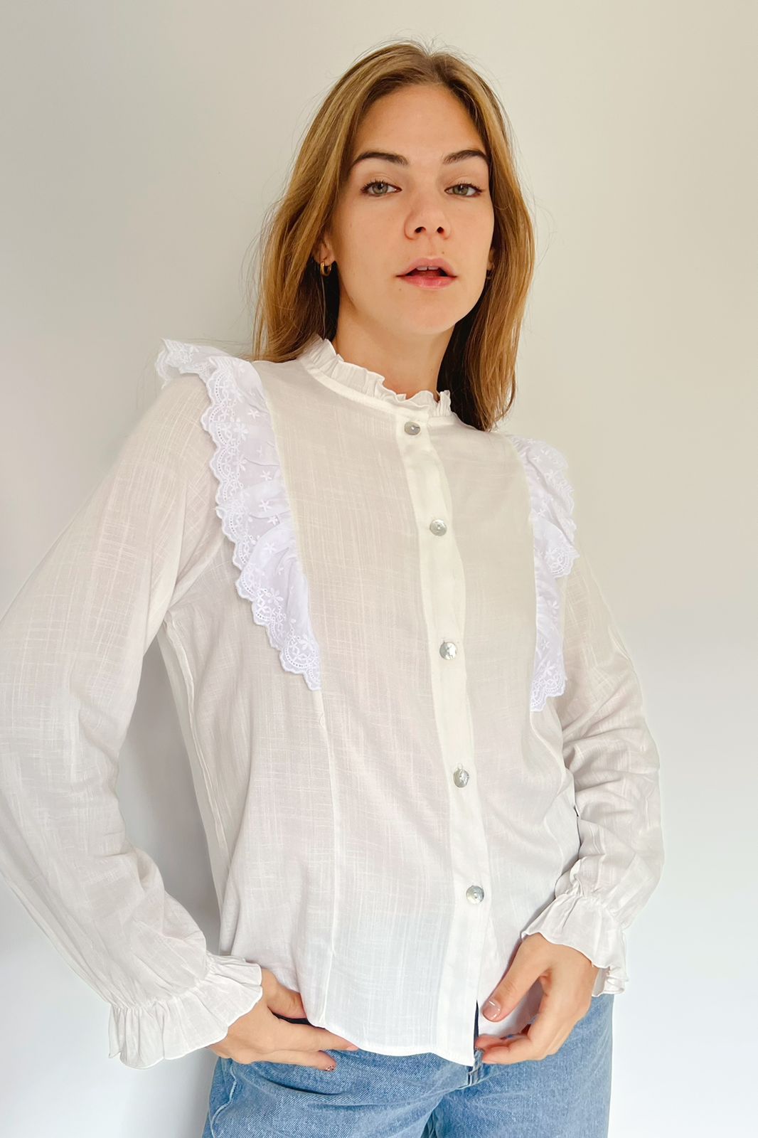 #Camisa #volados en broderie al tono #manga larga #simil lino # TALLE UNICO